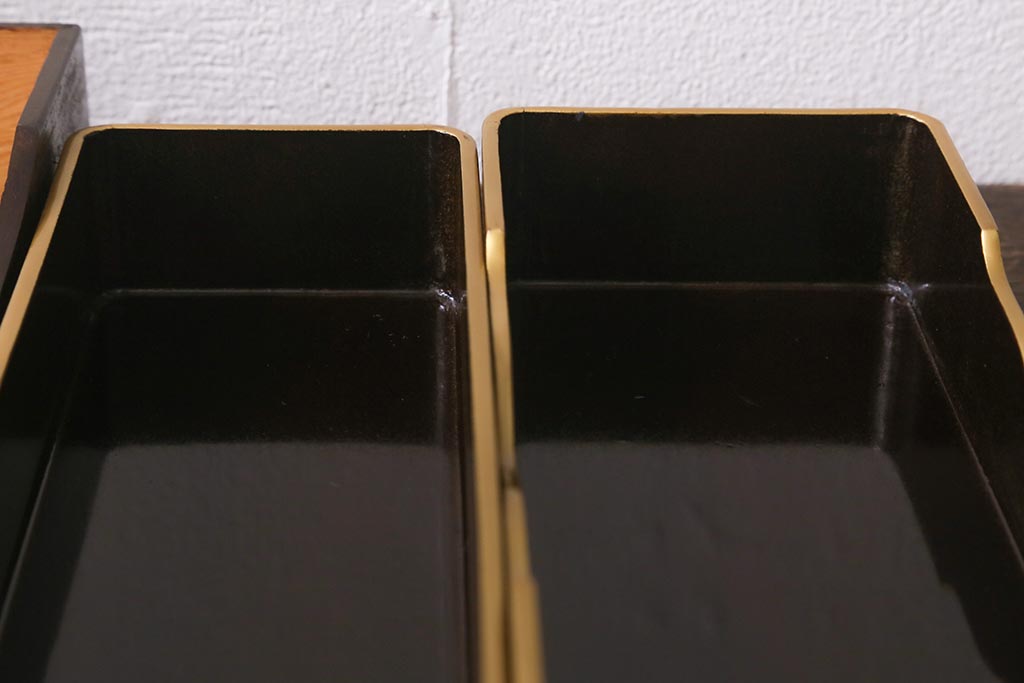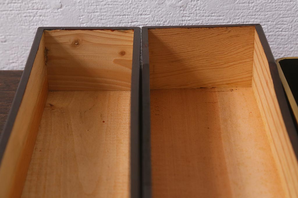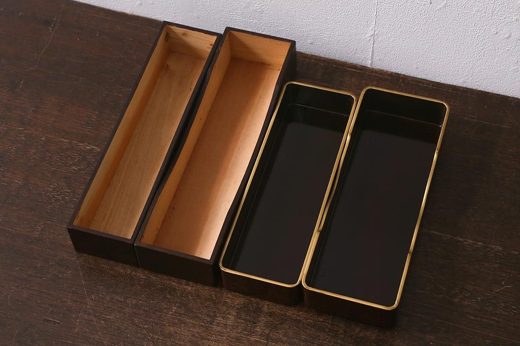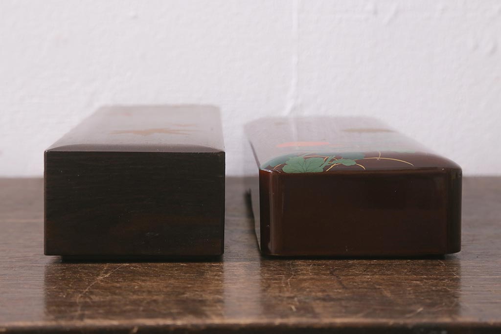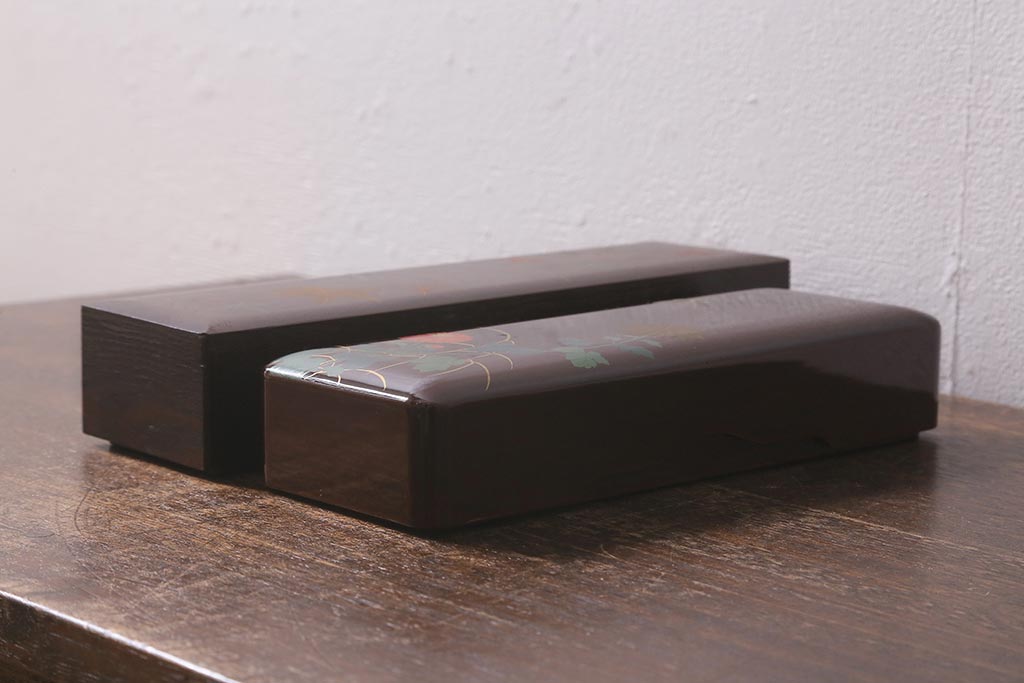 アンティーク雑貨 昭和初期 蒔絵 文箱2点セット(漆器、収納箱)(R-042868)