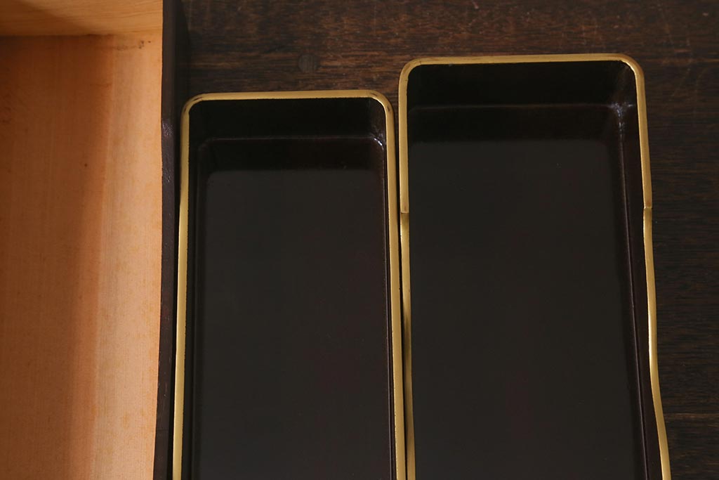 ラフジュ工房> 骨董・美術品> 骨董-漆器 > アンティーク雑貨 昭和初期 蒔絵 文箱2点セット(漆器、収納箱)(R-042868)
