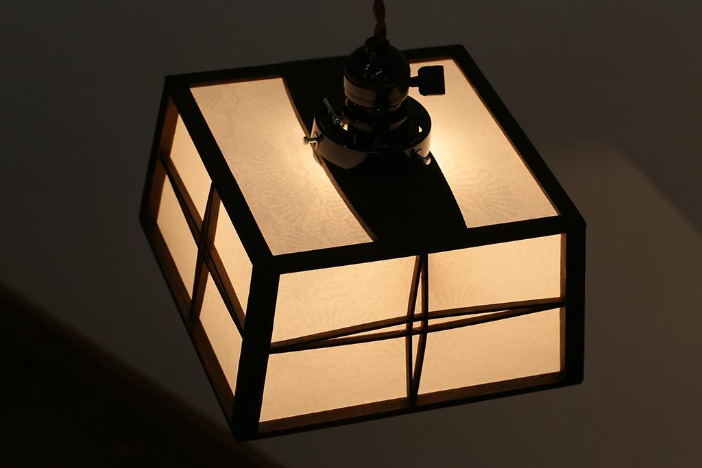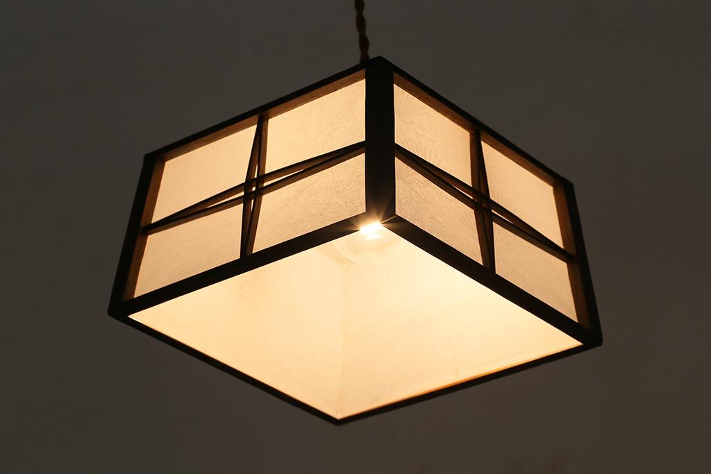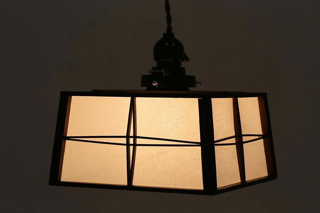 アンティーク照明 和製アンティーク 障子張り替え 和の風情漂う上品な天井照明(ペンダントライト、吊り下げ照明)(R-043001)です。