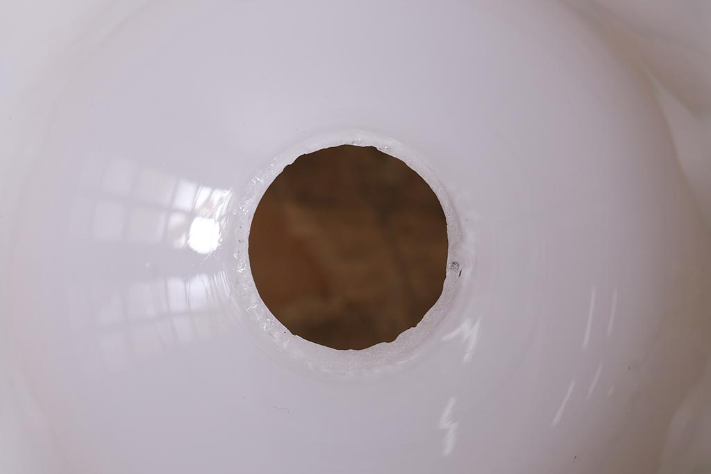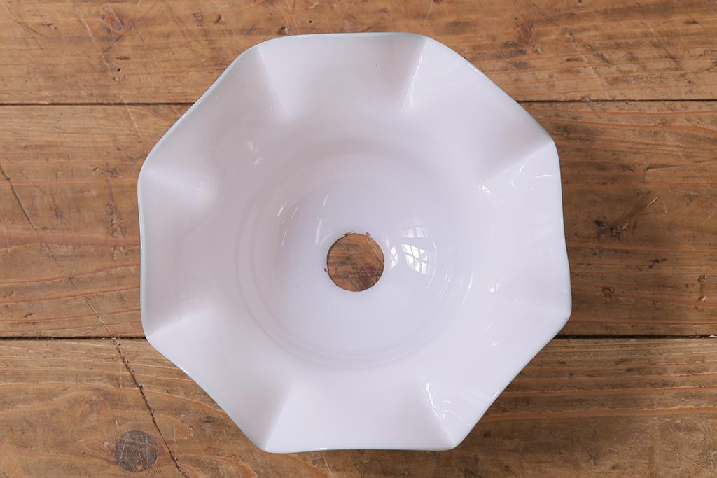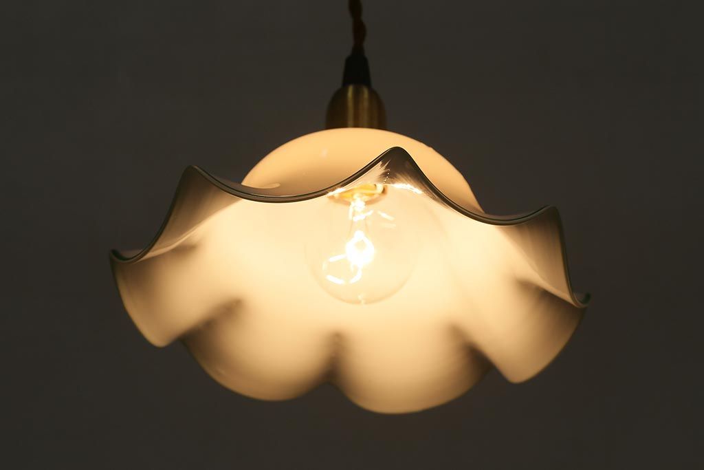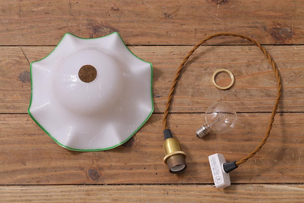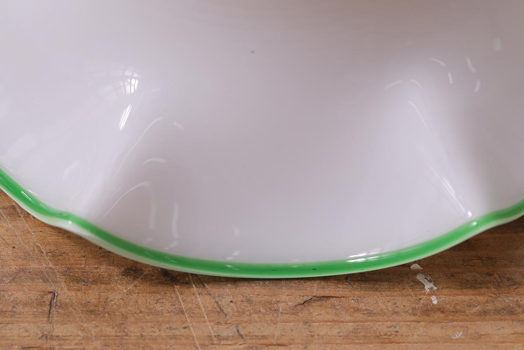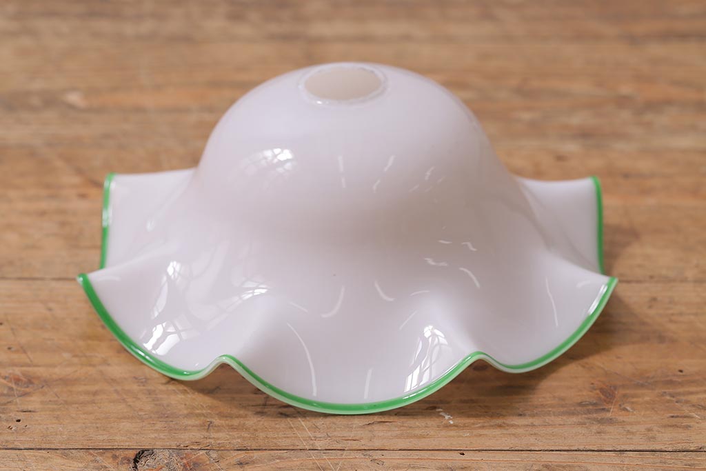 ヴィンテージ照明 イギリスビンテージ グリーン縁 ミルクガラス フリルシェードのペンダントライト(ランプシェード、天井照明)(R-042996)