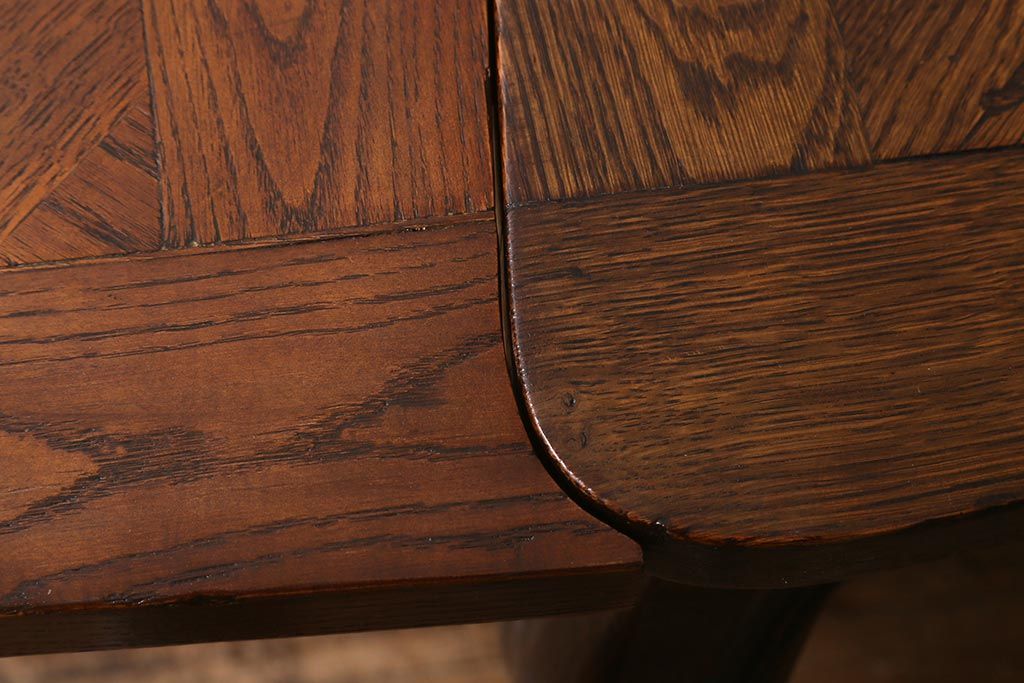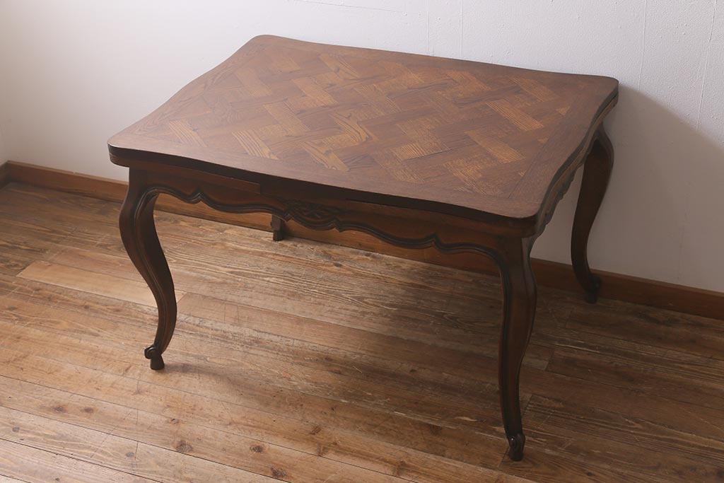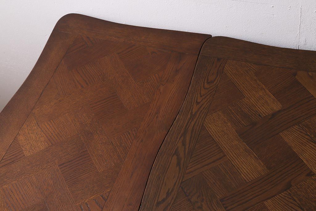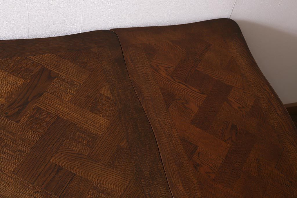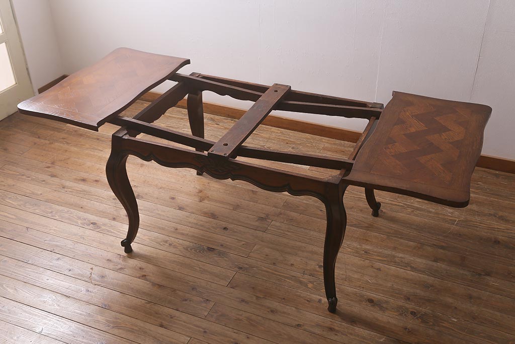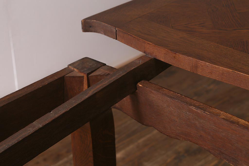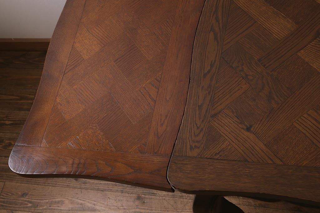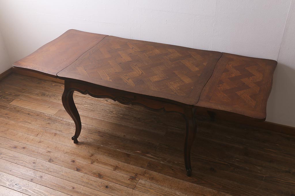 ラフジュ工房> テーブル> エクステンションテーブル > アンティーク家具 フランスアンティーク オーク材 パーケット天板のドローリーフテーブル(エクステンションテーブル、ダイニングテーブル)(R-042889)