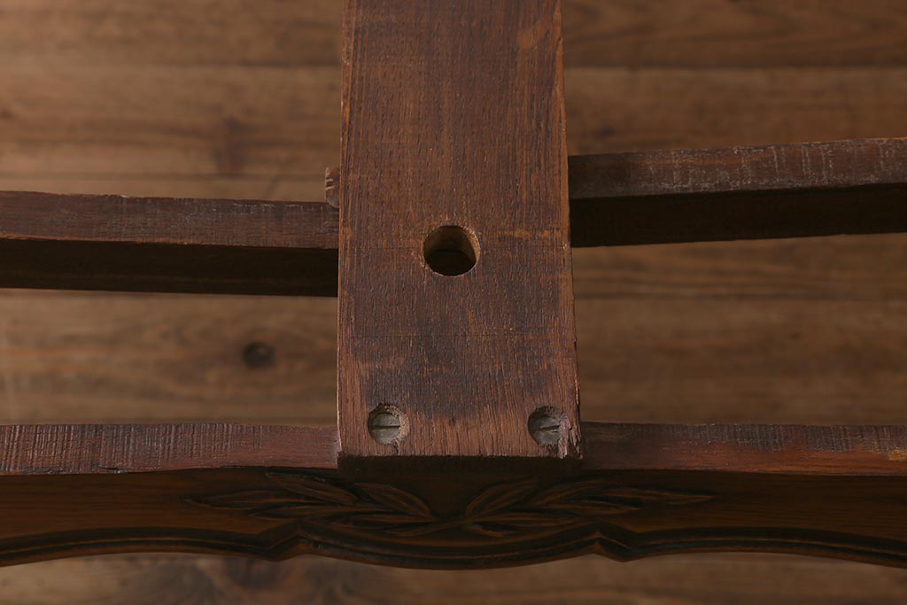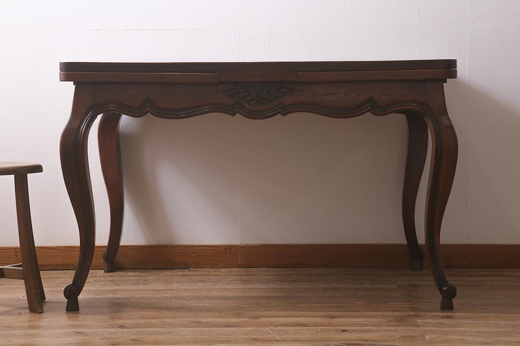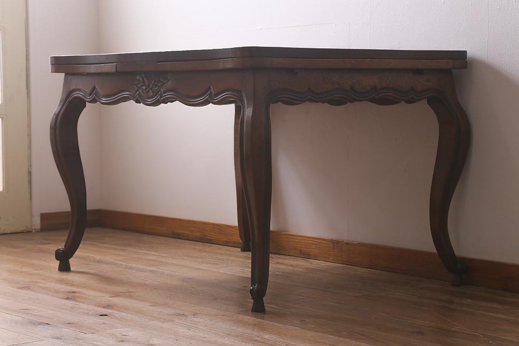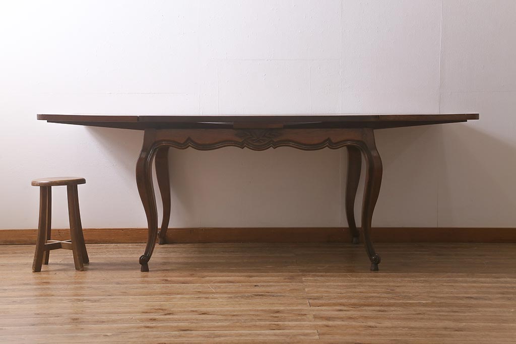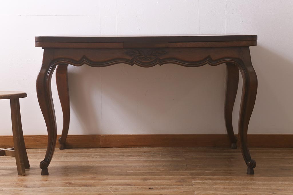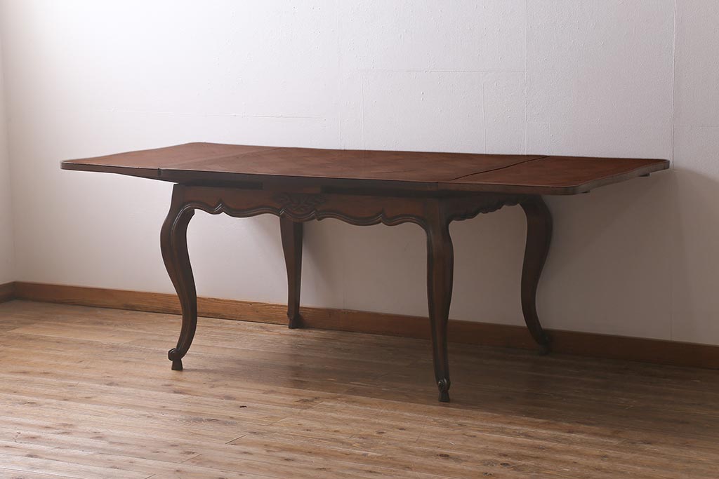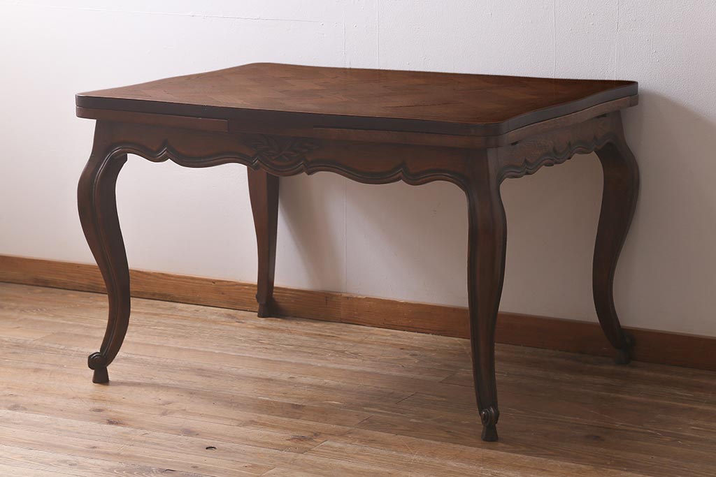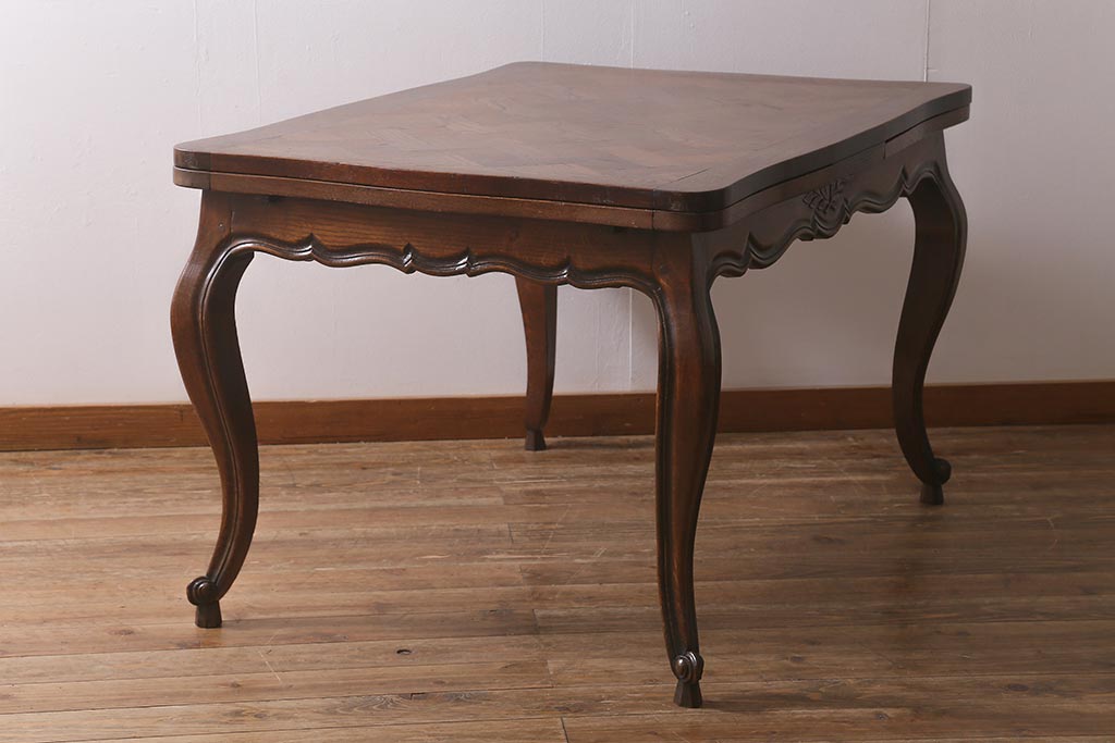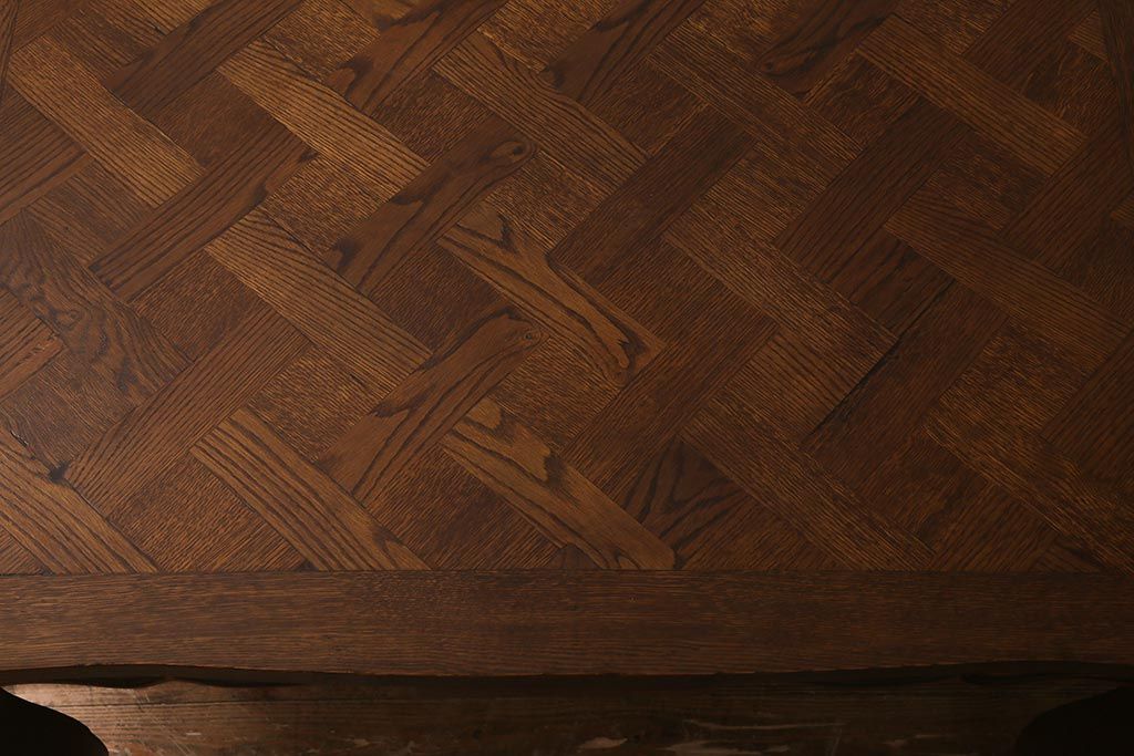 ラフジュ工房> テーブル> エクステンションテーブル > アンティーク家具 フランスアンティーク オーク材 パーケット天板のドローリーフテーブル(エクステンションテーブル、ダイニングテーブル)(R-042889)