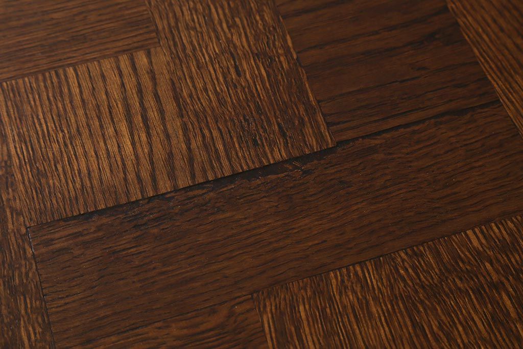 ラフジュ工房> テーブル> 4人用ダイニングテーブル > アンティーク家具 フランスアンティーク オーク材 パーケット天板のドローリーフテーブル(エクステンションテーブル、ダイニングテーブル)(R-042889)