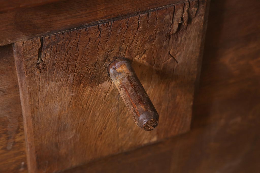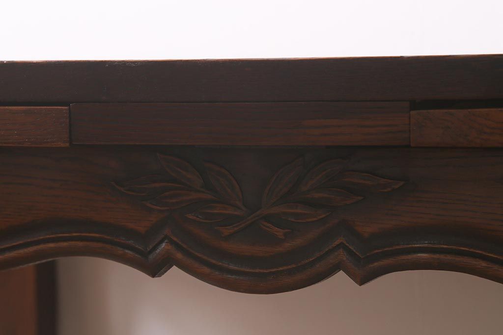 アンティーク家具 フランスアンティーク オーク材 パーケット天板のドローリーフテーブル(エクステンションテーブル、ダイニングテーブル)(R-042889)