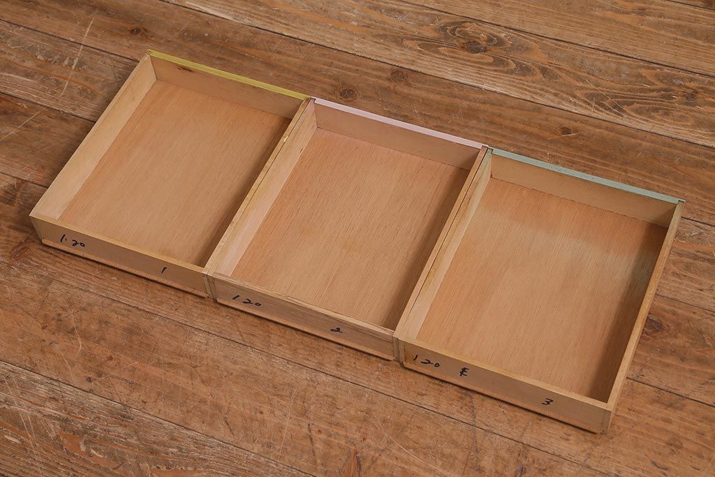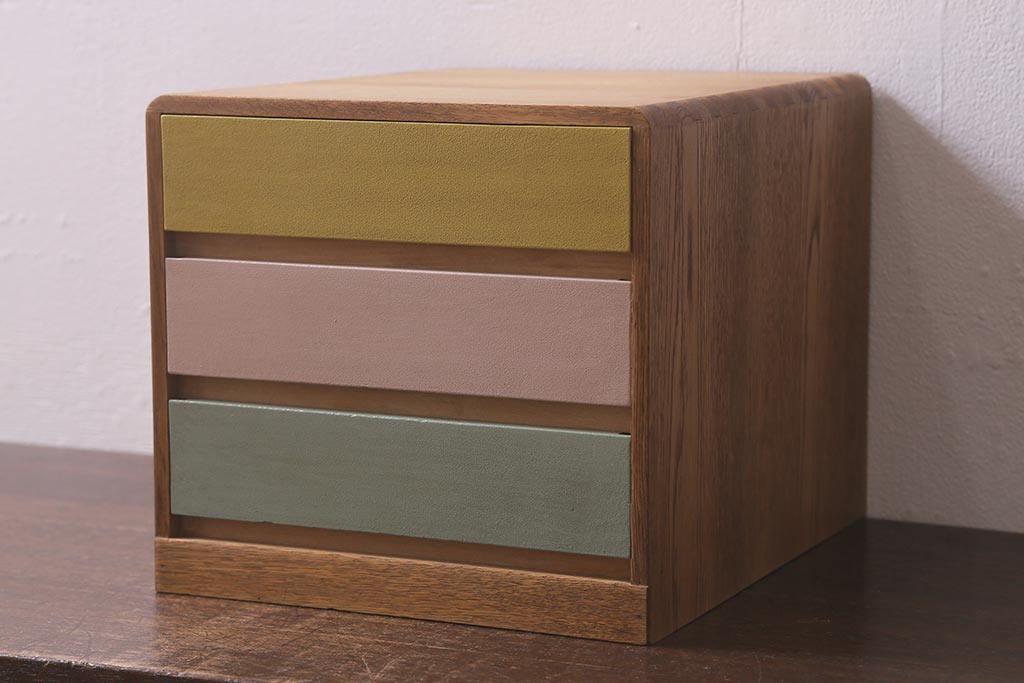 レトロ家具 ペイント ナラ材 3色のカラーがかわいい小引き出し(卓上収納、小物収納)(R-042937)です。