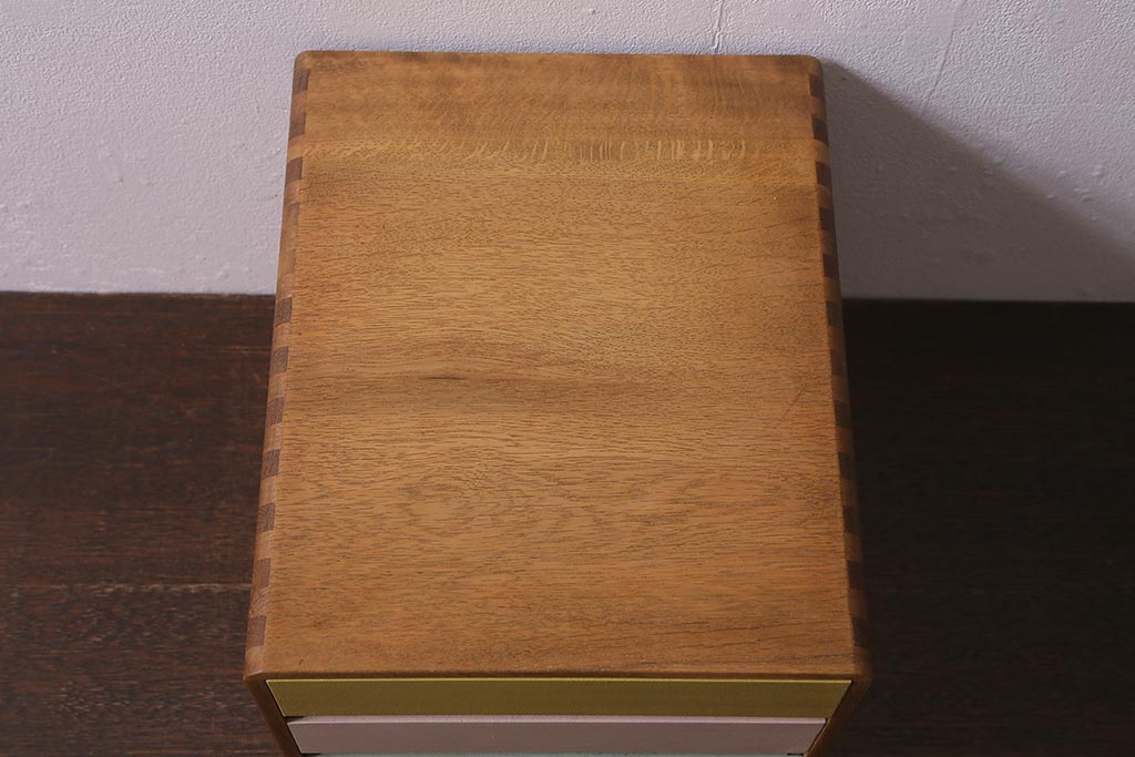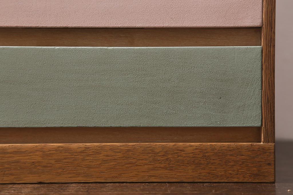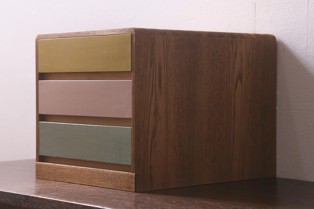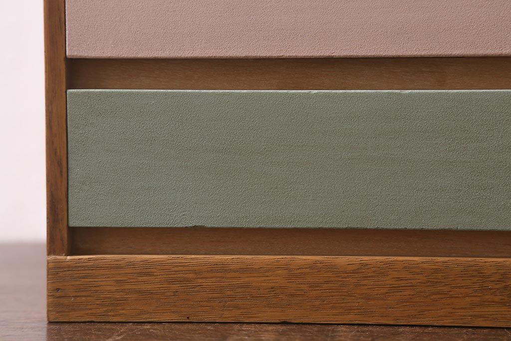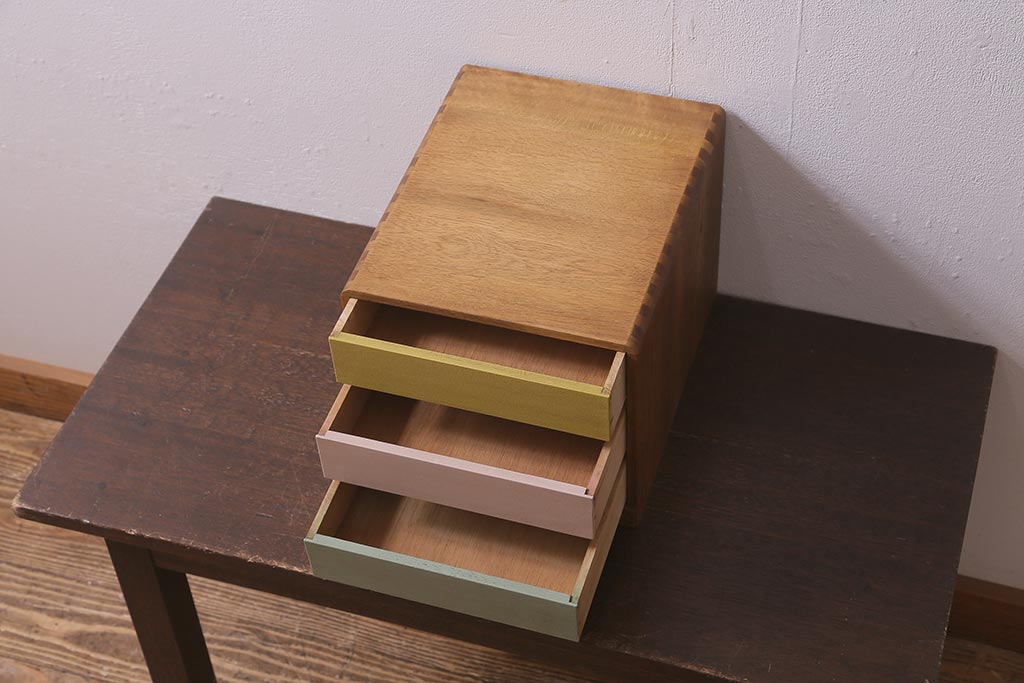 レトロ家具 ペイント ナラ材 3色のカラーがかわいい小引き出し(卓上収納、小物収納)(R-042937)