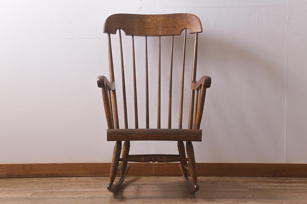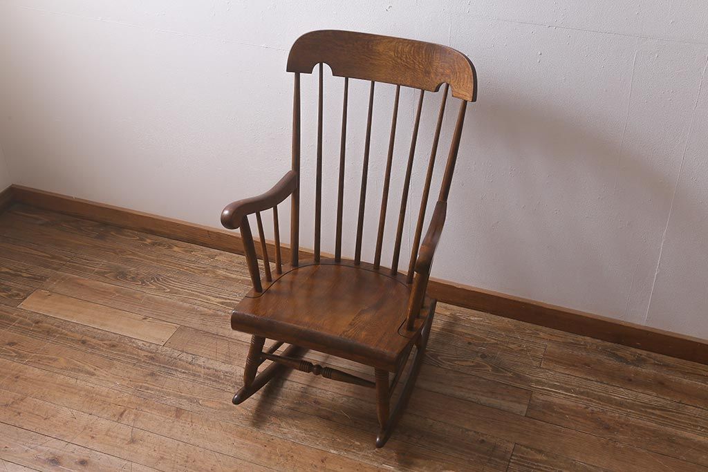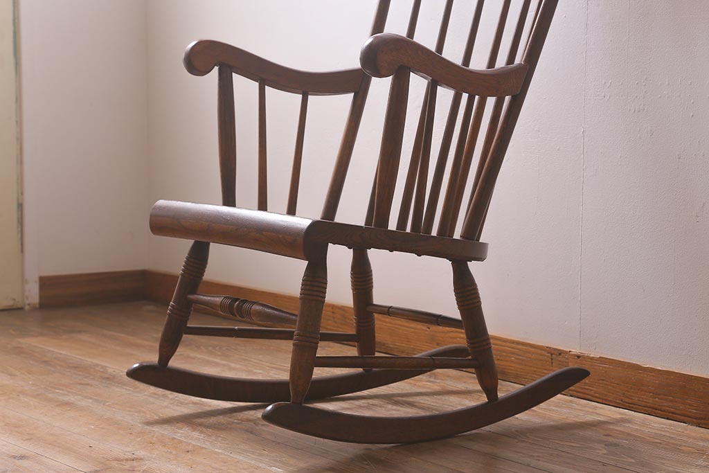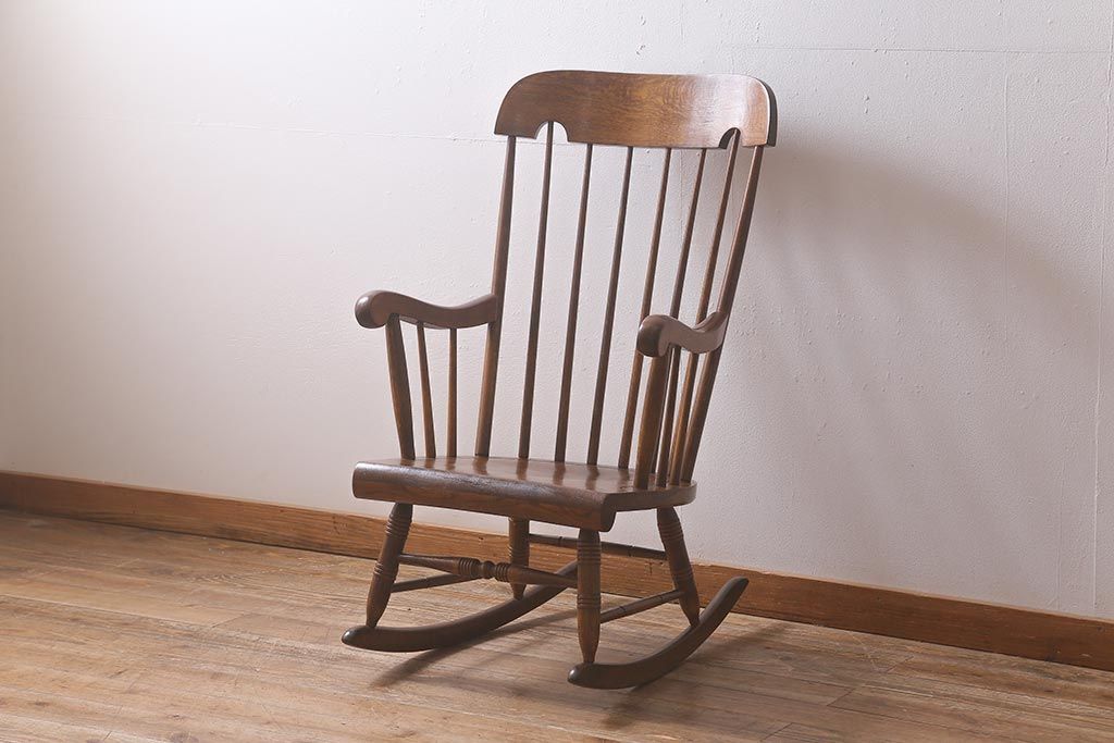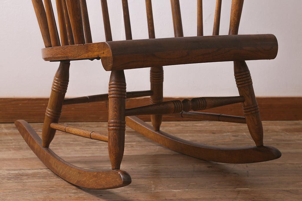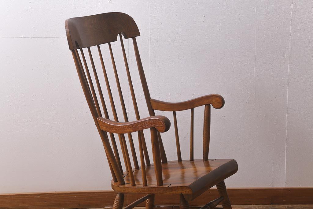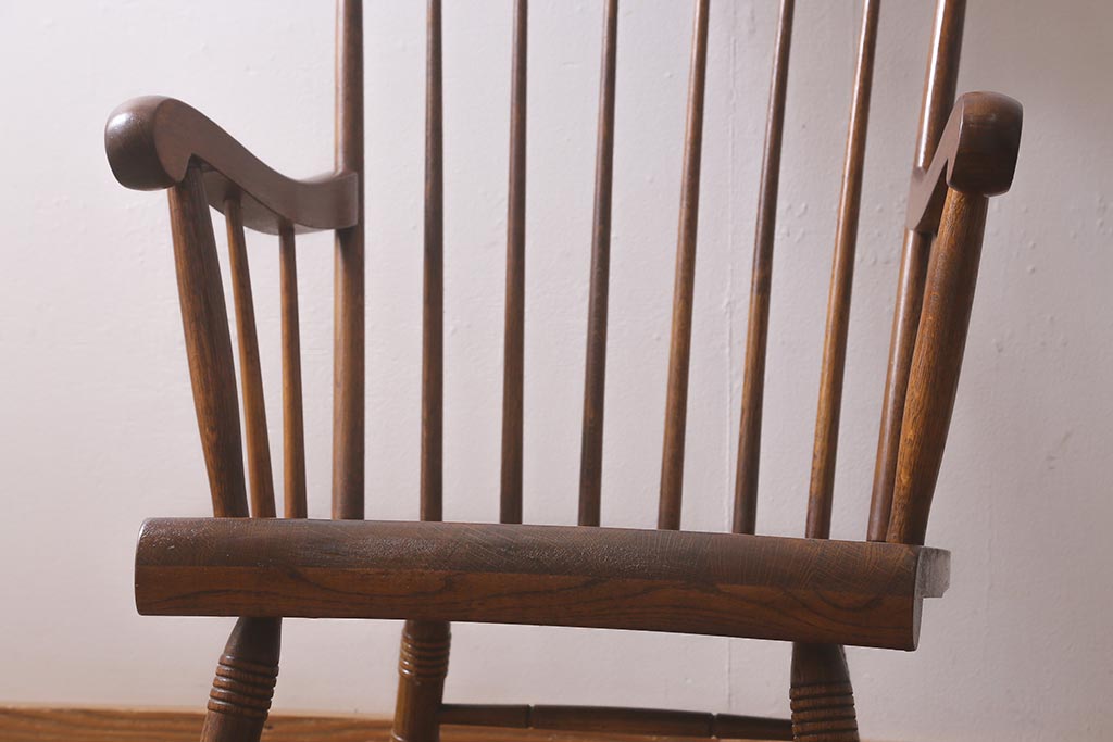 ビンテージ家具 飛騨産業 WINDSOR ビンテージキツツキ シンプルなホワイトオーク材製のロッキングチェア(アームチェア)(R-042988)