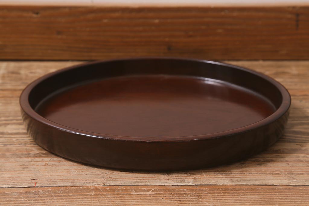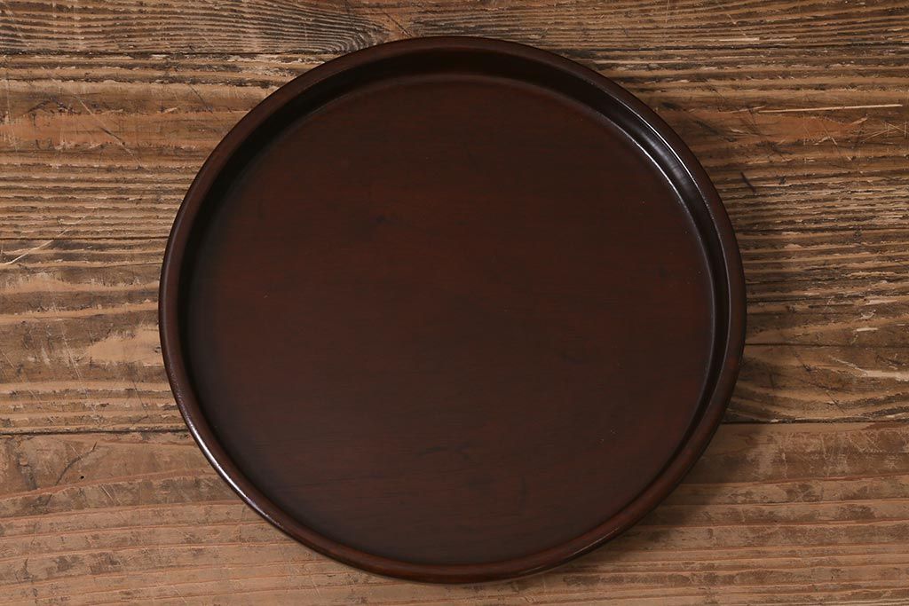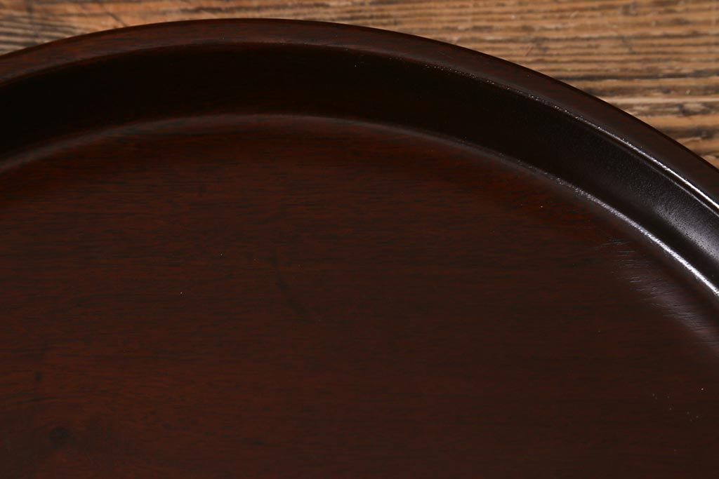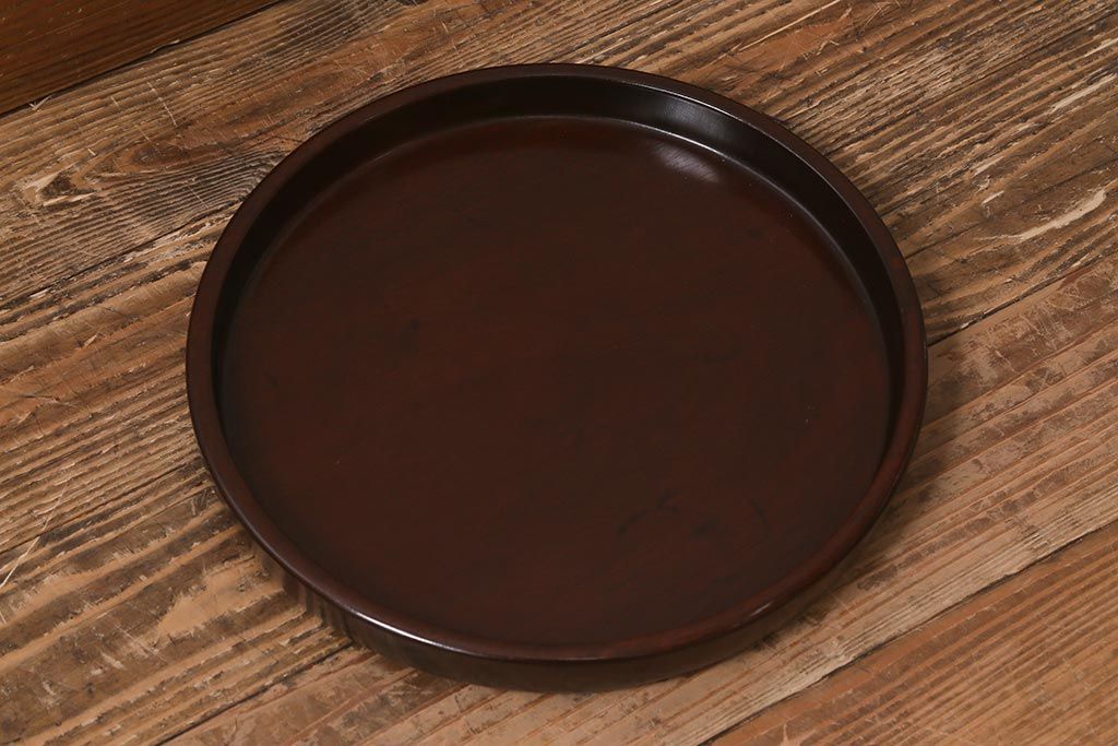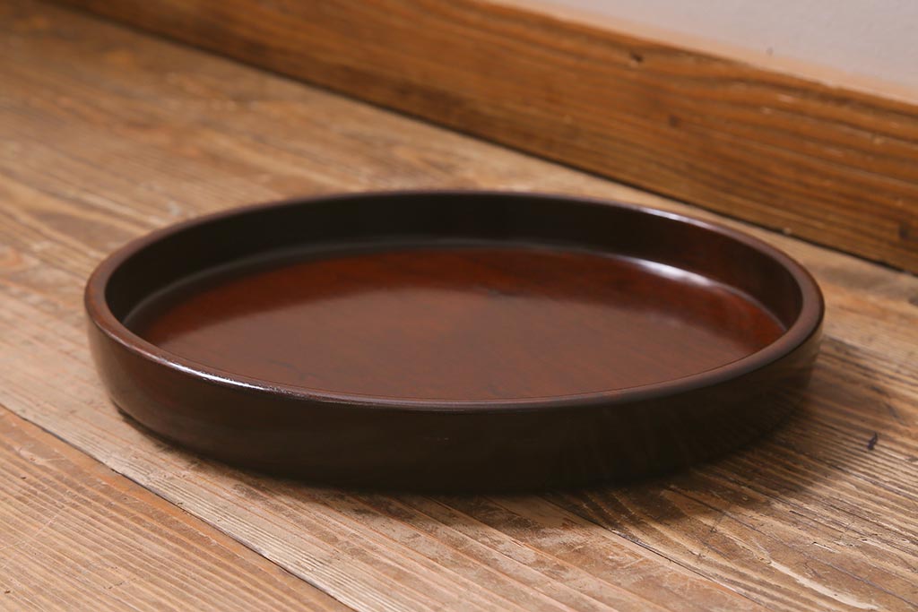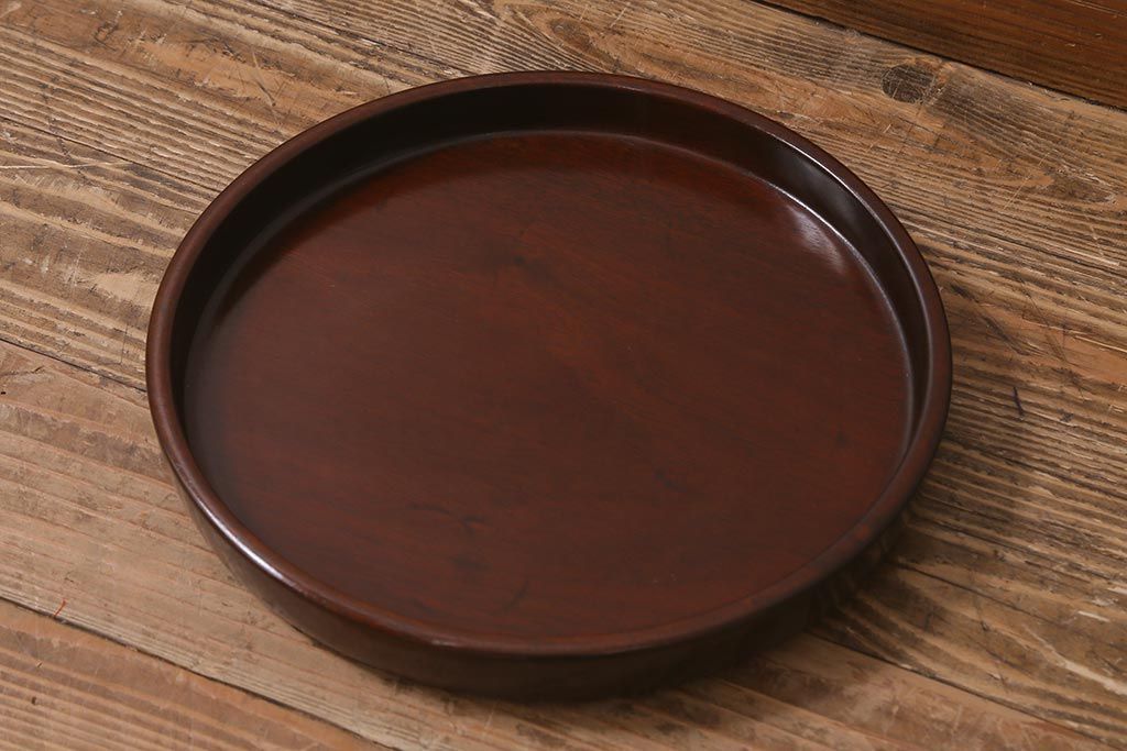 アンティーク雑貨 昭和レトロ 紫檀(シタン)材 深みのある漆塗りが美しい刳り貫き盆(丸盆、お盆)(R-043043)