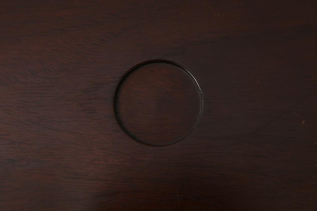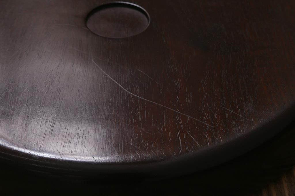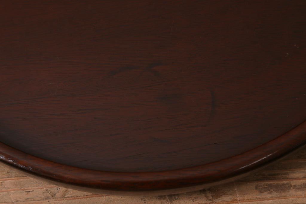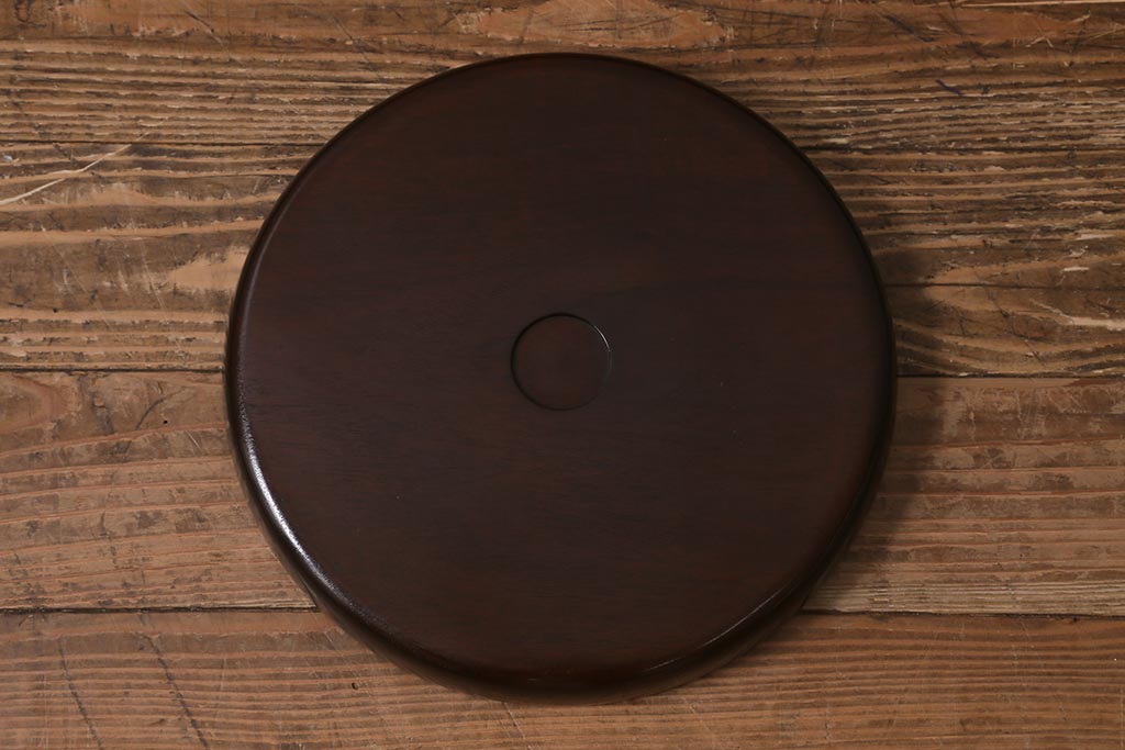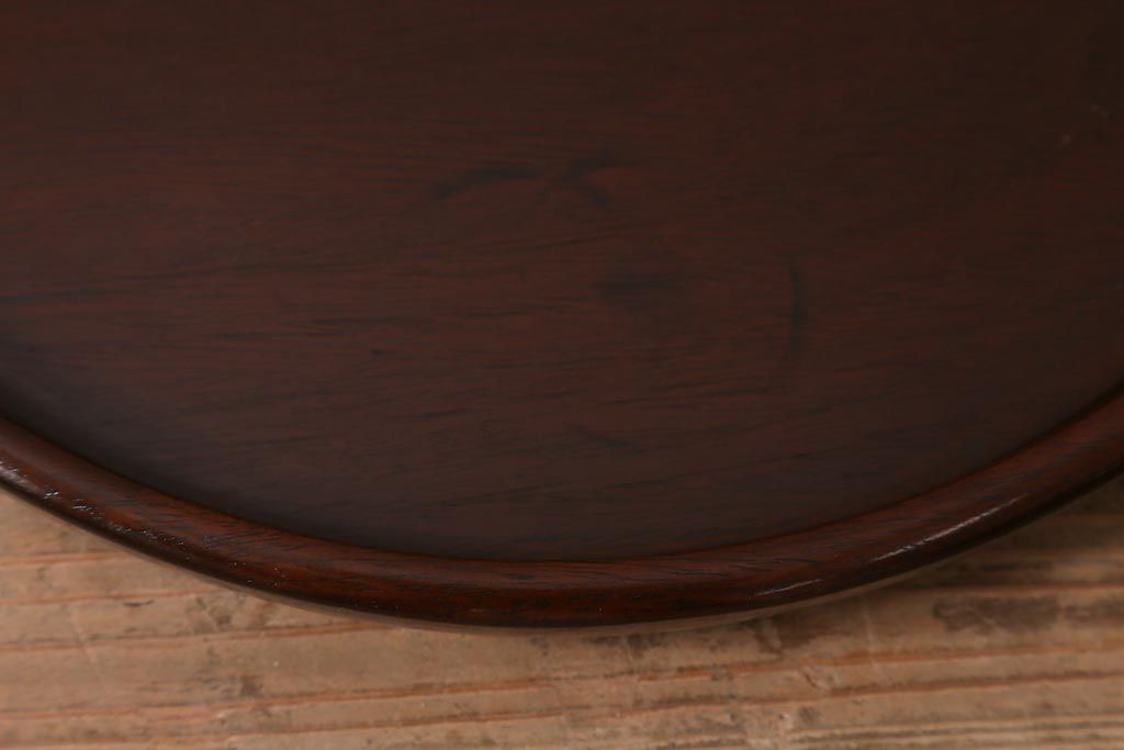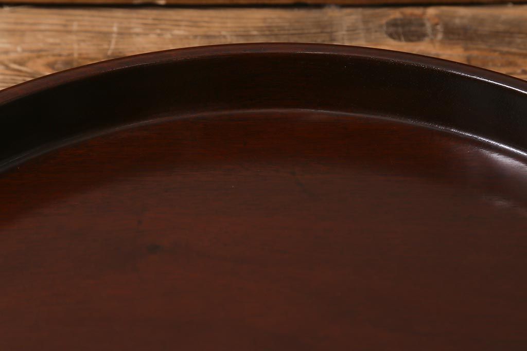 アンティーク雑貨 昭和レトロ 紫檀(シタン)材 深みのある漆塗りが美しい刳り貫き盆(丸盆、お盆)(R-043043)