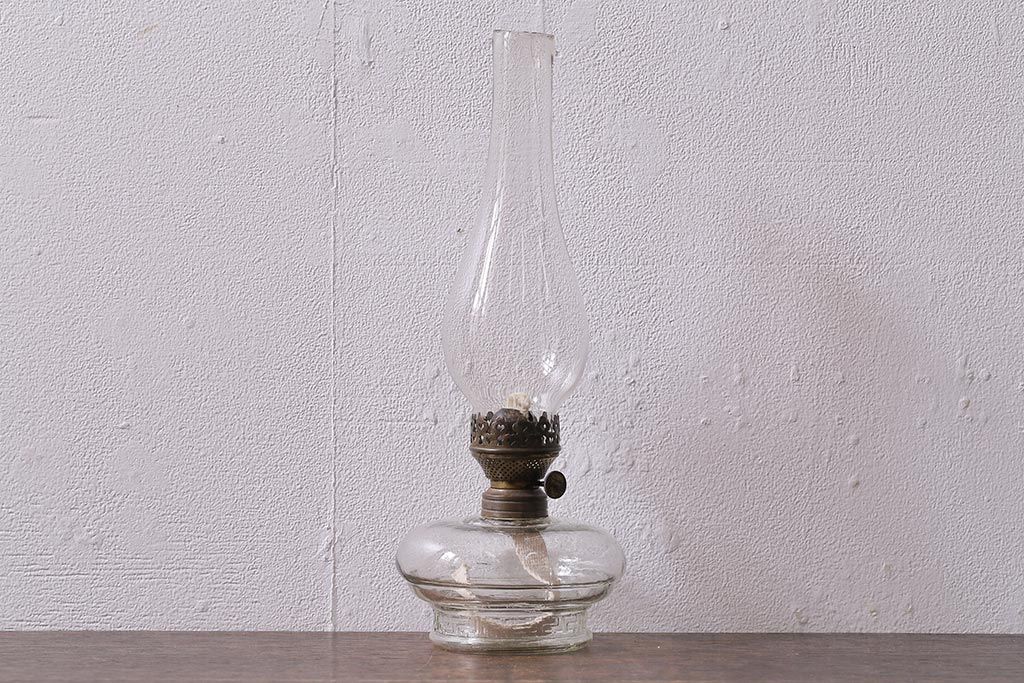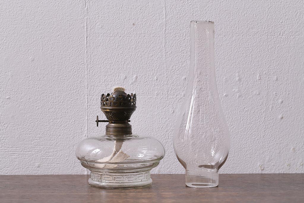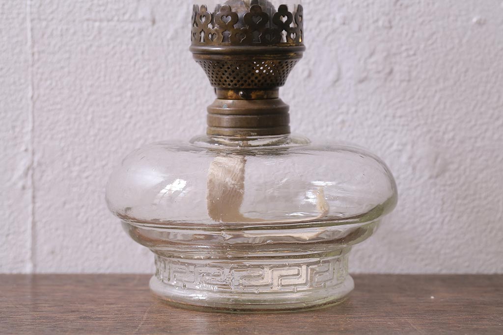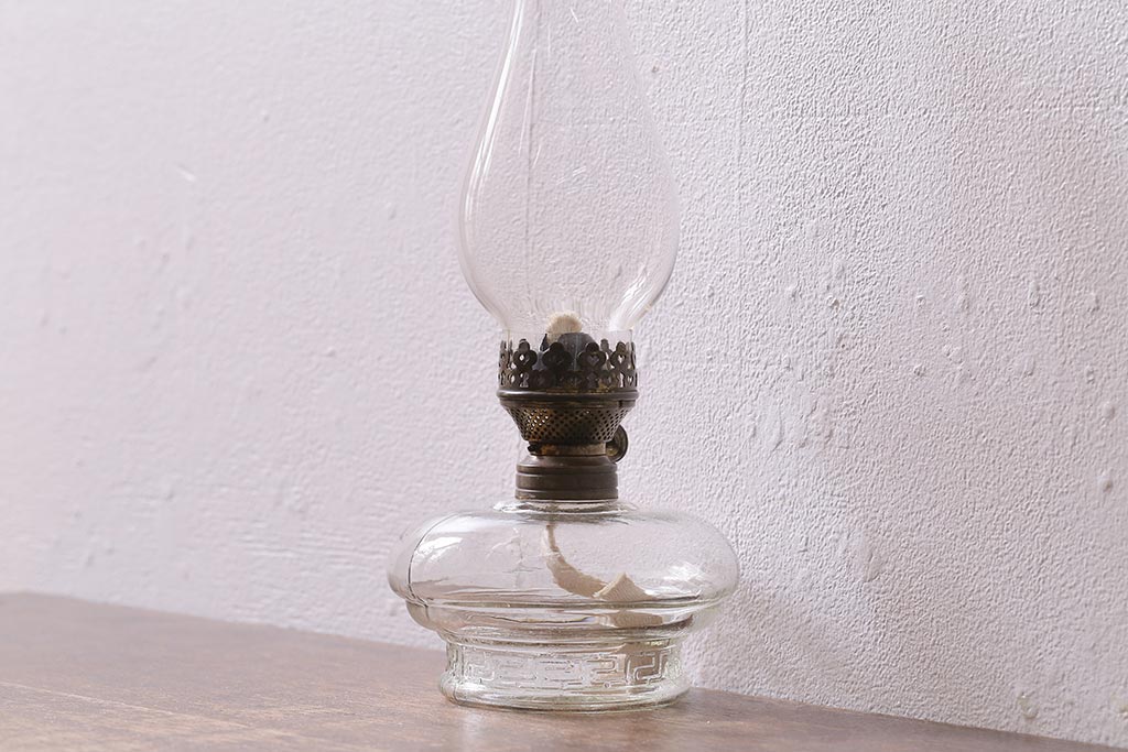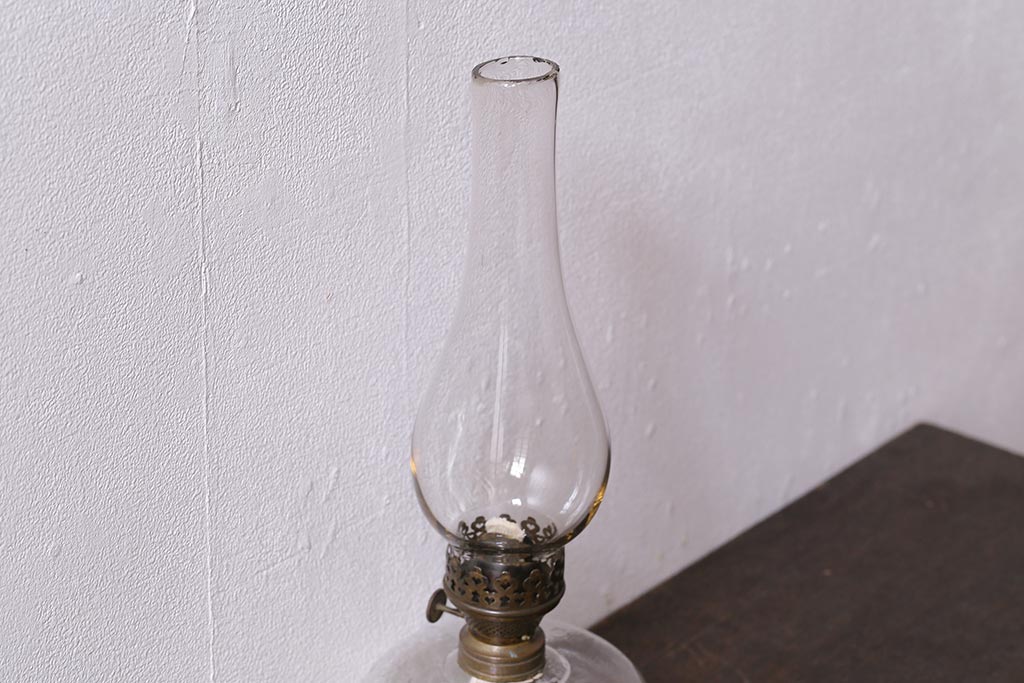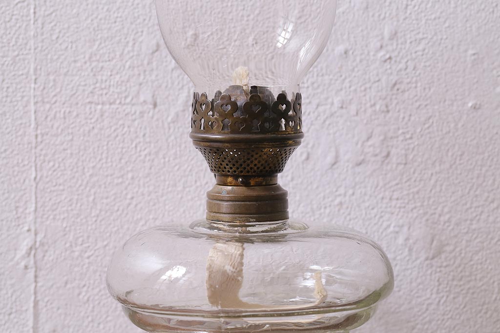 アンティーク雑貨 昭和初期 平芯・5分芯 クリアガラス レトロなオイルランプ(テーブルランプ、和ガラス)(R-042862)