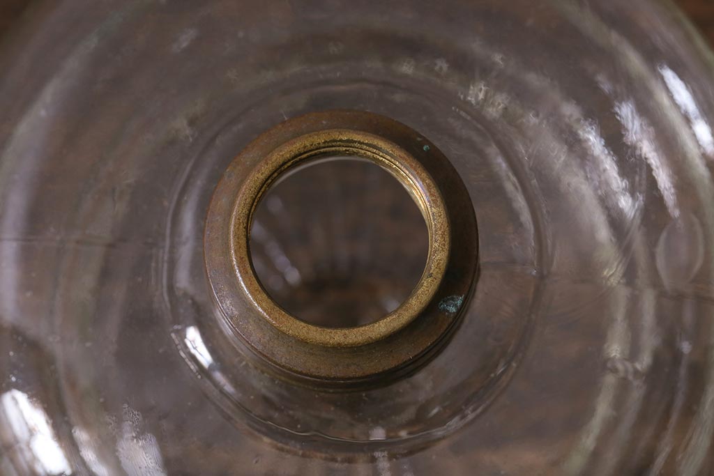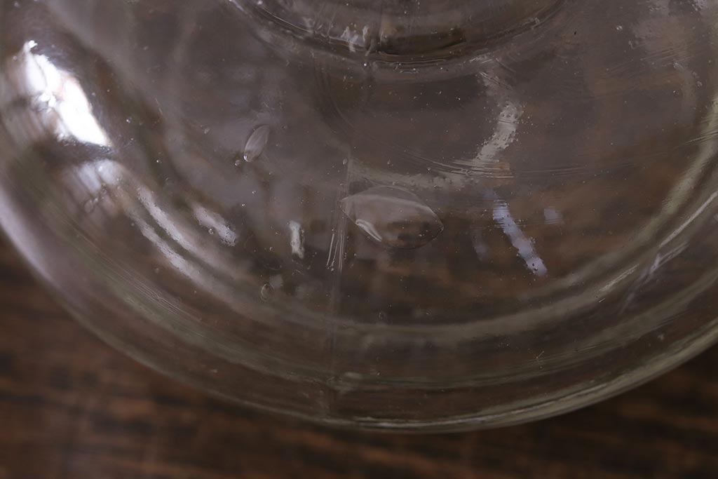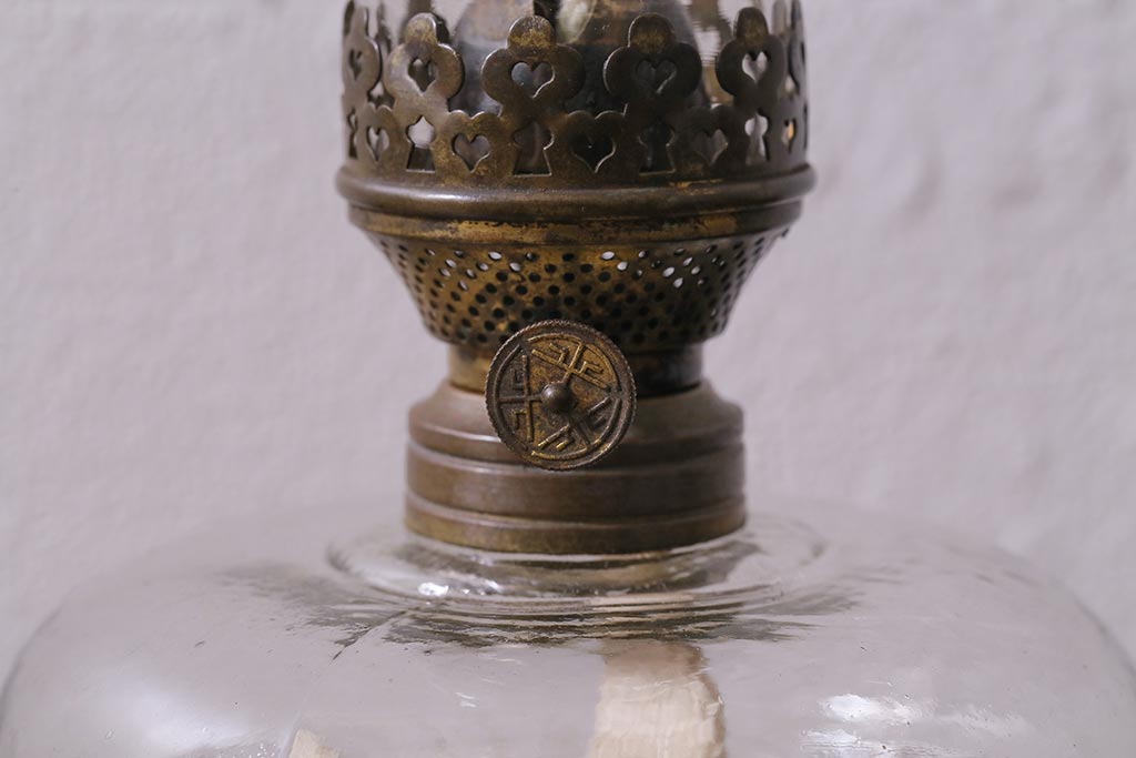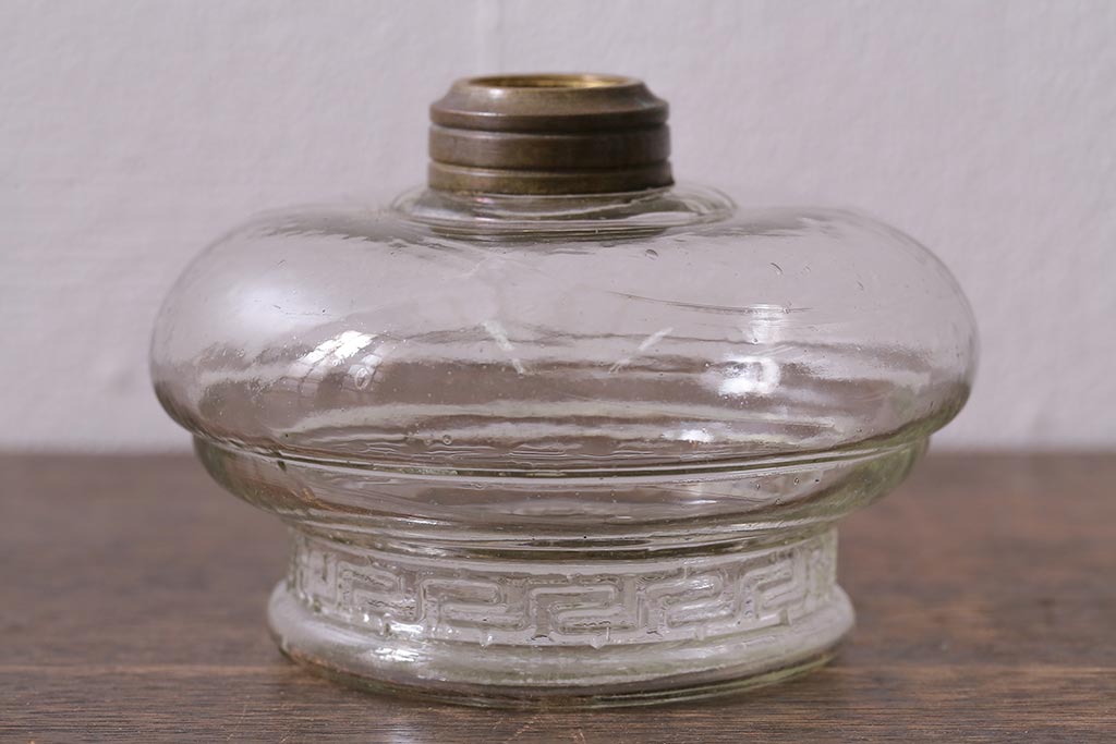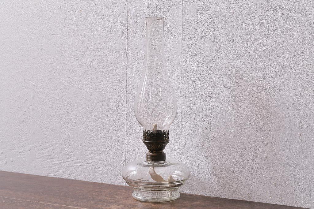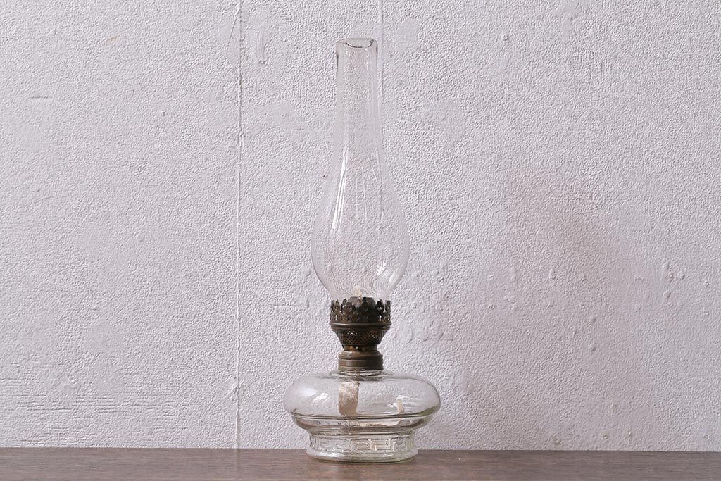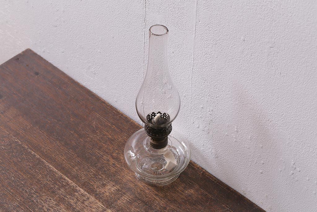 アンティーク雑貨 昭和初期 平芯・5分芯 クリアガラス レトロなオイルランプ(テーブルランプ、和ガラス)(R-042862)