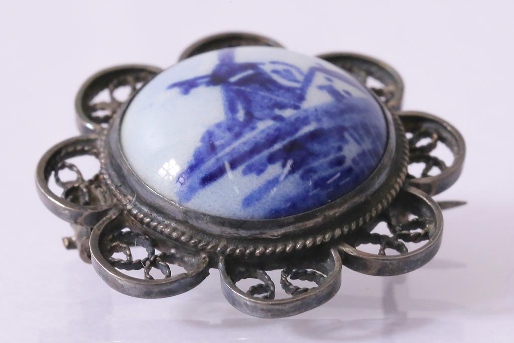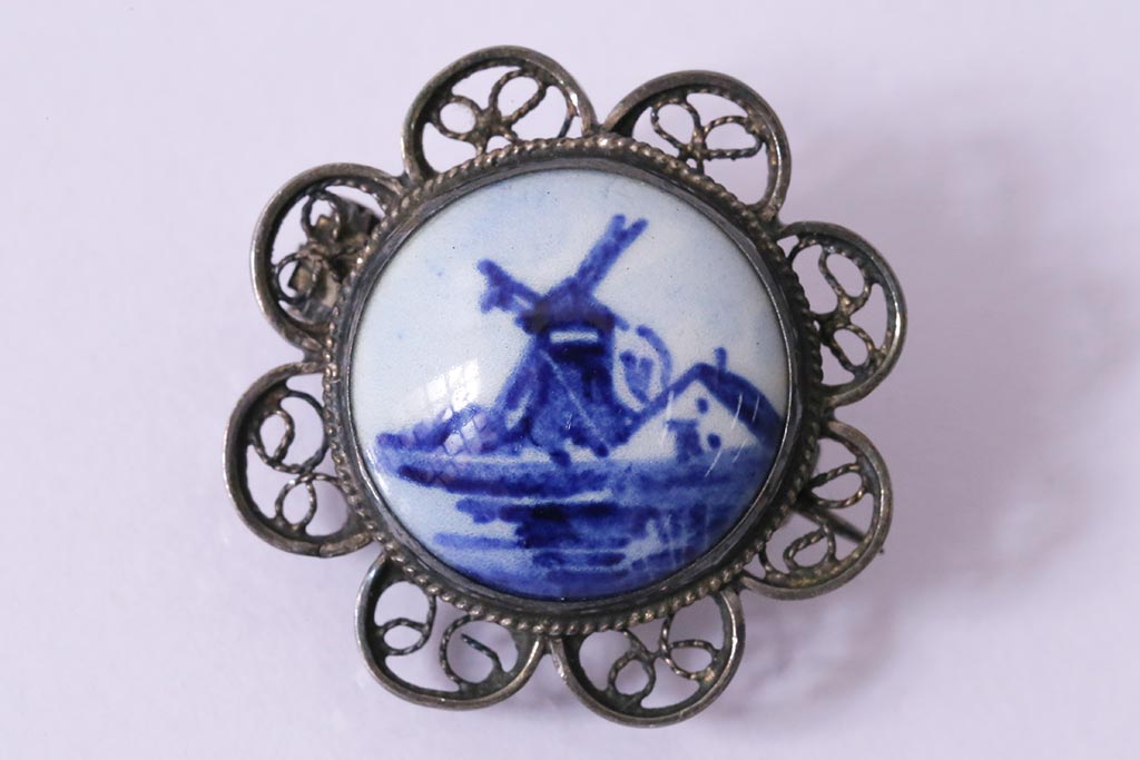 ラフジュ工房> 雑貨 > ヴィンテージアクセサリー デルフト焼き オランダの風車が描かれたビンテージブローチ(R-042916)