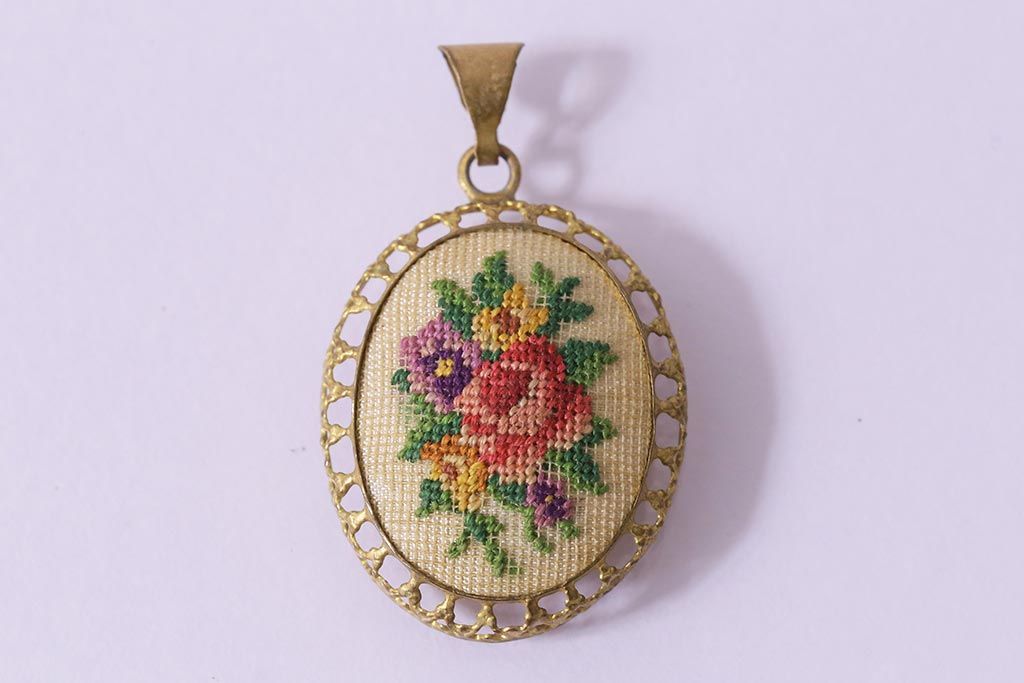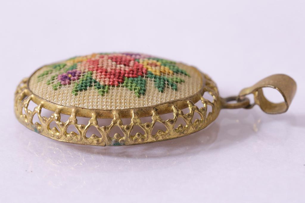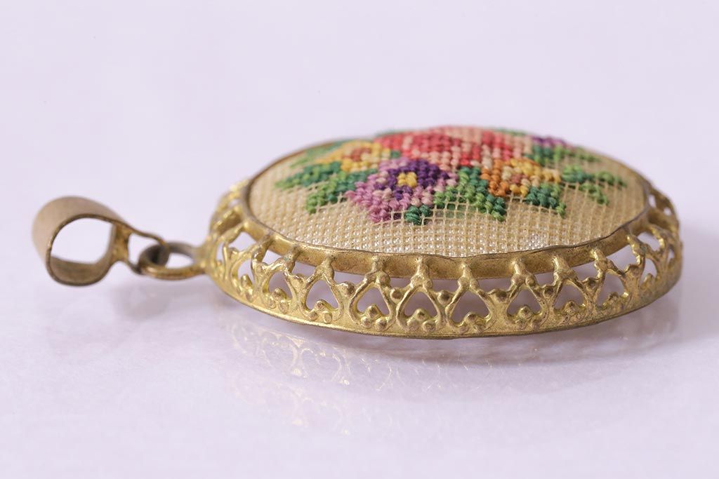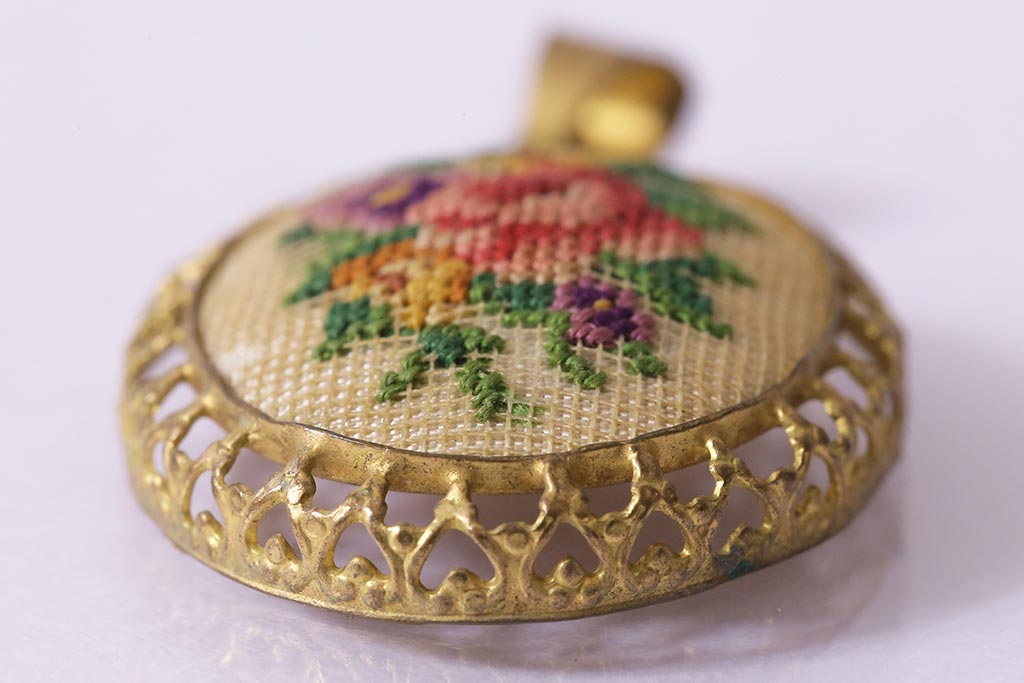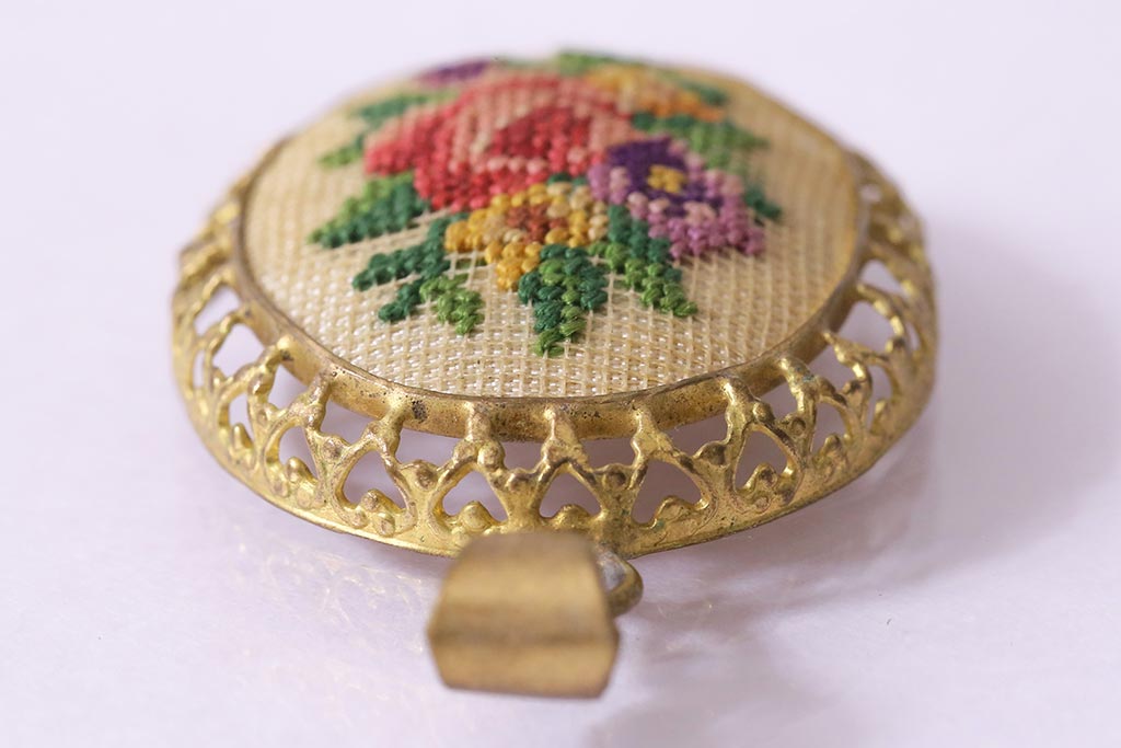 ラフジュ工房> アクセサリー> ペンダント・ネックレス > ヴィンテージアクセサリー オーストリア プチポワン(ニードルポイント、ビンテージ) 花柄のチャーム(ペンダントトップ)(R-042919)