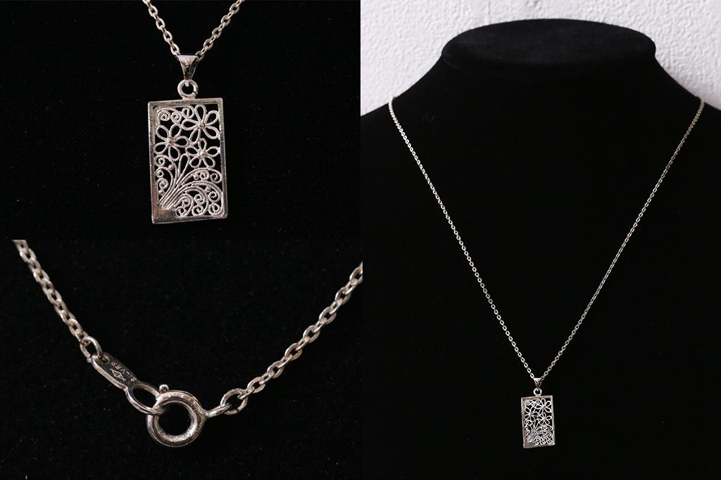 ヴィンテージアクセサリー シルバー925 透かし模様のビンテージネックレス(ペンダント)(R-042922)
