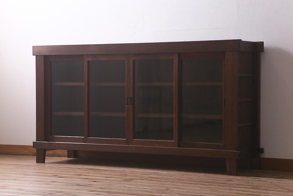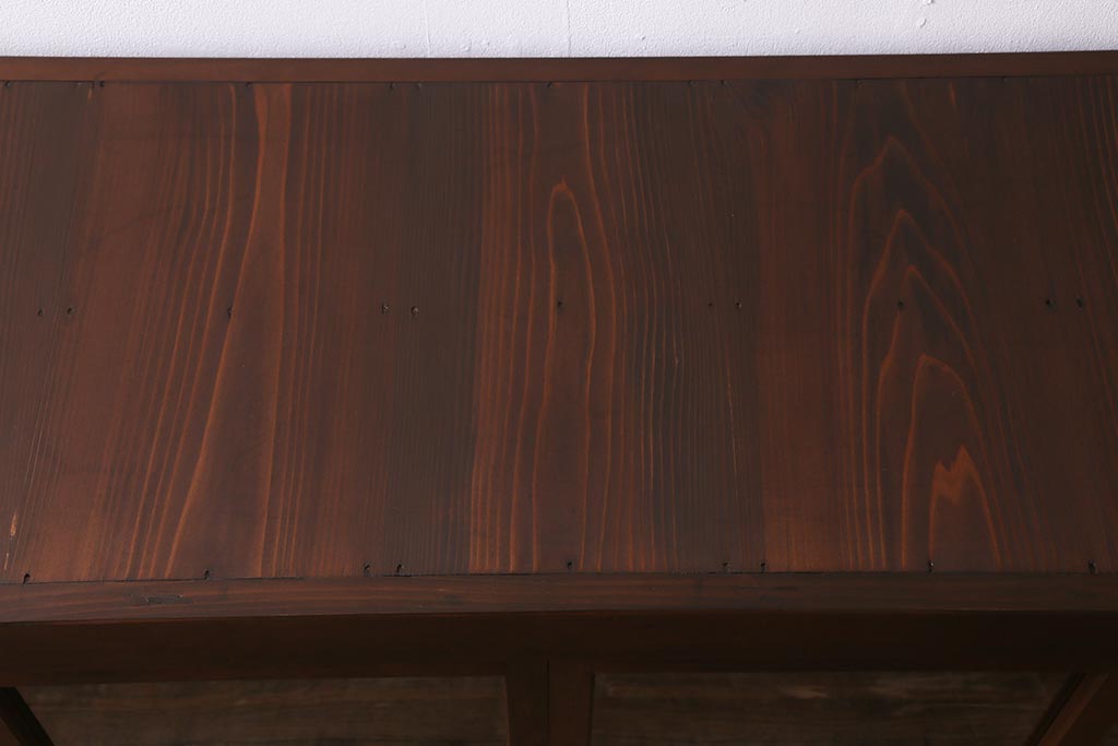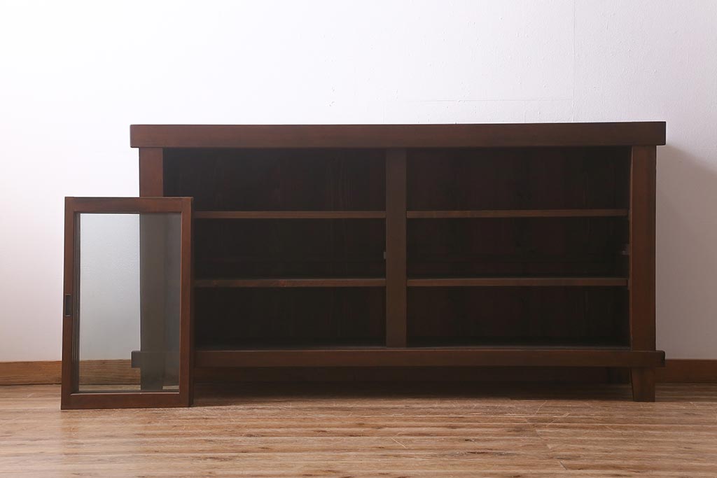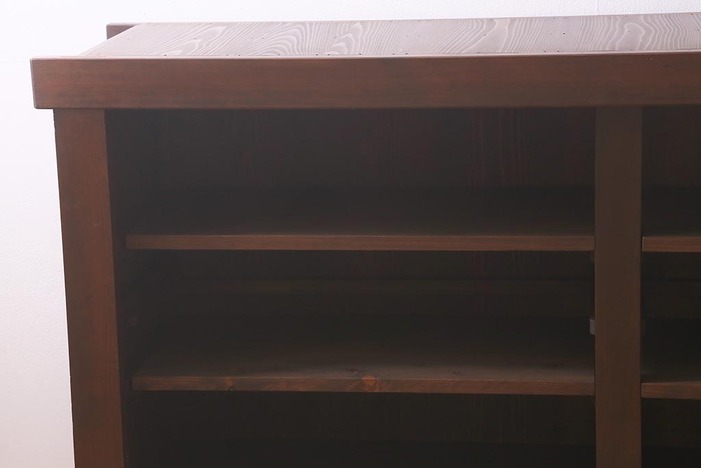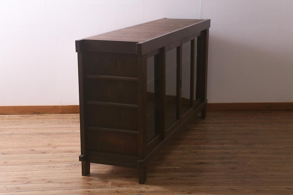 キャビネット・戸棚> テレビ台・ローボード > アンティーク家具 脚付きリメイク ヒノキ材 4枚引き戸の6尺水屋サイドボード(水屋箪笥、戸棚、収納棚)(R-042906)