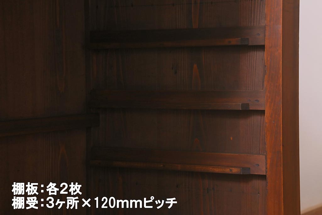 アンティーク家具 脚付きリメイク ヒノキ材 4枚引き戸の6尺水屋サイドボード(水屋箪笥、戸棚、収納棚)(R-042906)