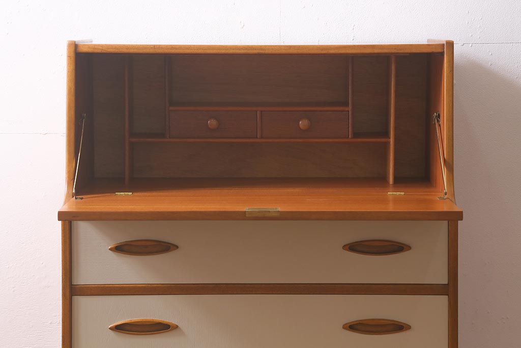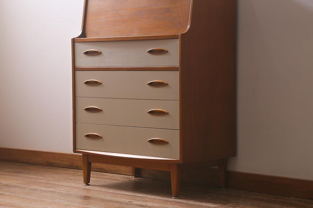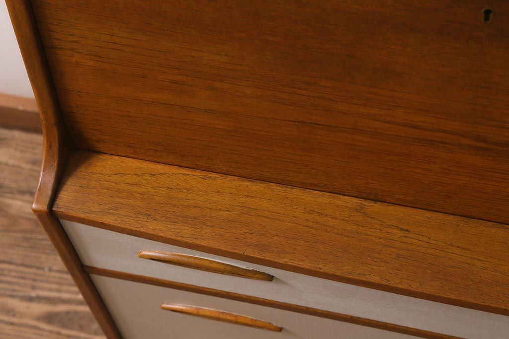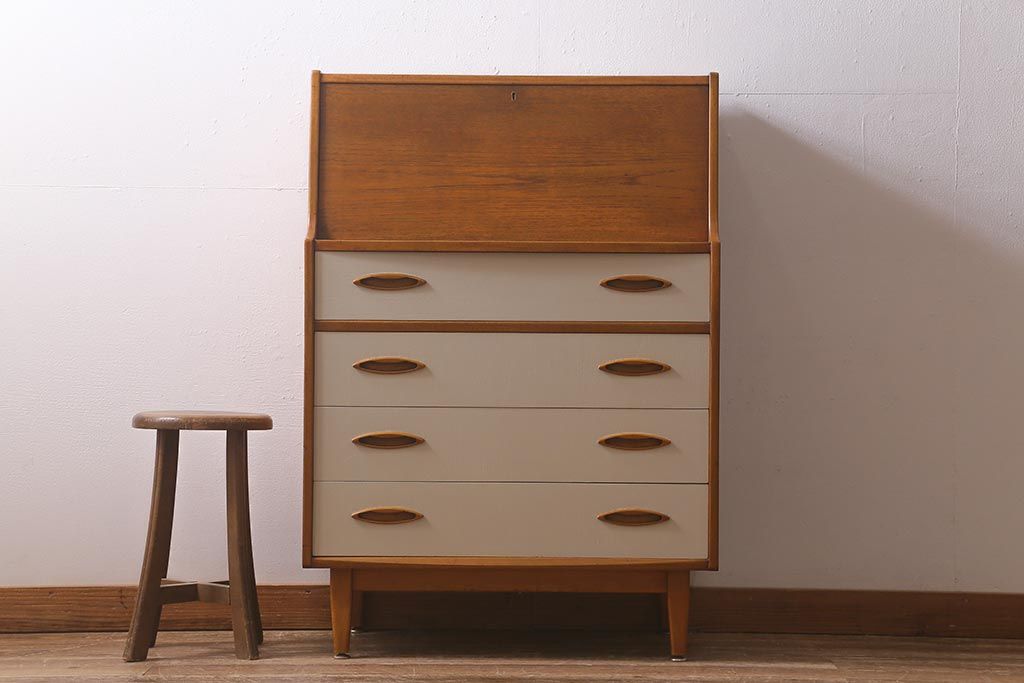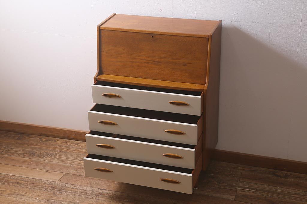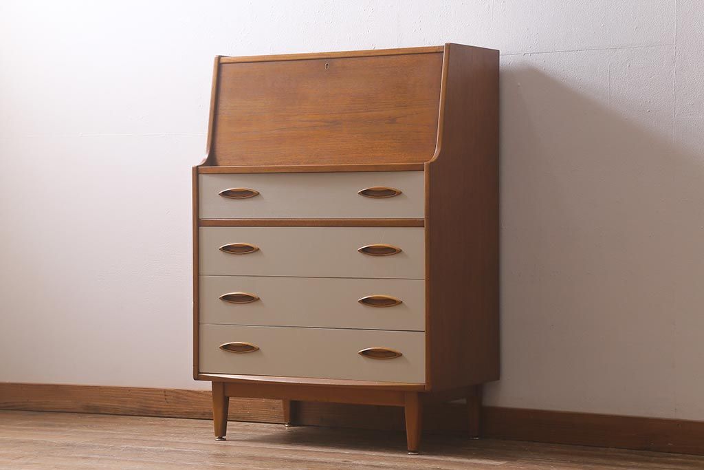 ヴィンテージ家具 北欧ビンテージ ペイントとチーク材のバイカラーがおしゃれなライティングビューロー(デスク、机、在宅ワーク、在宅用チェスト)(R-043023)