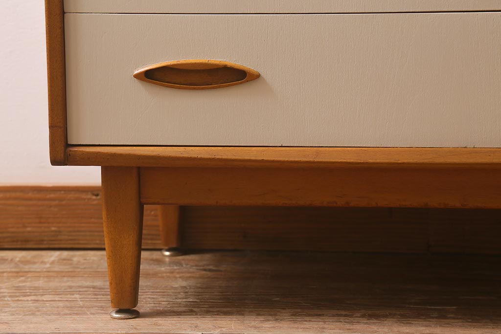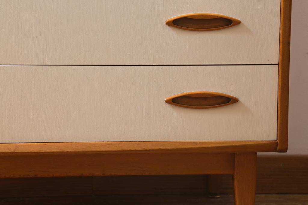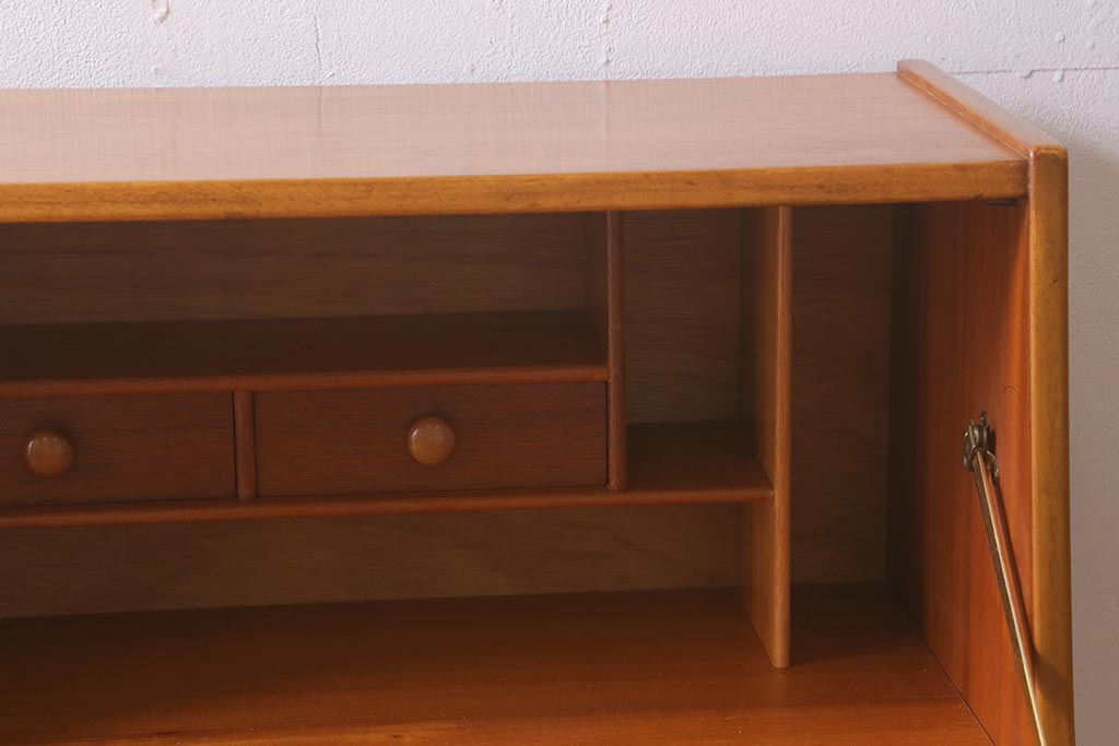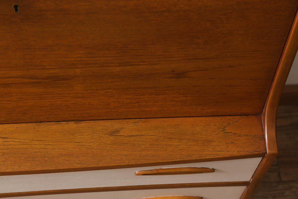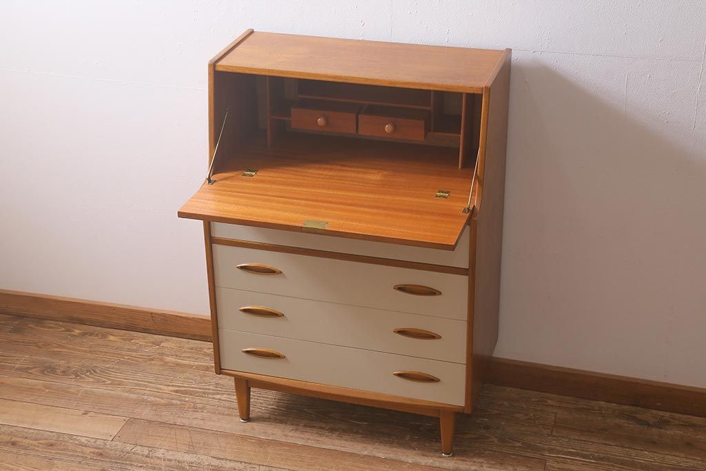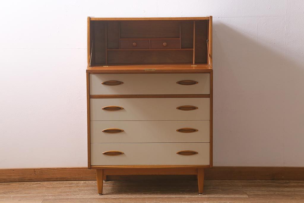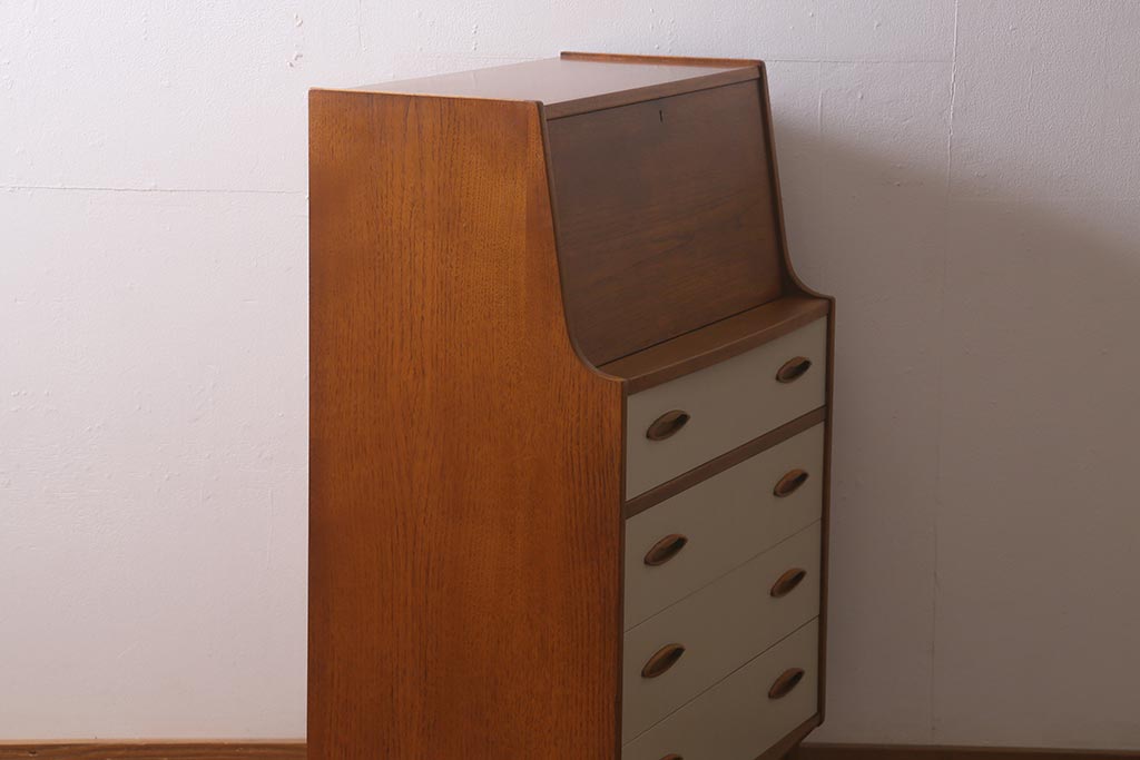 ヴィンテージ家具 北欧ビンテージ ペイントとチーク材のバイカラーがおしゃれなライティングビューロー(デスク、机、在宅ワーク、在宅用チェスト)(R-043023)