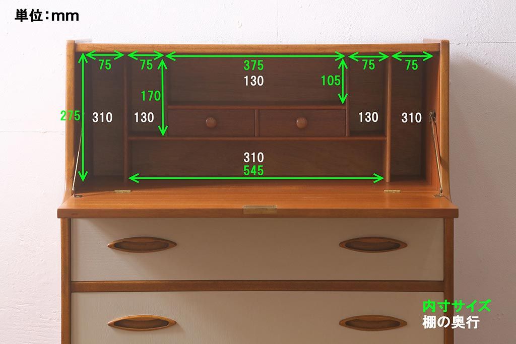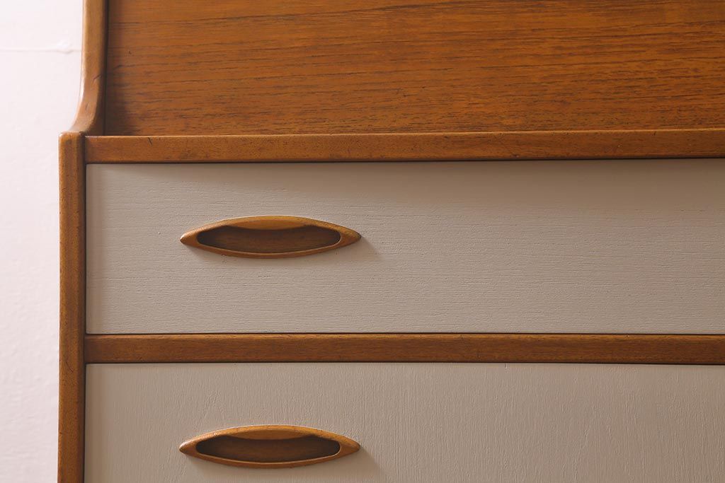 デスク> ライティングビューロー・簿記机 > ヴィンテージ家具 北欧ビンテージ ペイントとチーク材のバイカラーがおしゃれなライティングビューロー(デスク、机、在宅ワーク、在宅用チェスト)(R-043023)