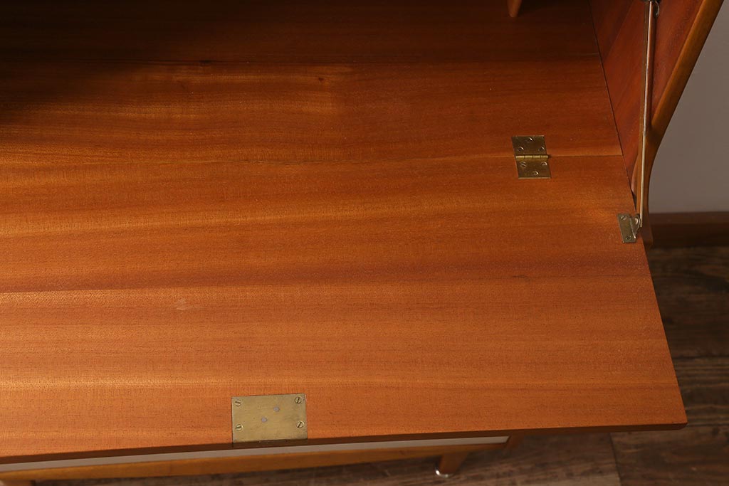 デスク> ワークデスク > ヴィンテージ家具 北欧ビンテージ ペイントとチーク材のバイカラーがおしゃれなライティングビューロー(デスク、机、在宅ワーク、在宅用チェスト)(R-043023)
