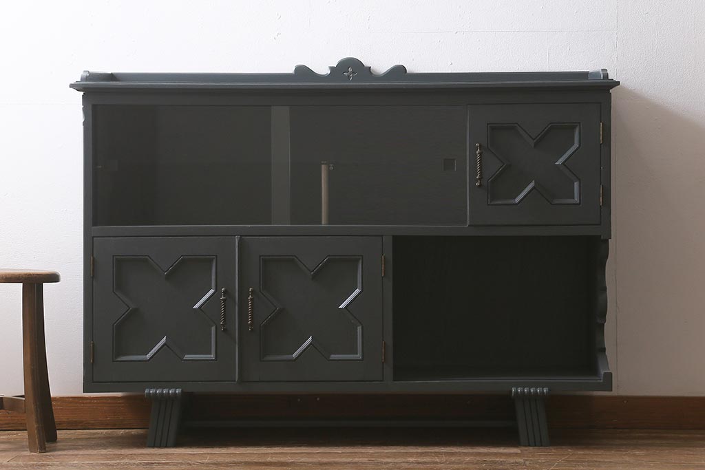 ビンテージ家具 神戸洋家具 永田良介商店 ペイント シックな佇まいのサイドボード(キャビネット、収納棚、飾り棚、ヴィンテージ)(R-043049)