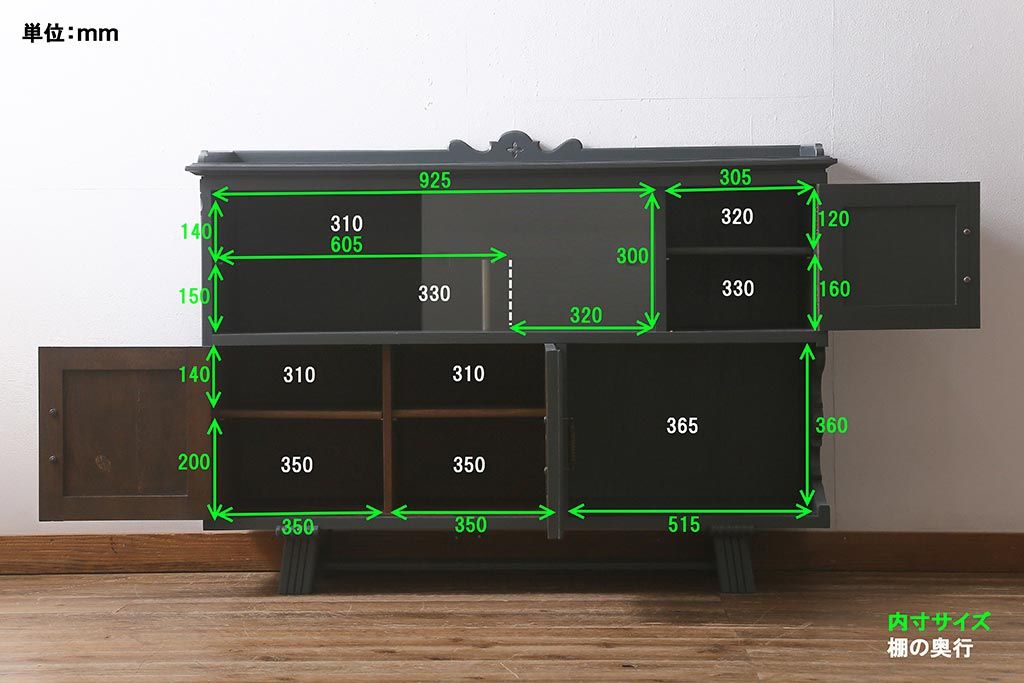 棚の内寸は4枚目の画像に記載しておりますのでそちらをご参考ください。