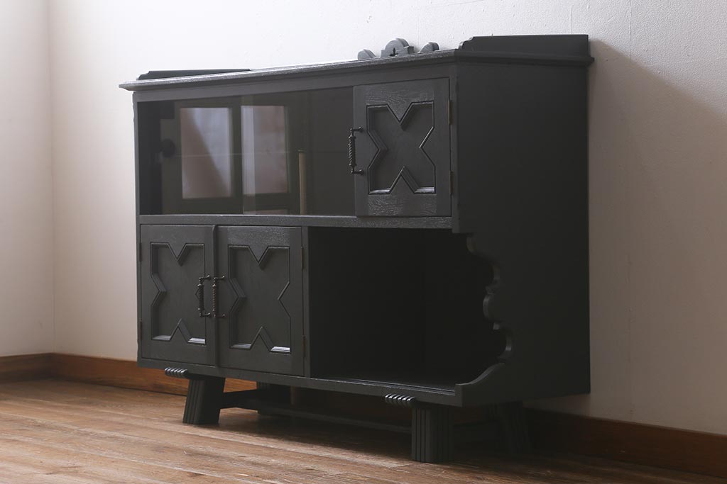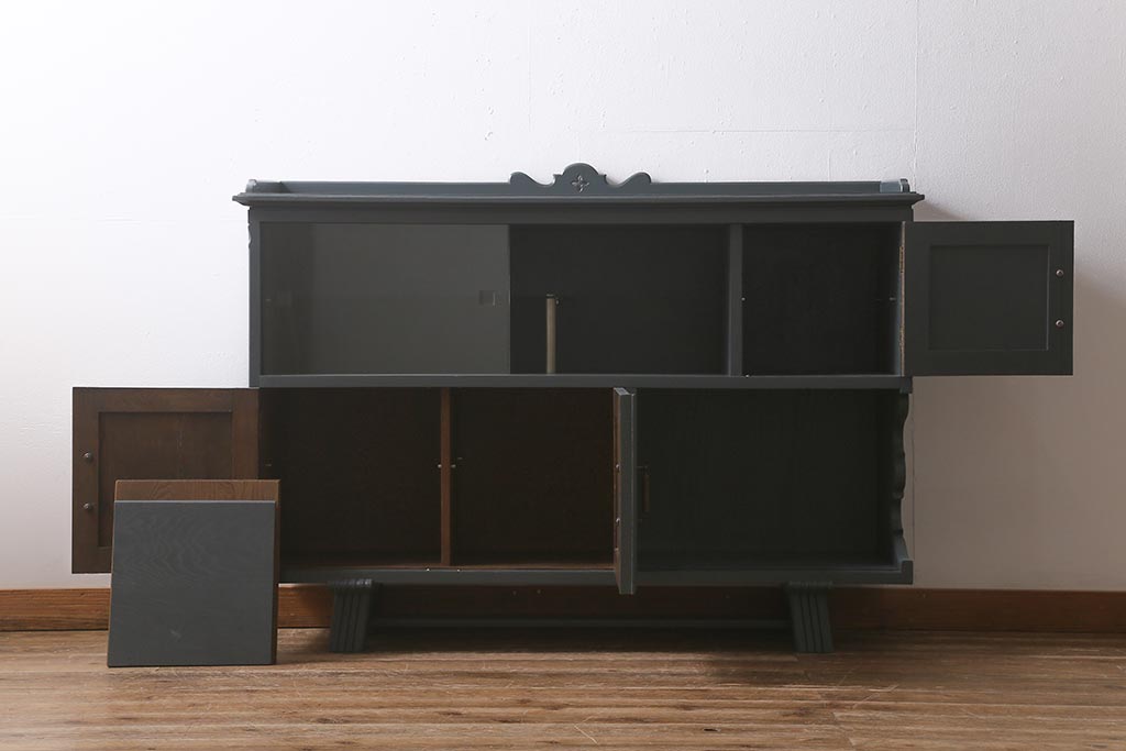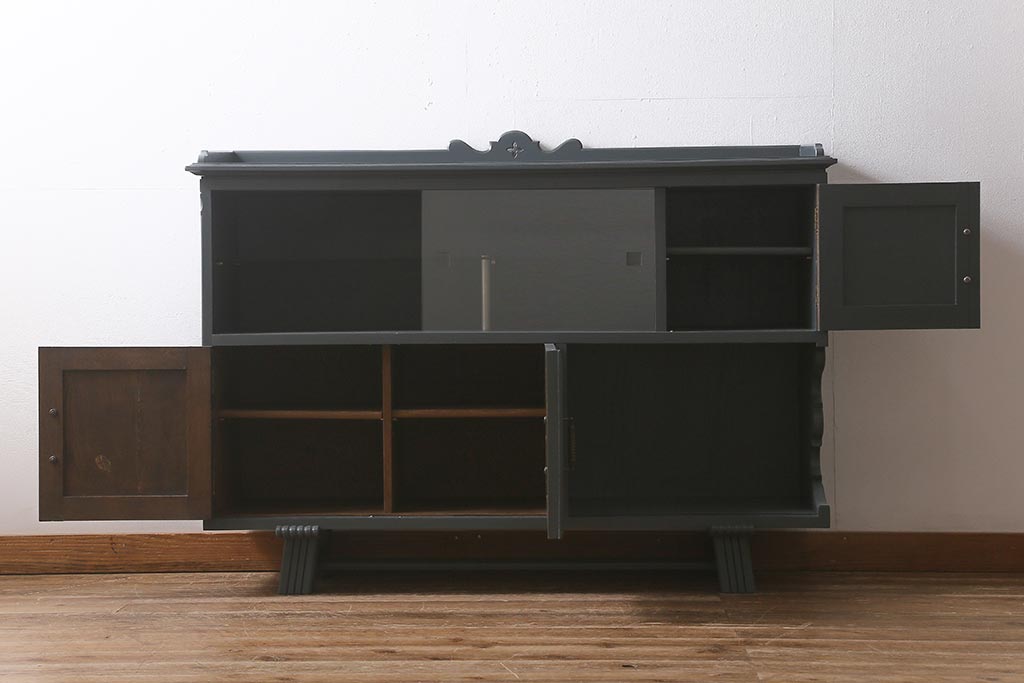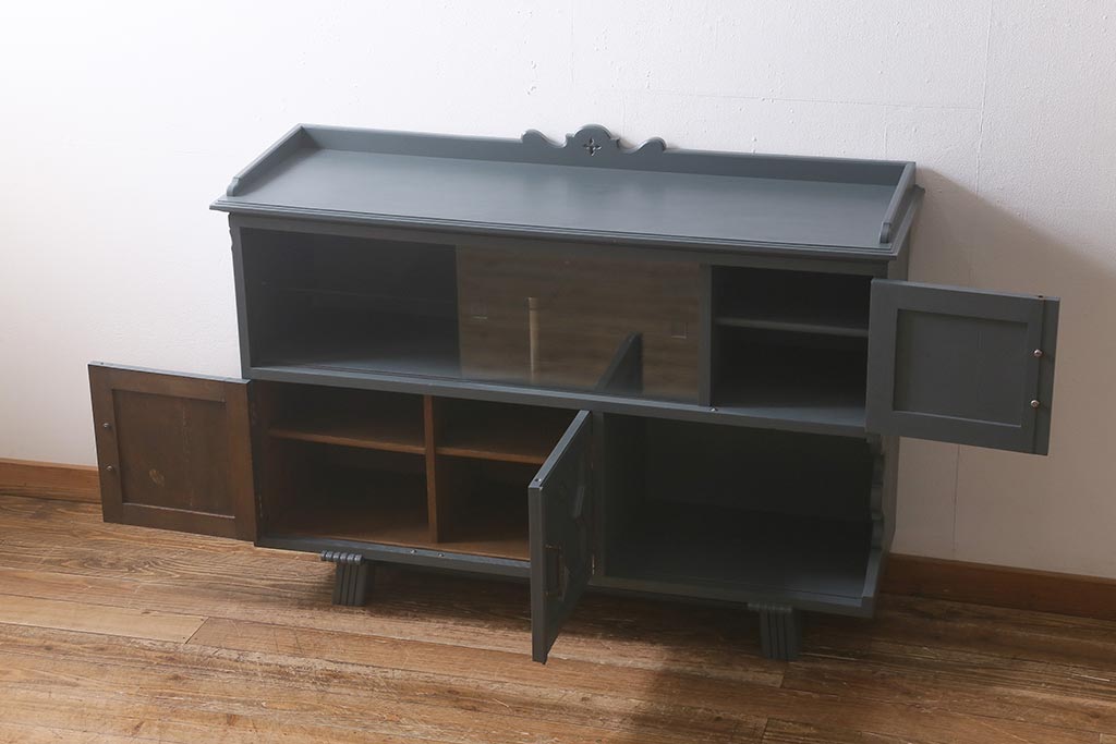 ビンテージ家具 神戸洋家具 永田良介商店 ペイント シックな佇まいのサイドボード(キャビネット、収納棚、飾り棚)(R-043049)です。