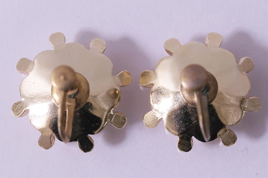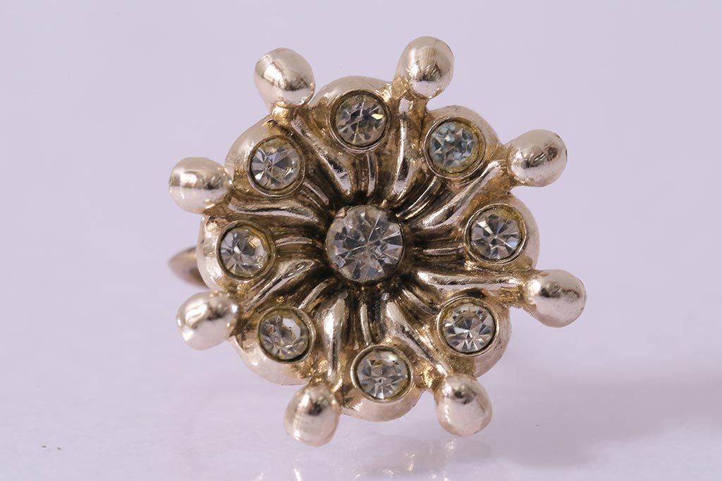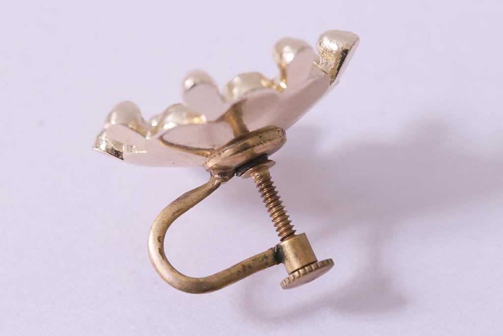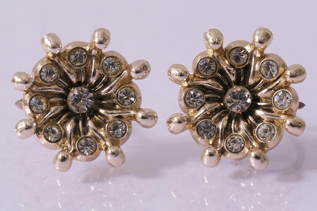 ラフジュ工房> アクセサリー > ビンテージアクセサリー 日本製 きらきらと輝く花モチーフのヴィンテージイヤリング(R-042925)