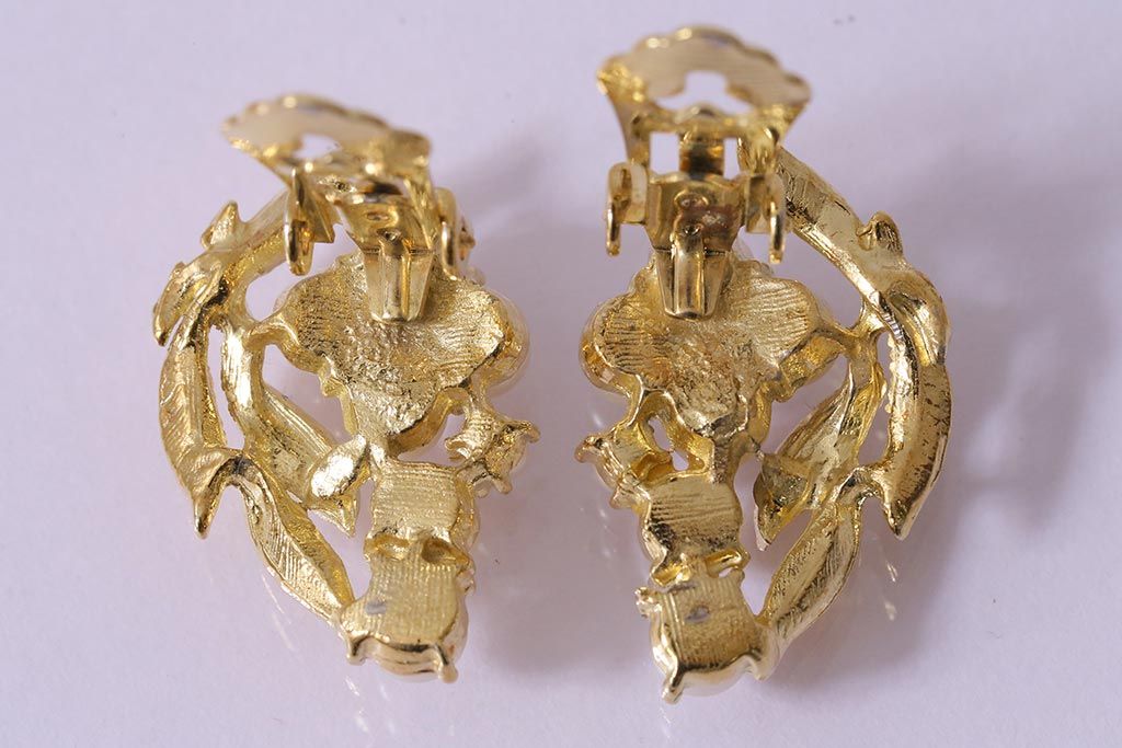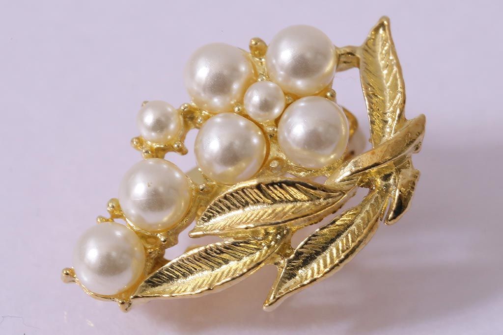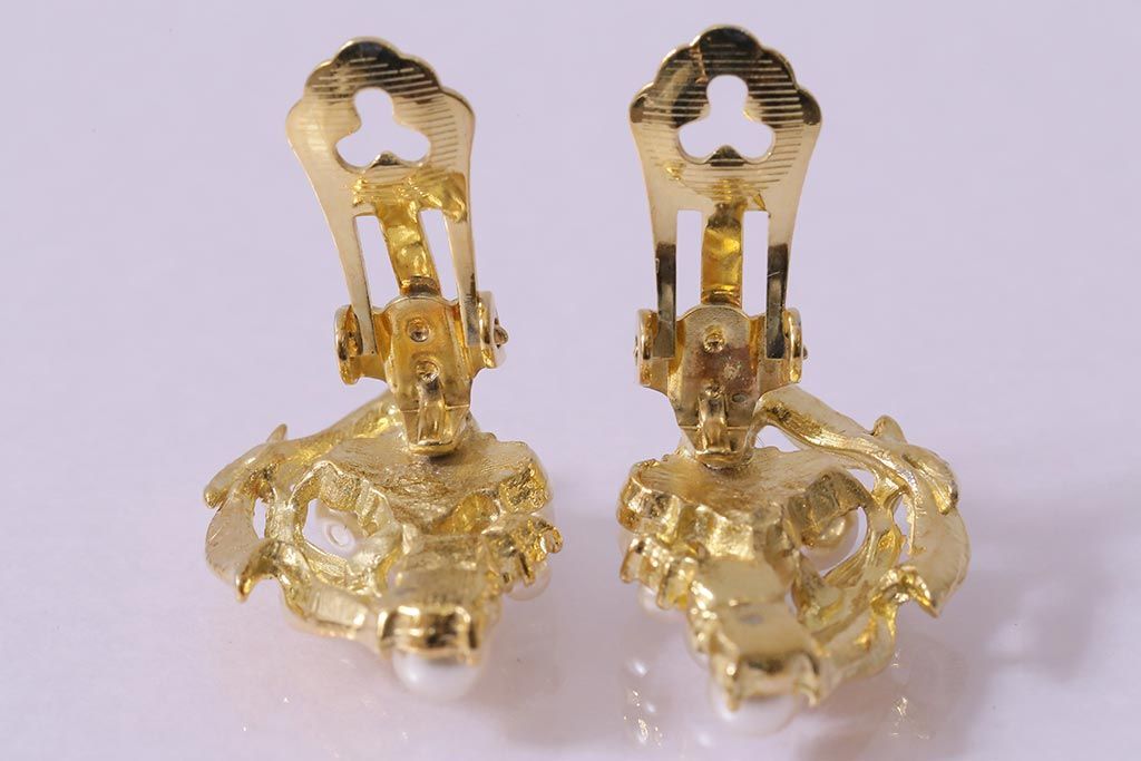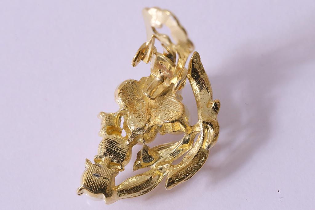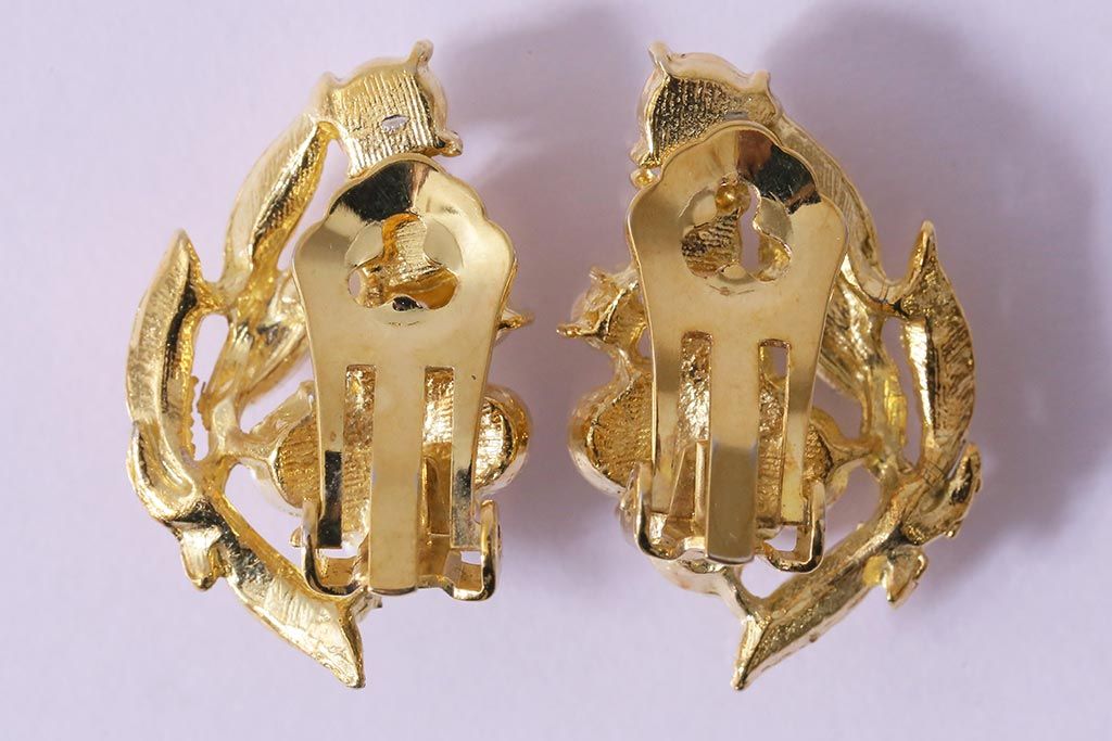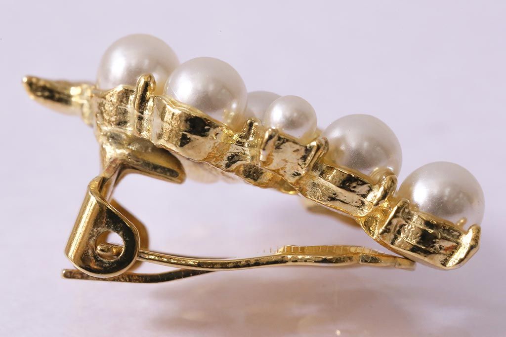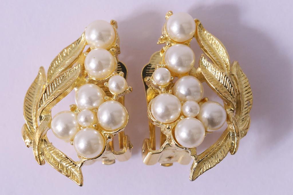 ラフジュ工房> 雑貨 > ビンテージアクセサリー 日本製 イミテーションパールが上品なリーフモチーフのイヤリング(R-042926)