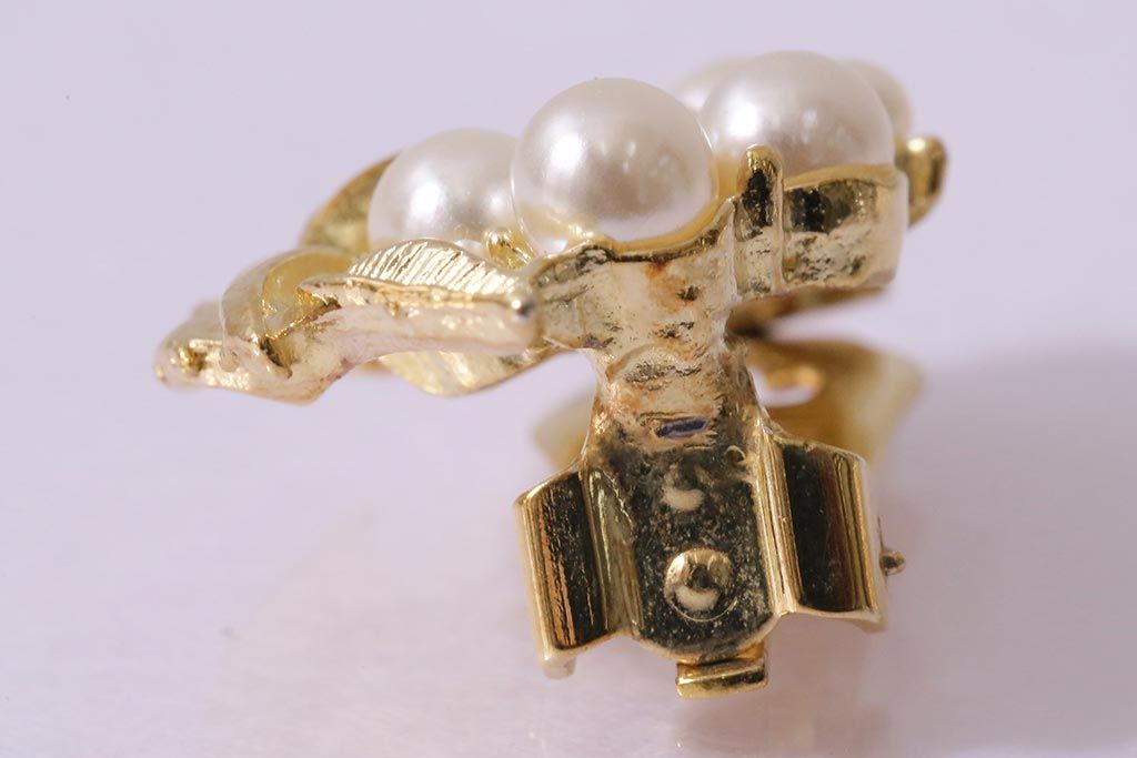 ビンテージアクセサリー 日本製 イミテーションパールが上品なリーフモチーフのイヤリング(R-042926)