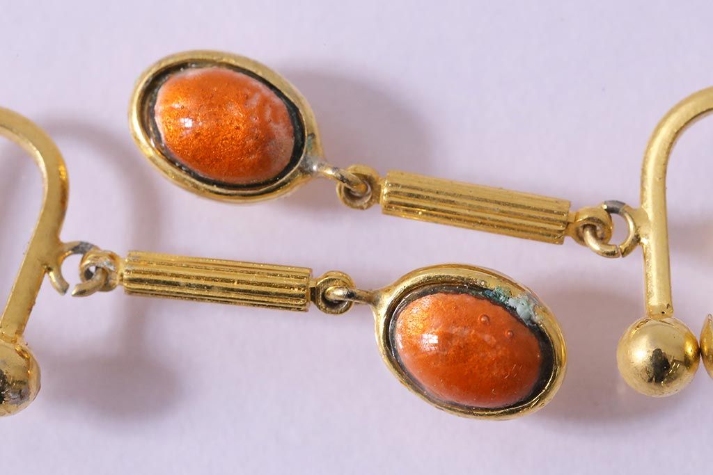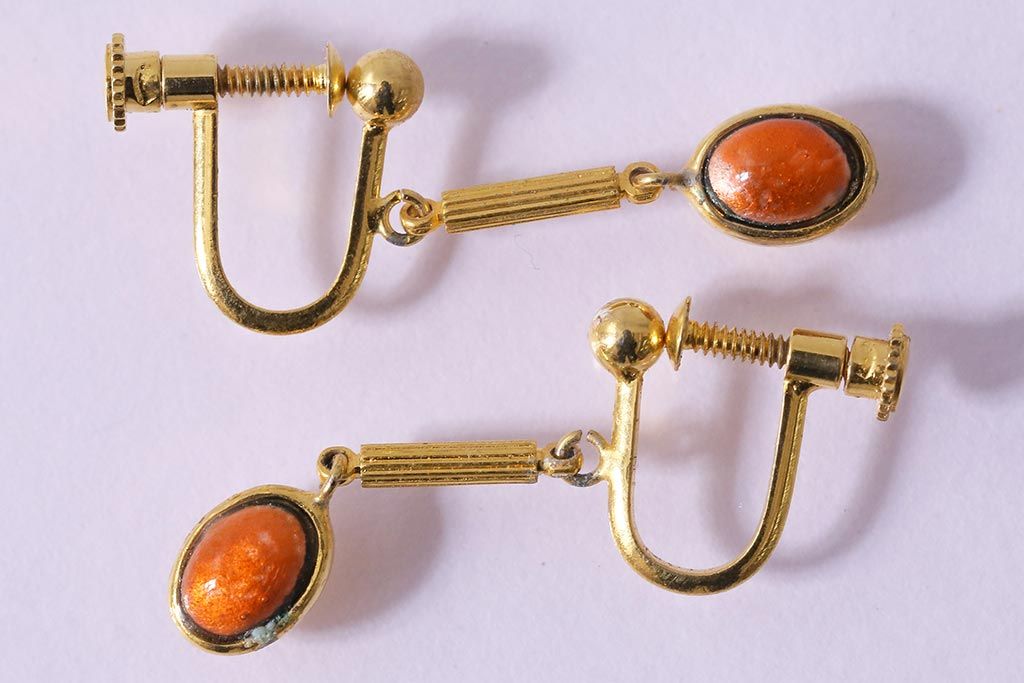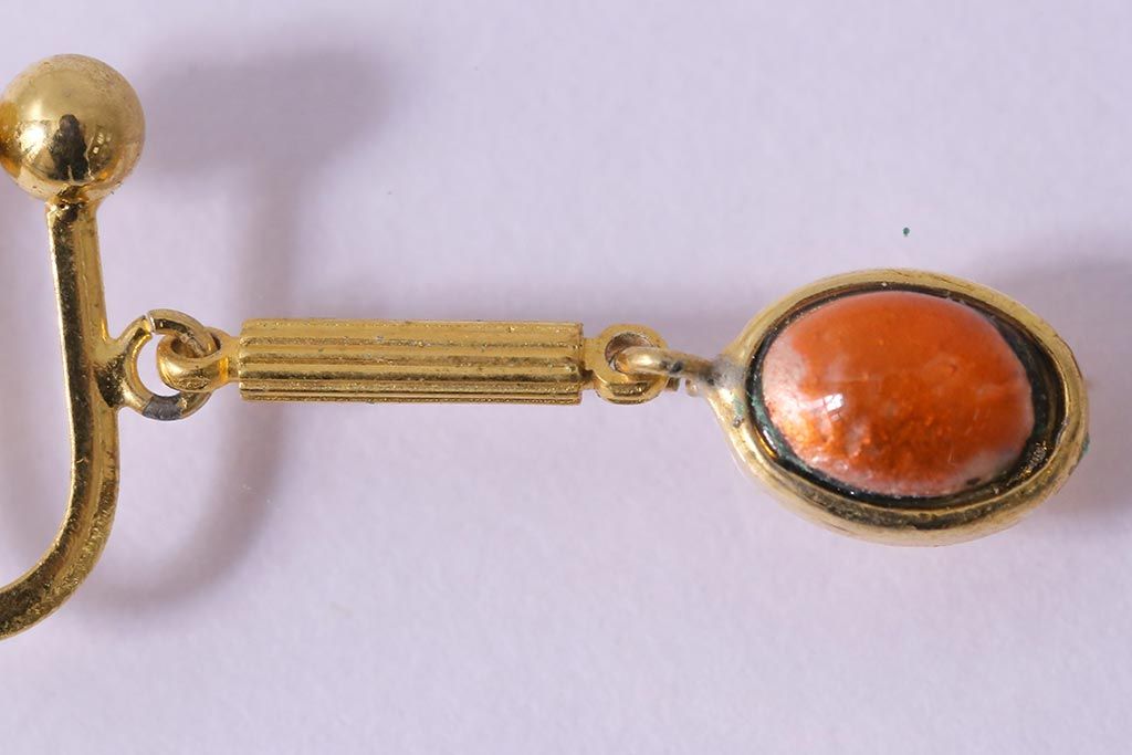 ラフジュ工房> アクセサリー > ビンテージアクセサリー 日本製 オレンジカラーがアクセントのゆらゆらイヤリング(R-042928)