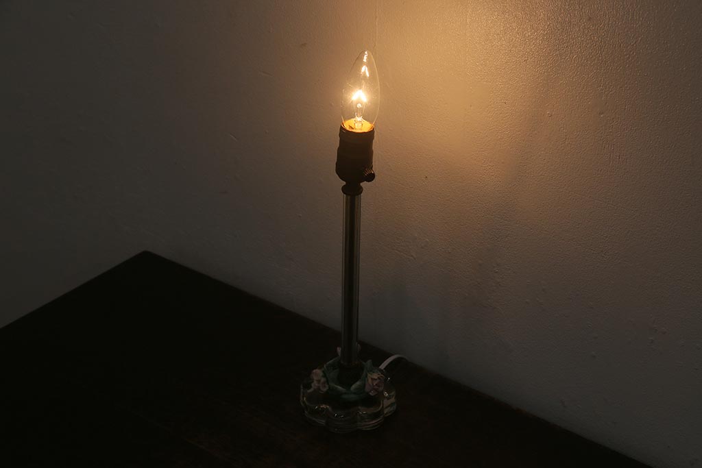 ヴィンテージ照明 バラのモチーフがかわいらしいアメリカビンテージのテーブルランプ(スタンドライト、卓上ランプ)(R-042737)