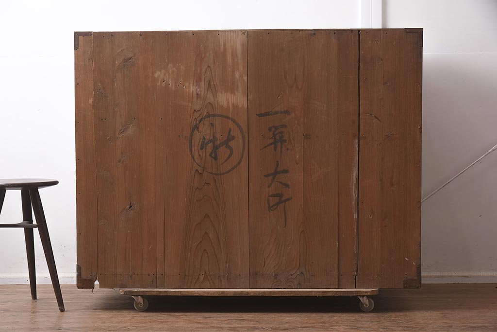 和箪笥> 衣装箪笥 > アンティーク家具 明治期 前面欅(ケヤキ)材 堂々とした金具が魅力の仙台箪笥(時代箪笥、衣装箪笥)(R-042961)