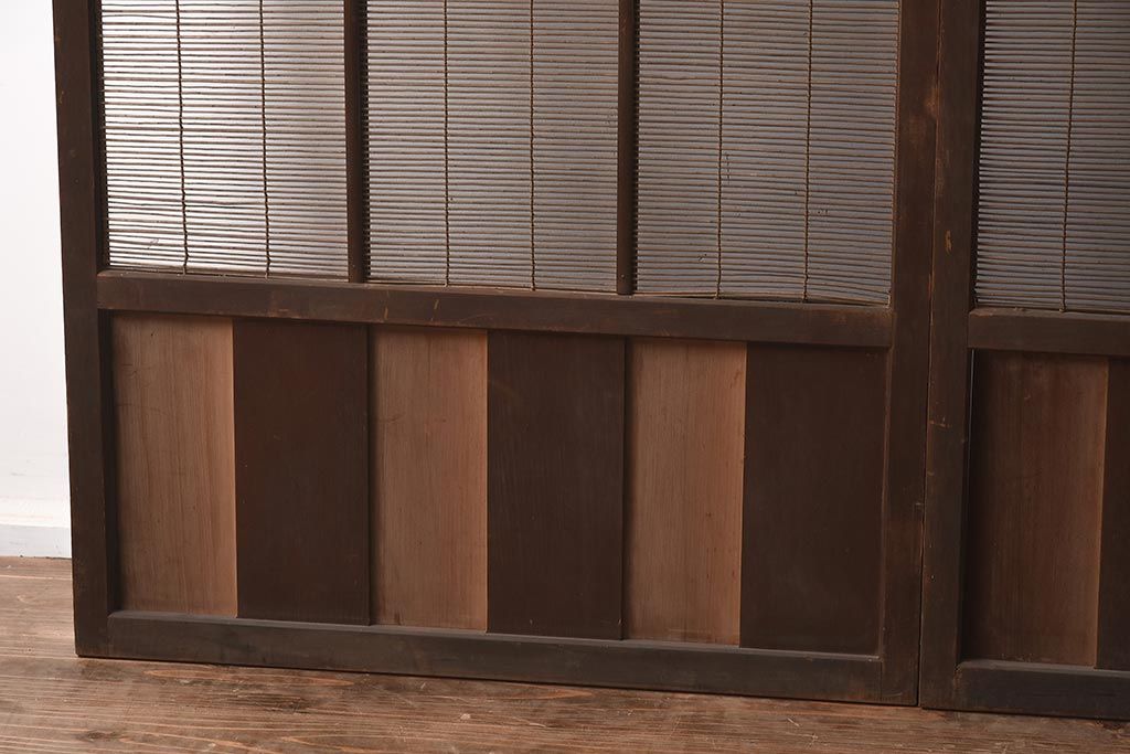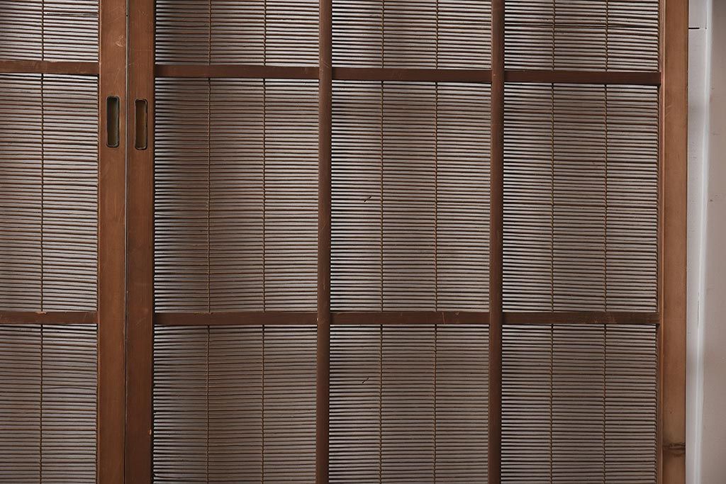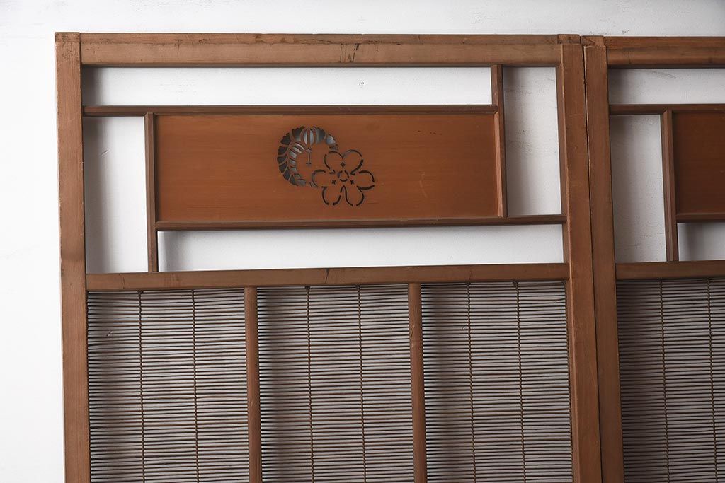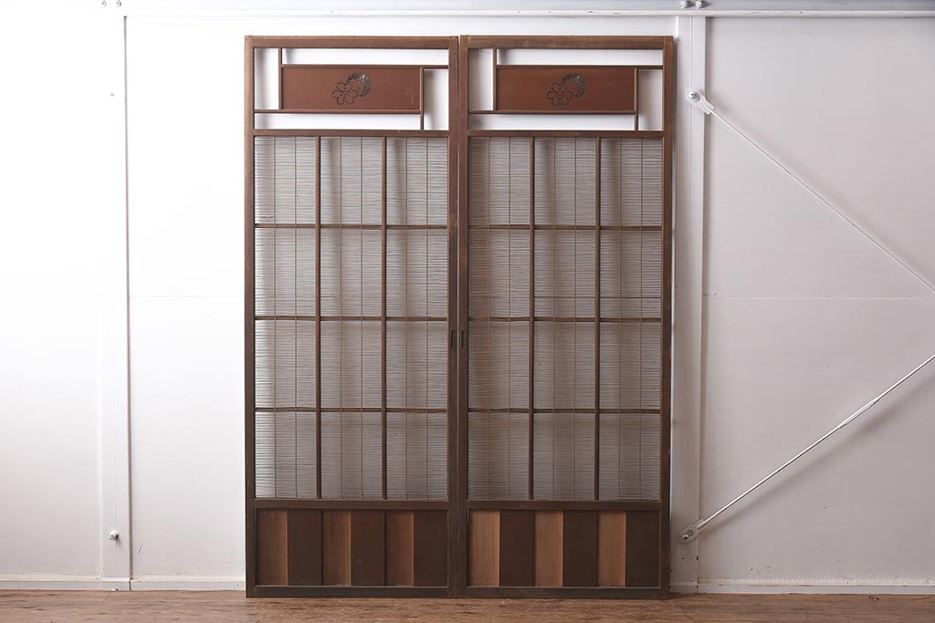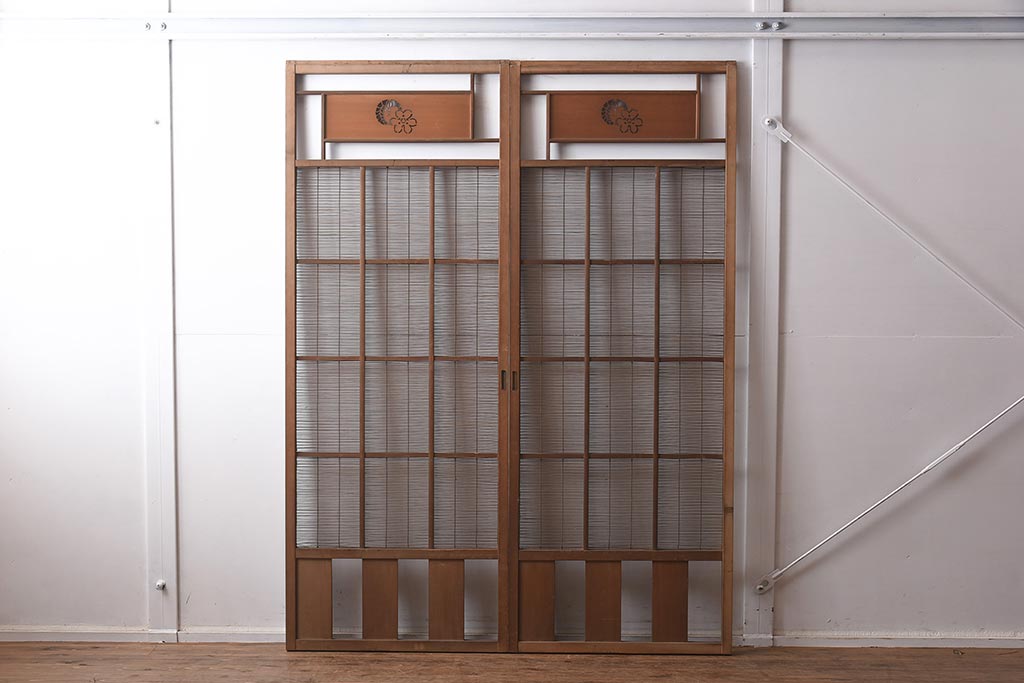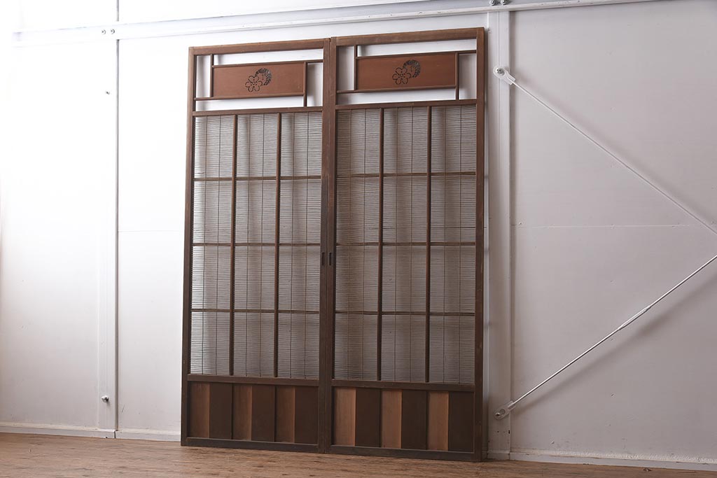 ビンテージ建具 上手物! 無双窓 藤紋の透かし入りの御簾戸2枚セット(戸、簀戸、葭戸、夏障子、夏戸、葦戸)(R-042663)