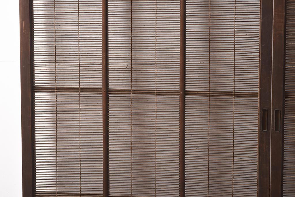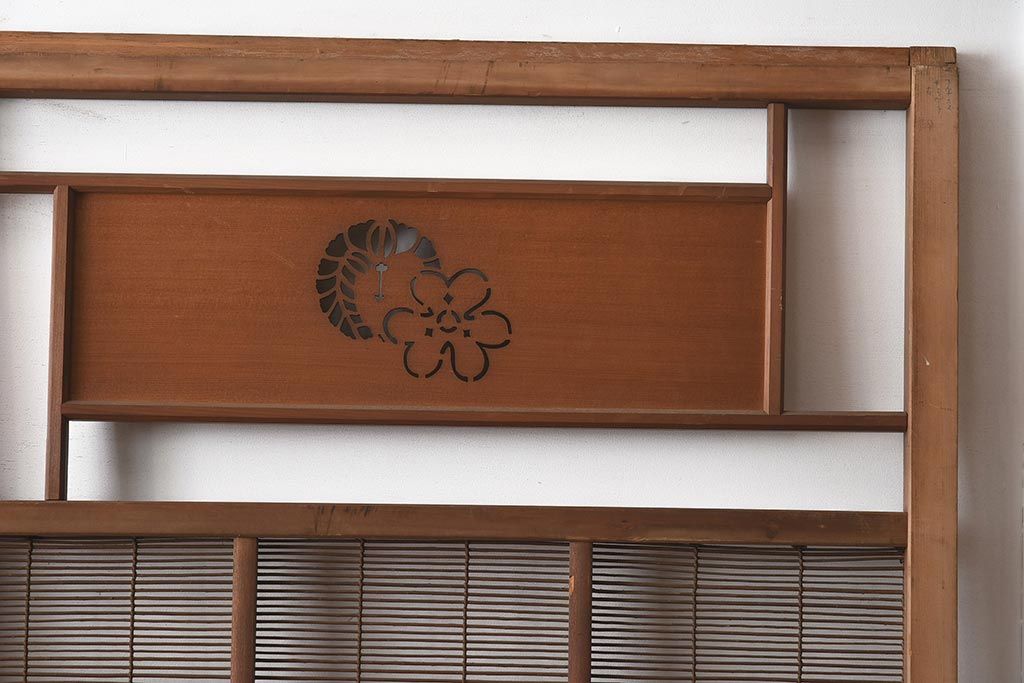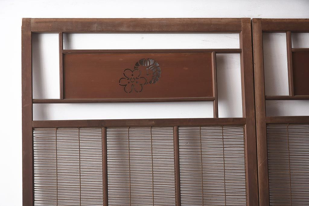 ドア・建具> 引き戸 > ビンテージ建具 上手物! 無双窓 藤紋の透かし入りの御簾戸2枚セット(戸、簀戸、葭戸、夏障子、夏戸、葦戸)(R-042663)