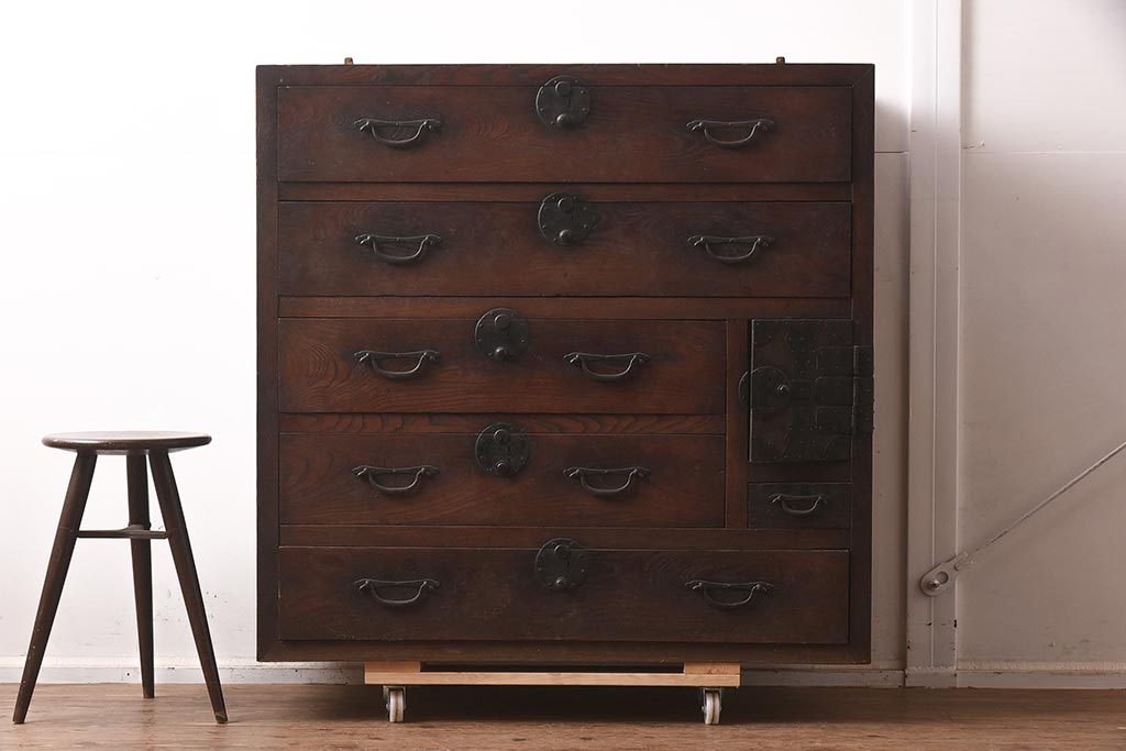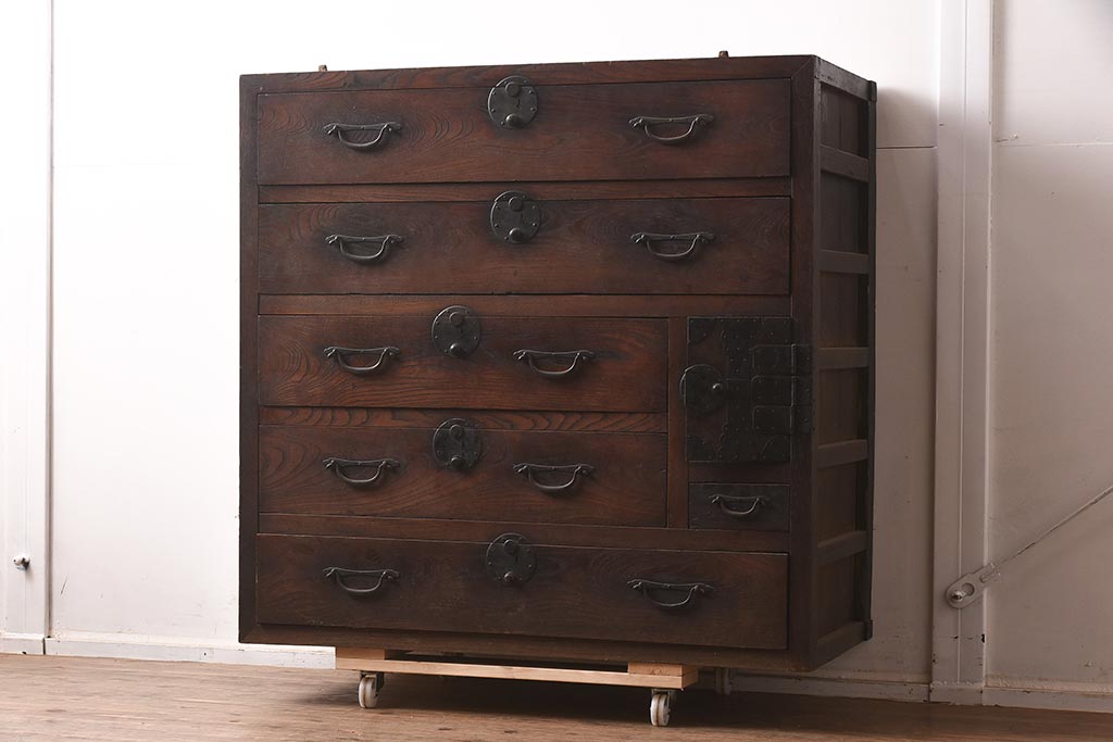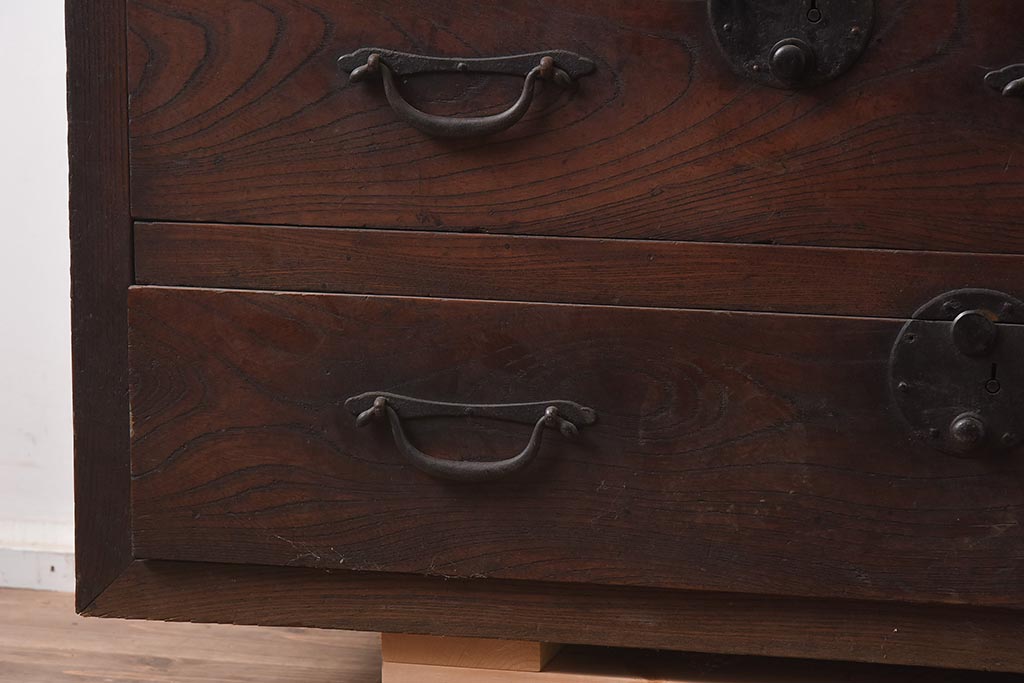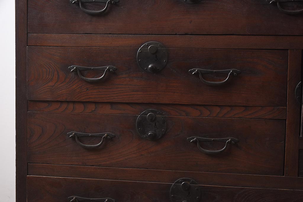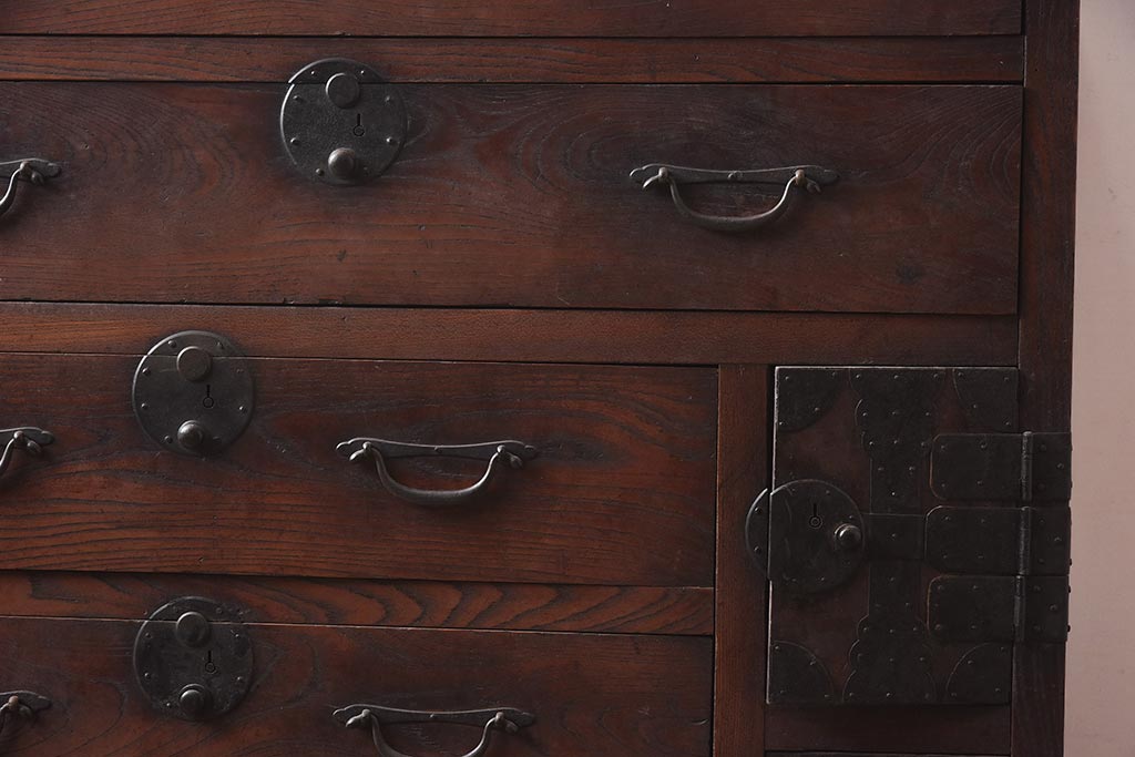 和箪笥 > 【簡易リペア限定品】アンティーク建具 明治期 前面欅(ケヤキ)材 味わい漂う衣装箪笥(時代箪笥、収納箪笥、チェスト、引き出し)(R-042962)
