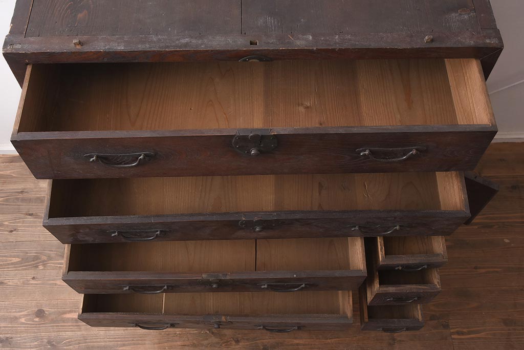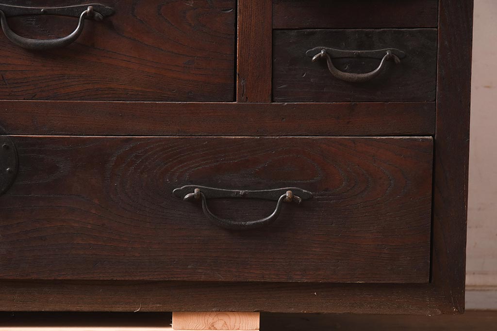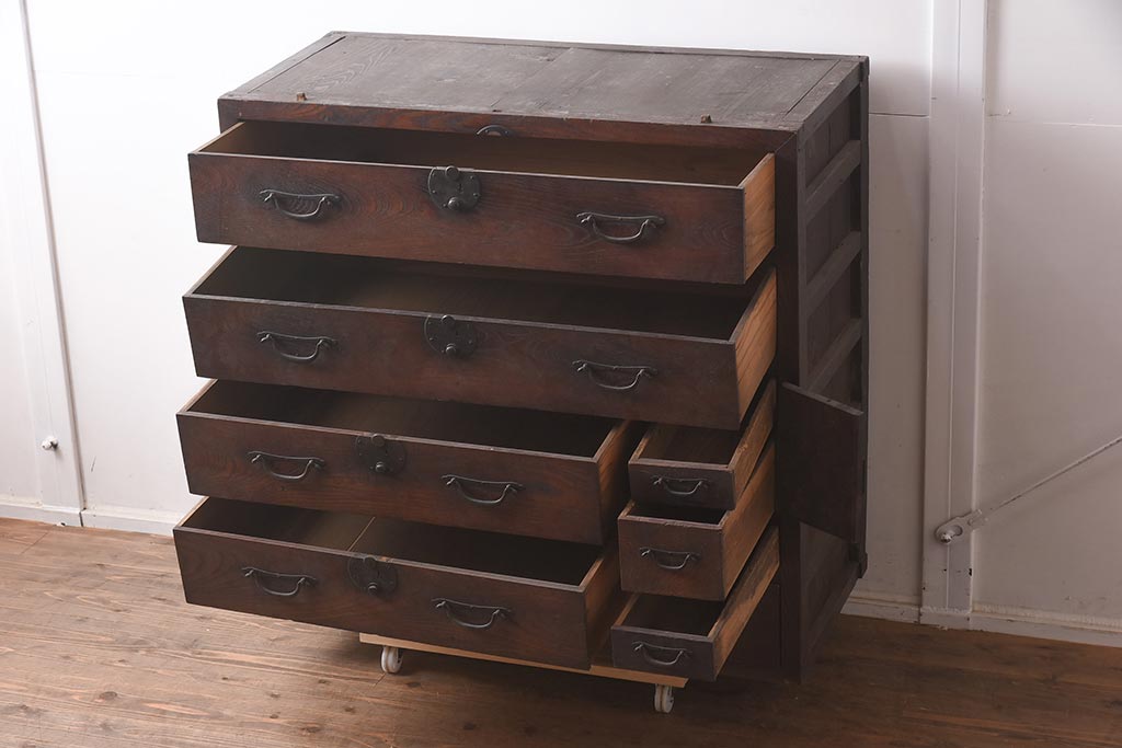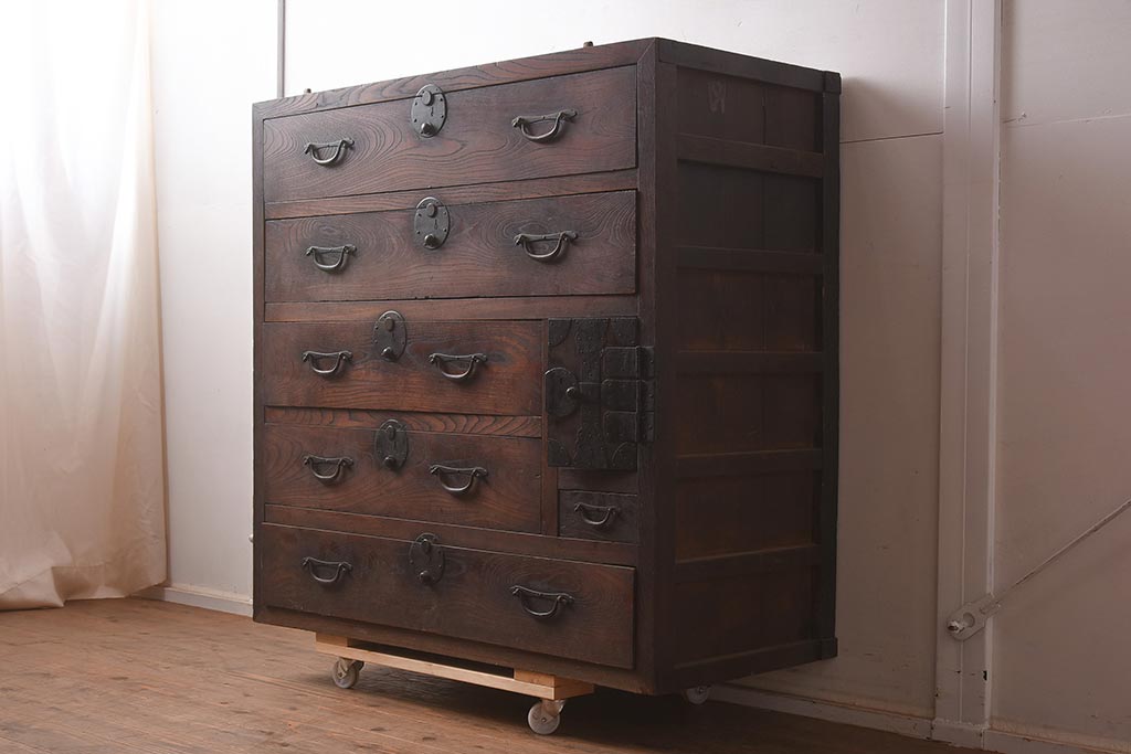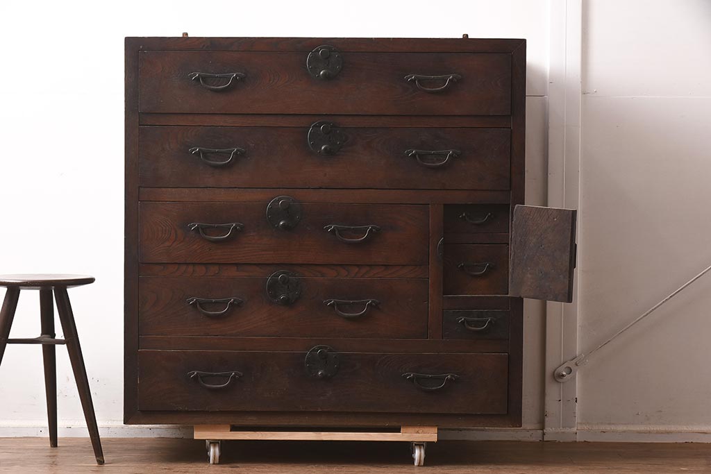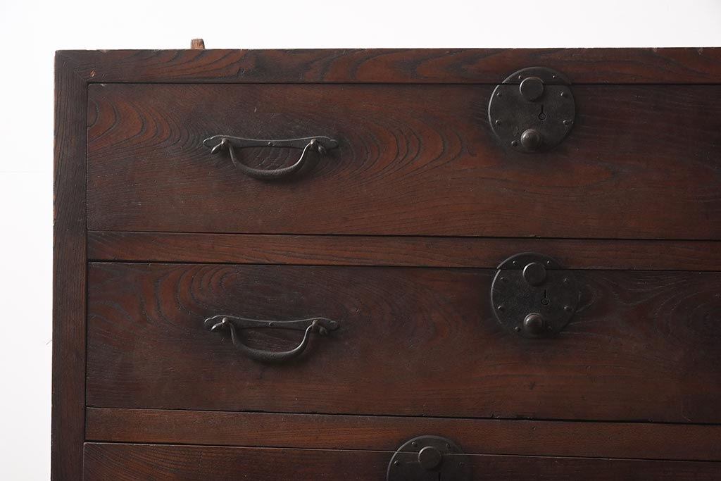 和箪笥 > 【簡易リペア限定品】アンティーク建具 明治期 前面欅(ケヤキ)材 味わい漂う衣装箪笥(時代箪笥、収納箪笥、チェスト、引き出し)(R-042962)