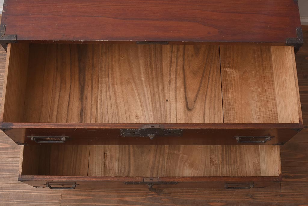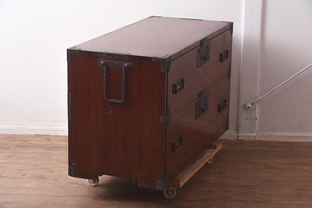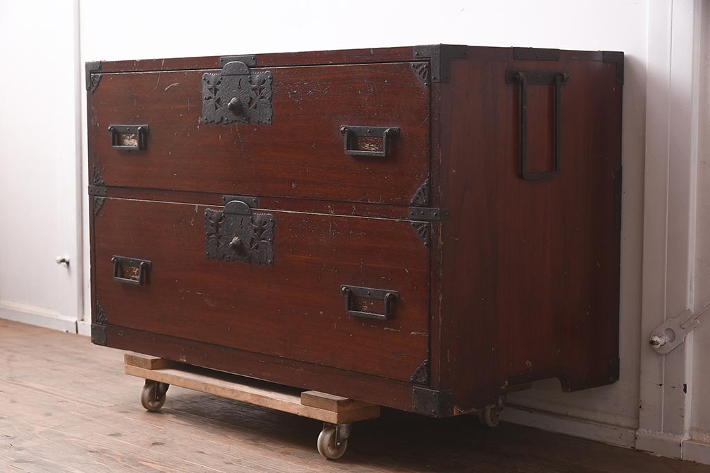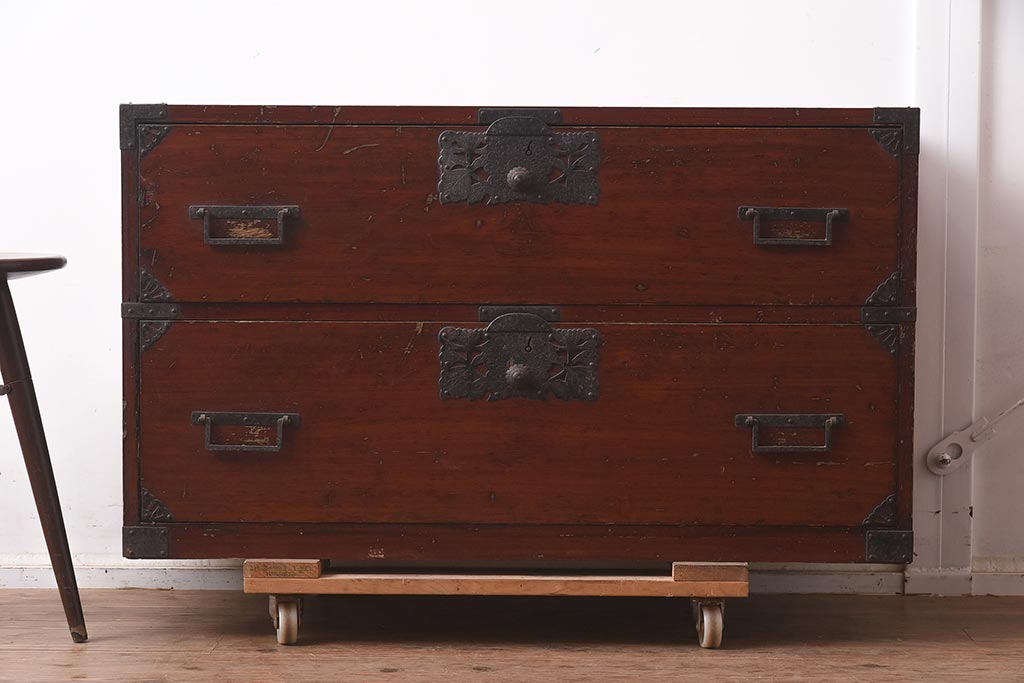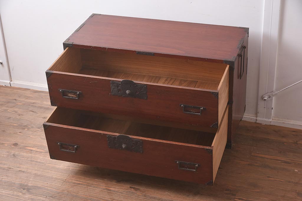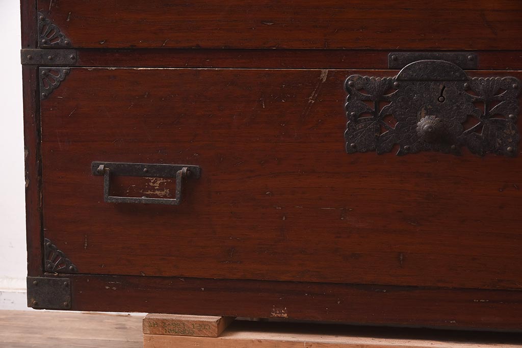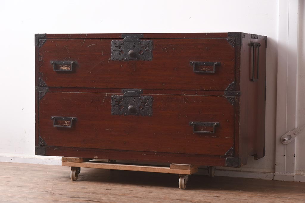 和箪笥> 衣装箪笥 > アンティーク家具 明治期 総桐材 漆塗りの箪笥ローボード(ローチェスト、衣装箪笥、時代箪笥、桐箪笥、桐たんす)(R-042963)