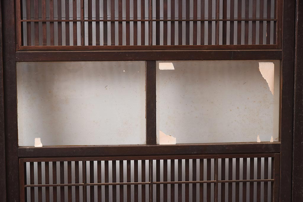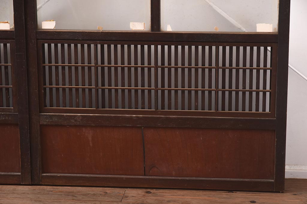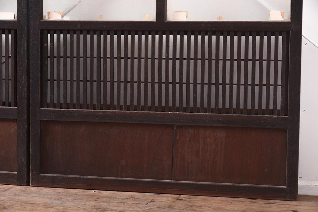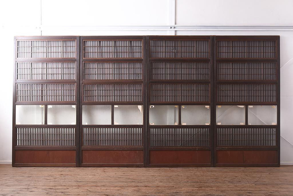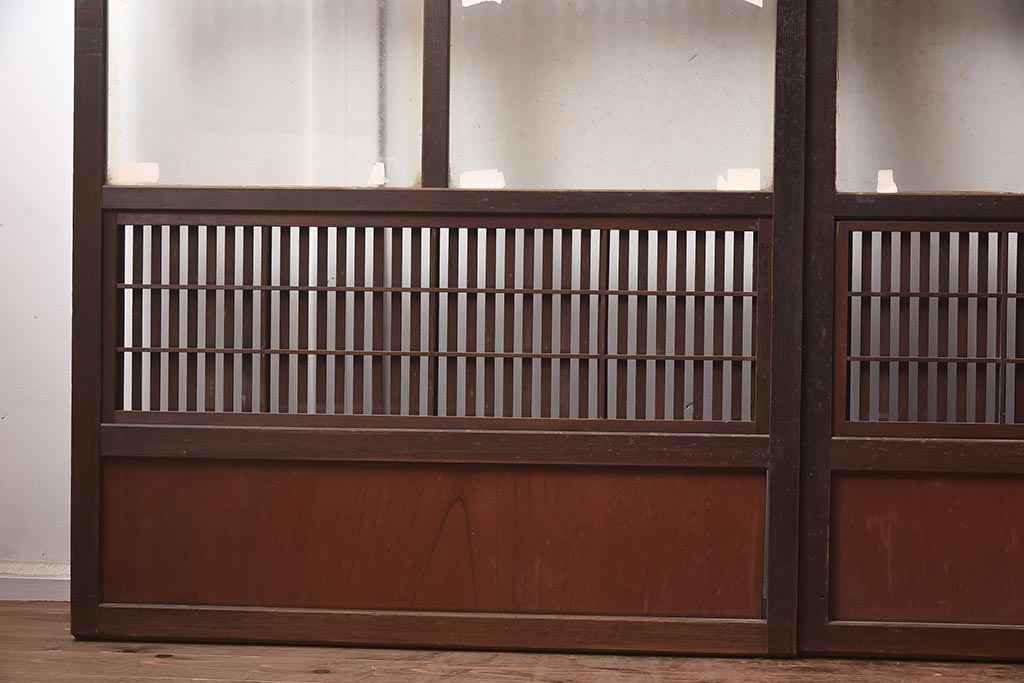 アンティーク建具 昭和初期 裏障子付き 腰板欅(ケヤキ)材 格子戸4枚セット(ガラス帯戸、引き戸)(R-042970)
