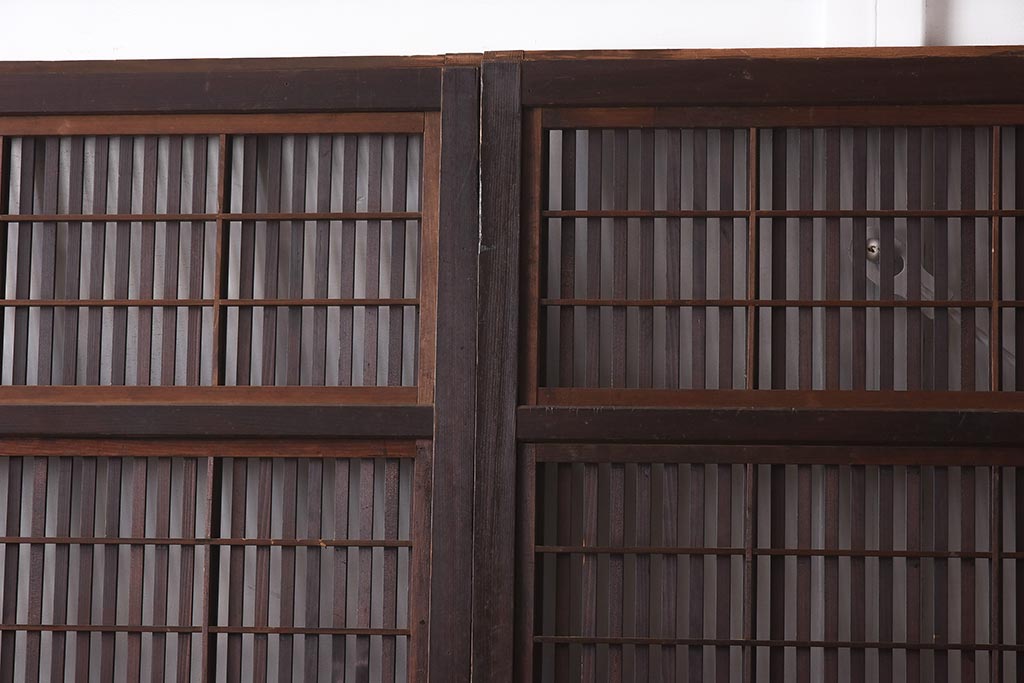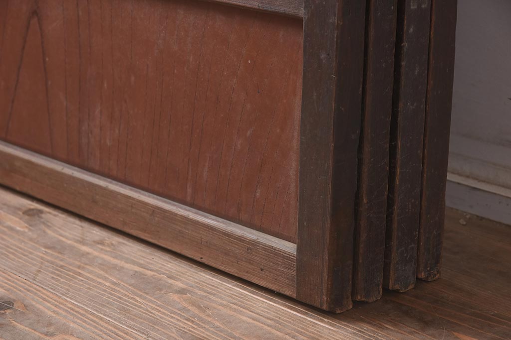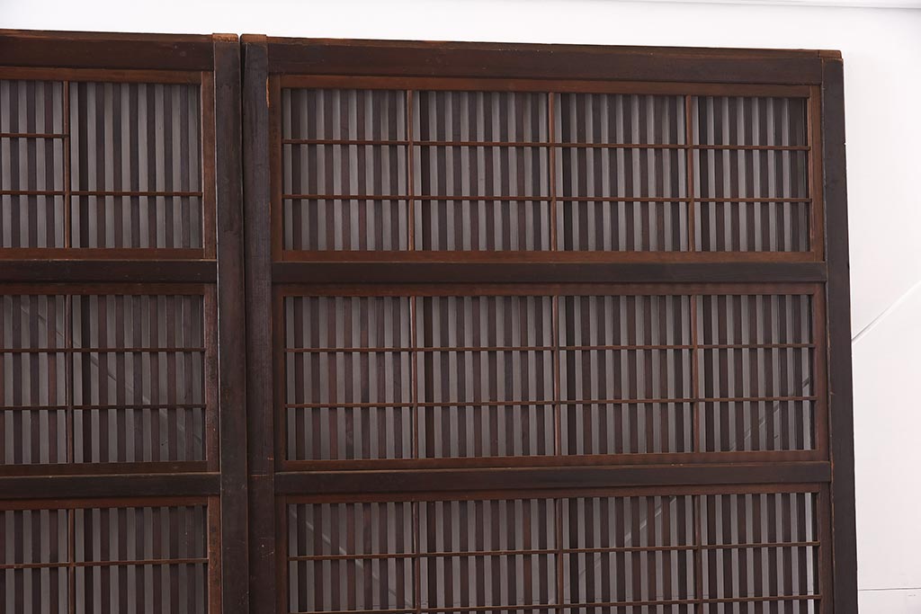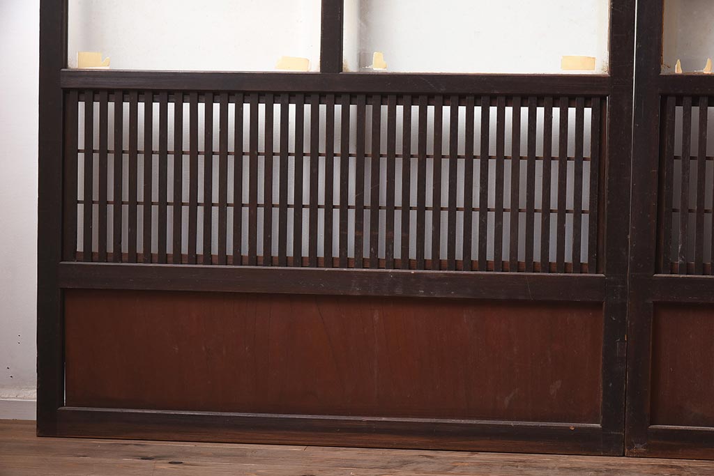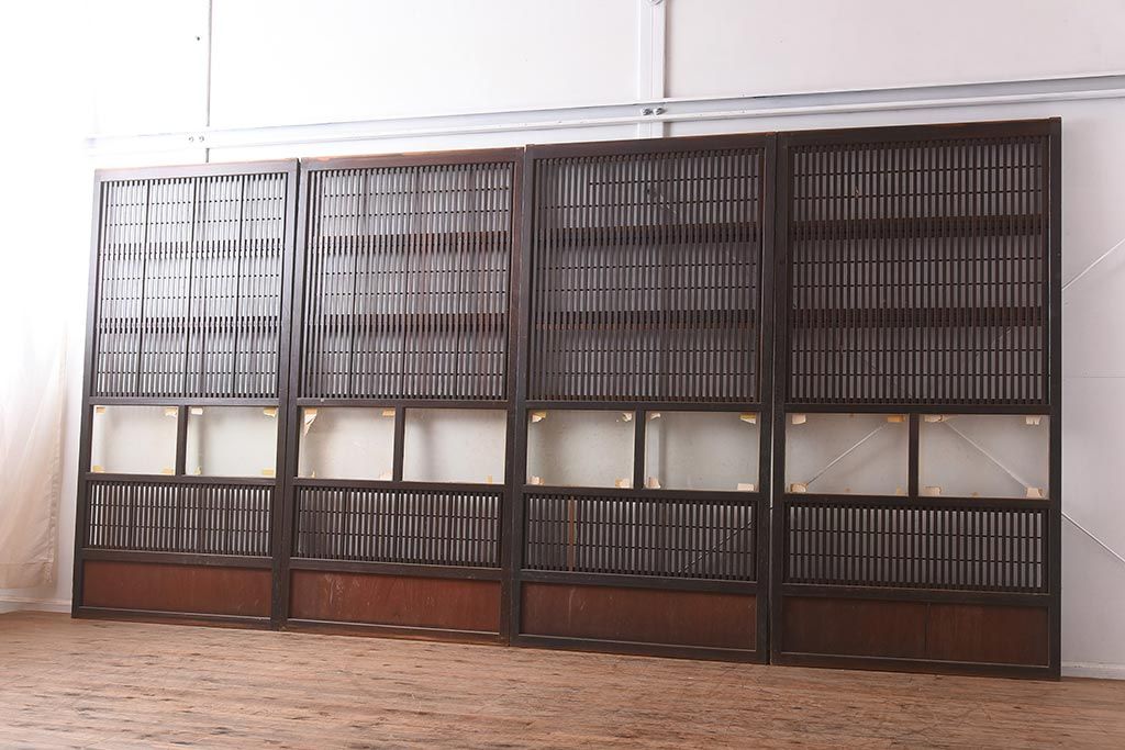 アンティーク建具 昭和初期 裏障子付き 腰板欅(ケヤキ)材 格子戸4枚セット(ガラス帯戸、引き戸)(R-042970)