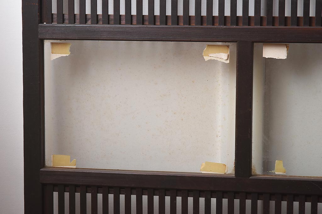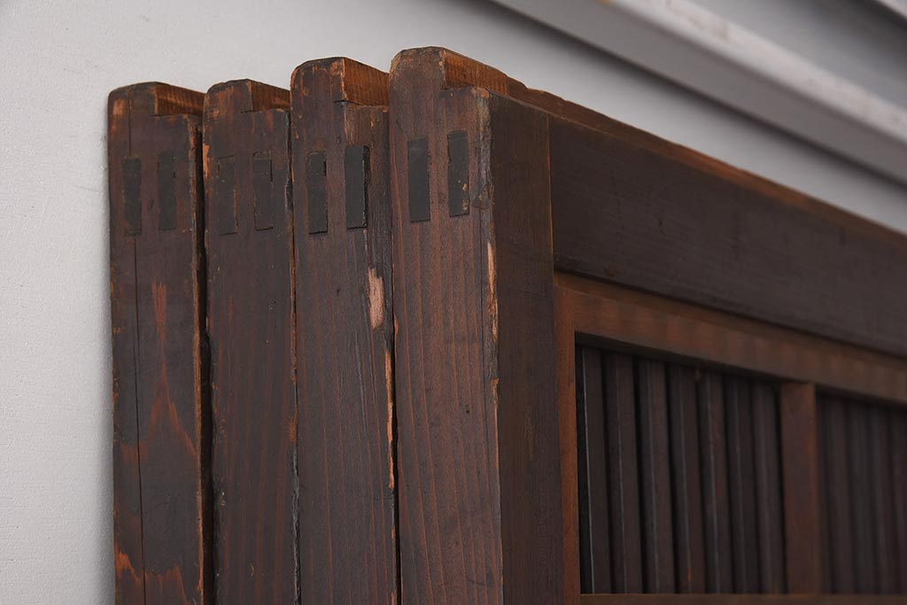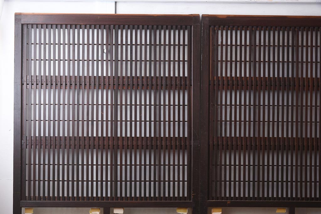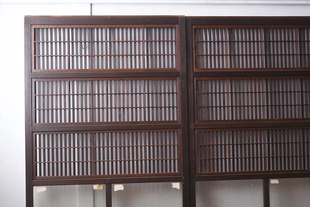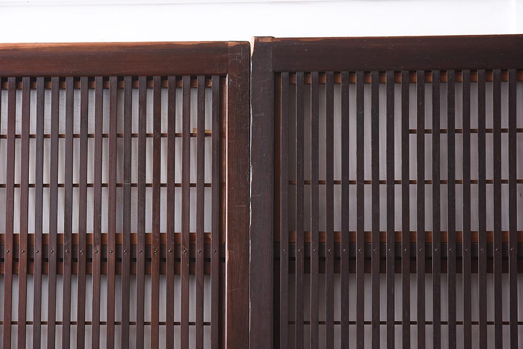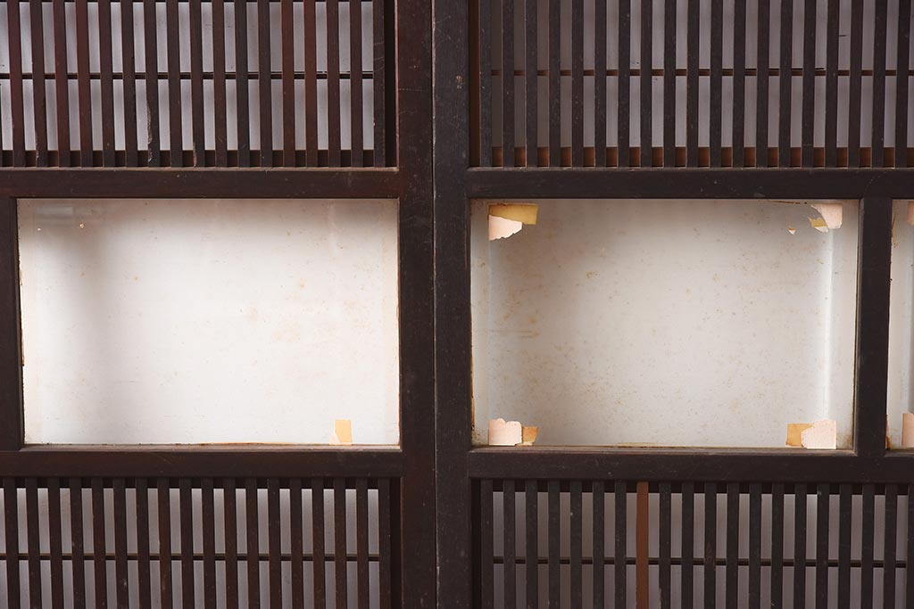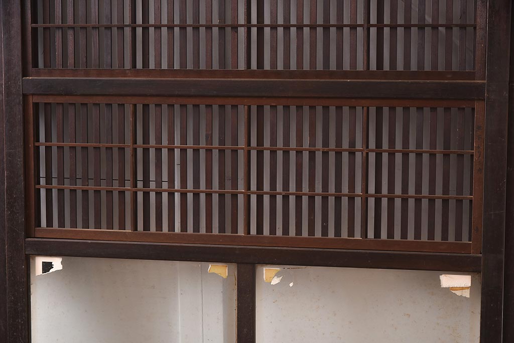 ラフジュ工房> ドア・建具> 格子戸 > アンティーク建具 昭和初期 裏障子付き 腰板欅(ケヤキ)材 格子戸4枚セット(ガラス帯戸、引き戸)(R-042970)