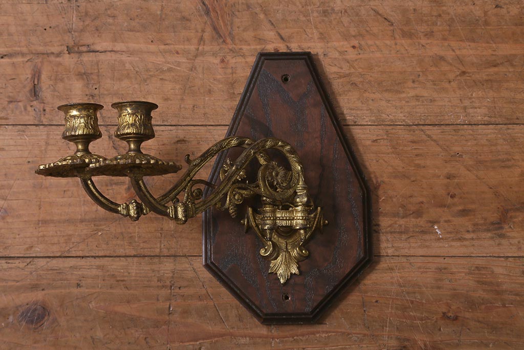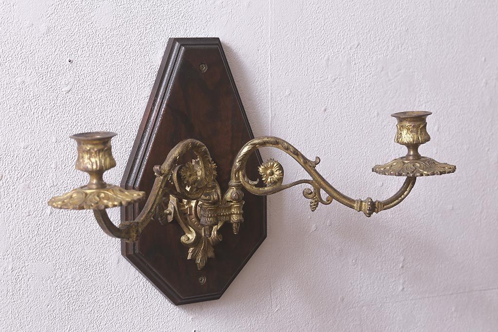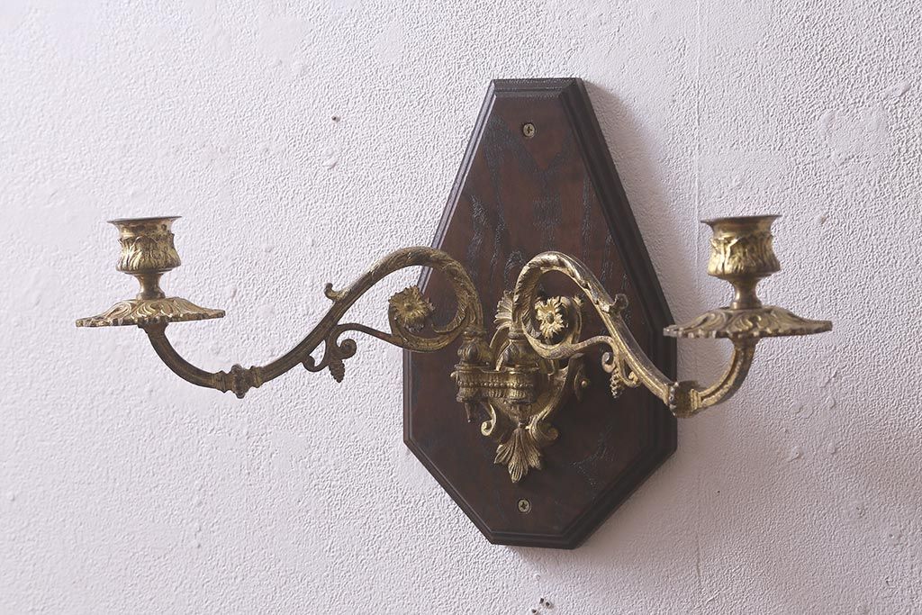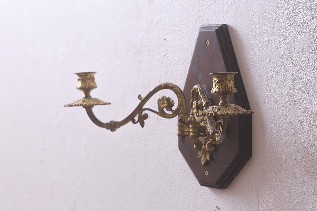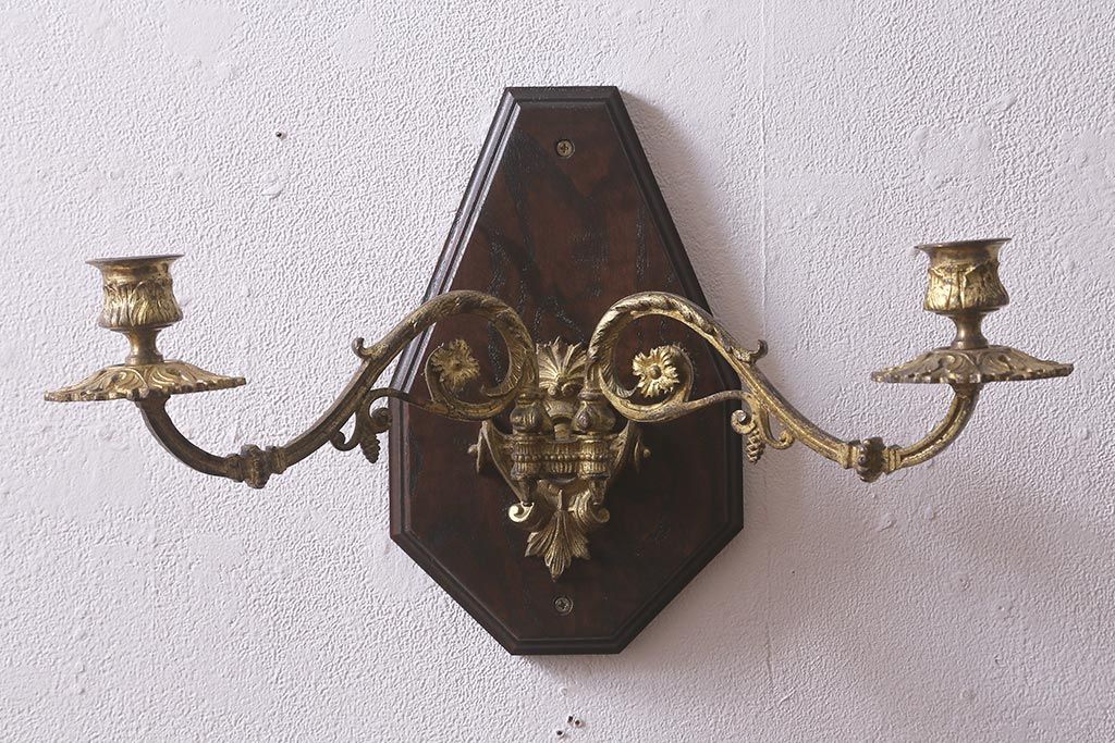 アンティーク雑貨 真鍮 ブラケットライトをリメイクした壁掛けキャンドルホルダー(ろうそく立て、燭台、キャンドルスタンド)(R-042348)