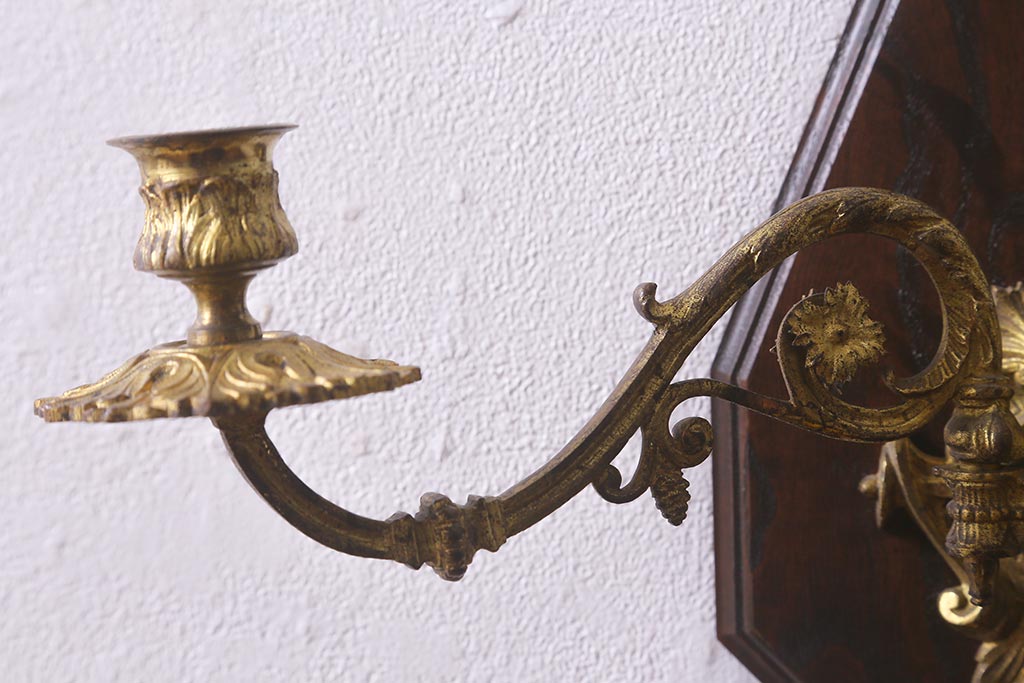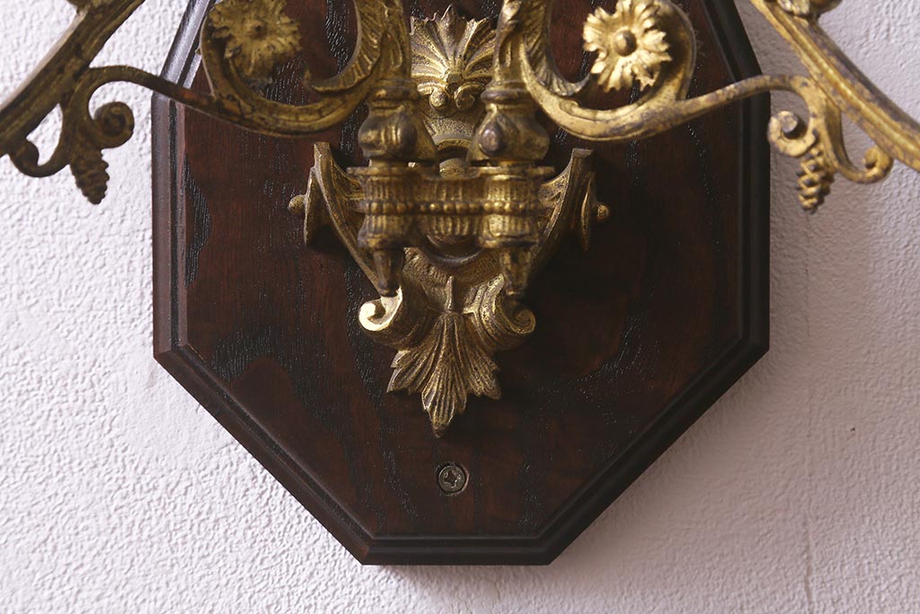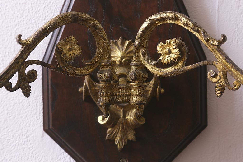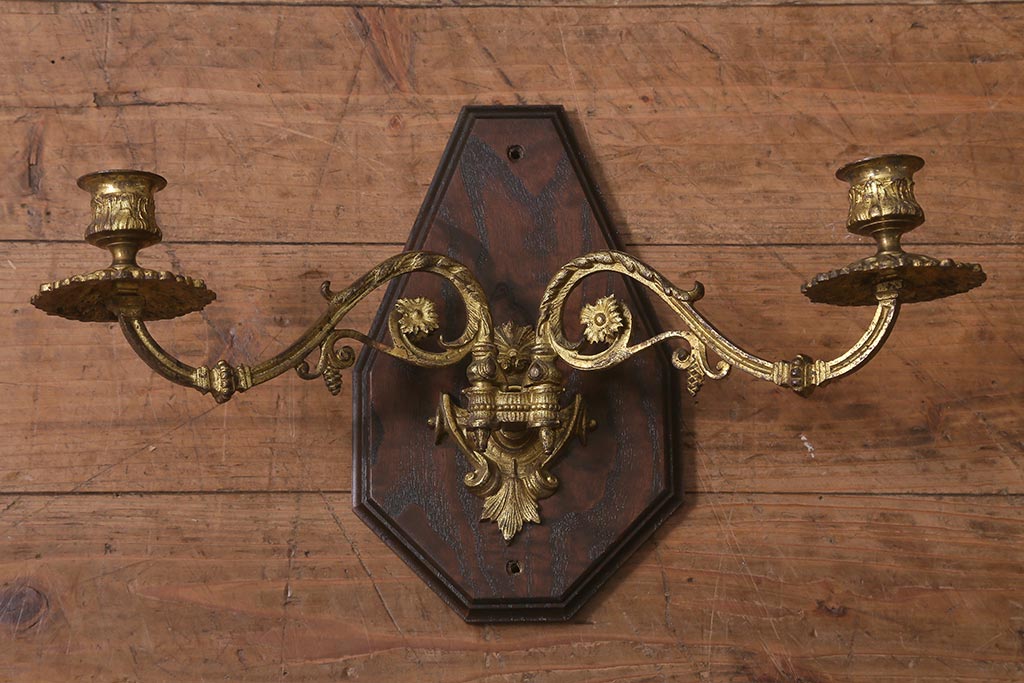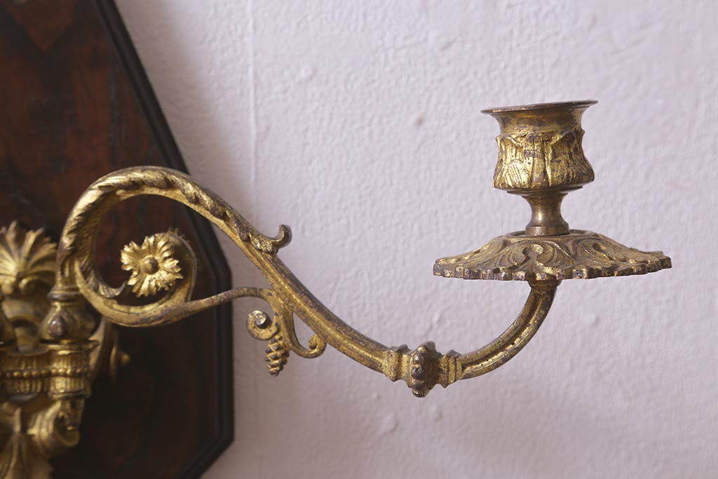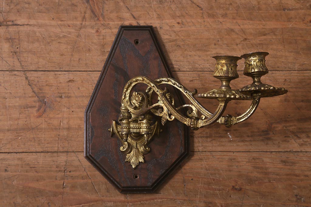 アンティーク雑貨 真鍮 ブラケットライトをリメイクした壁掛けキャンドルホルダー(ろうそく立て、燭台、キャンドルスタンド)(R-042348)