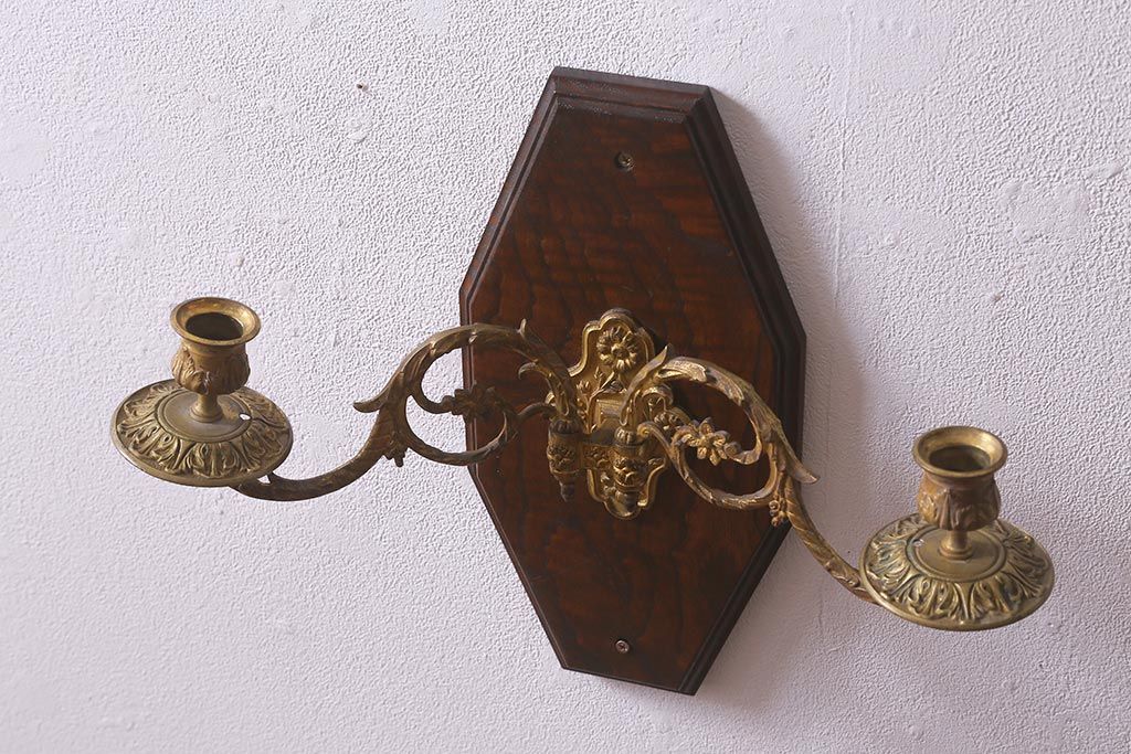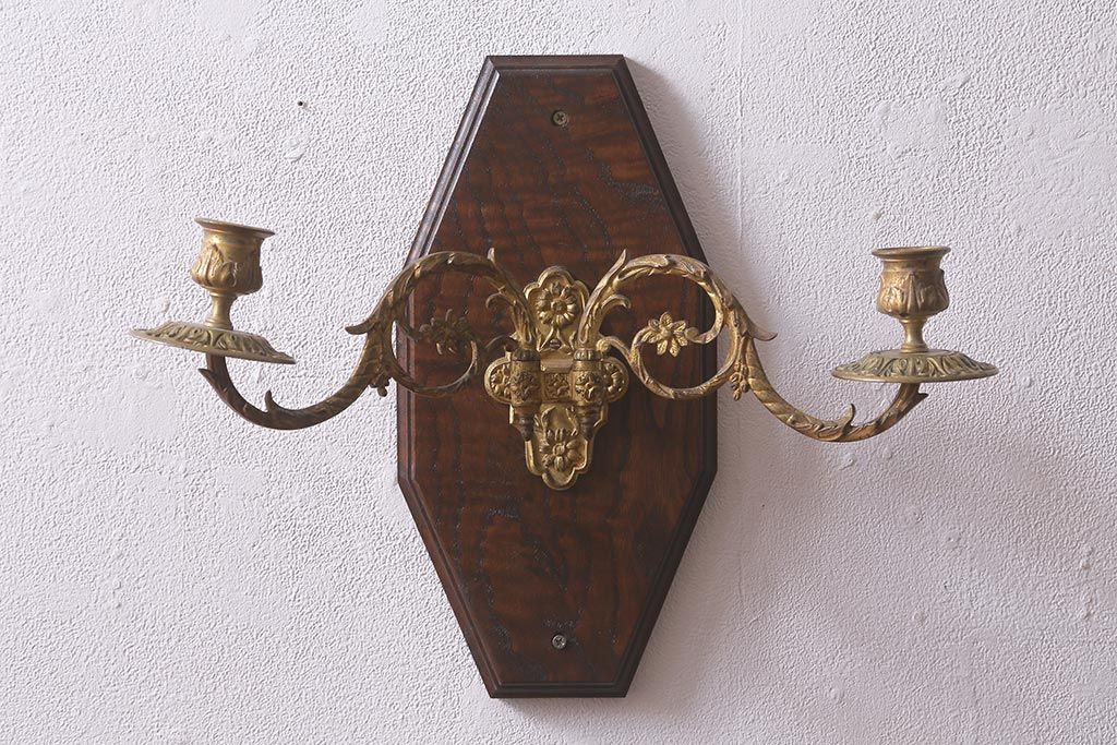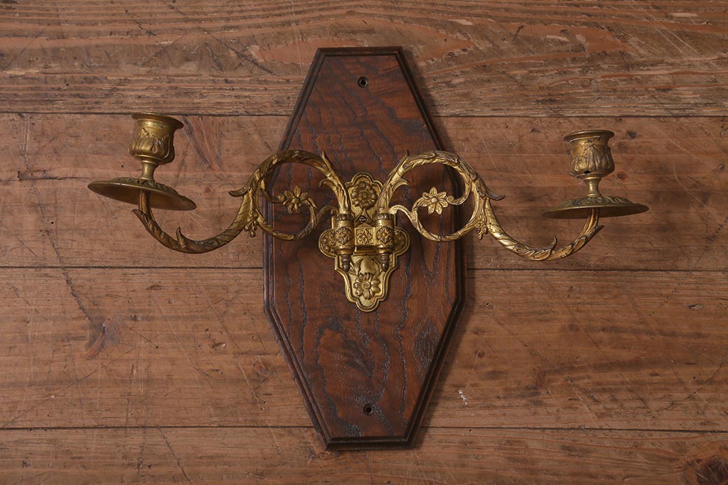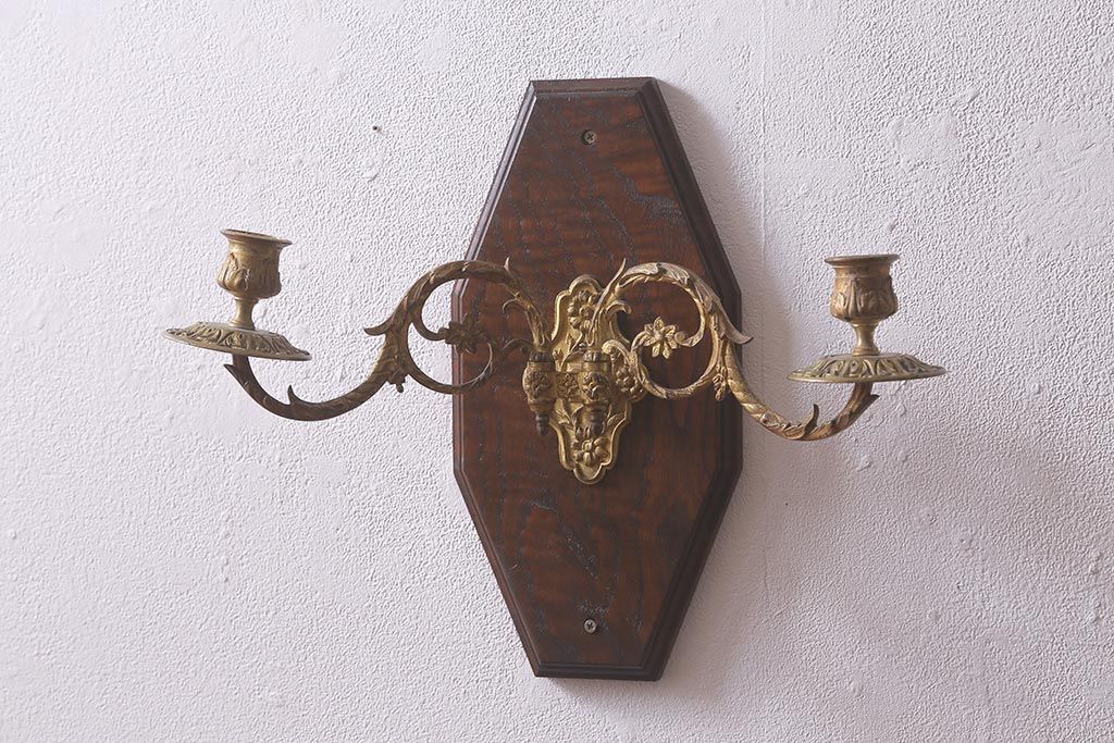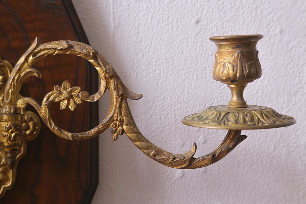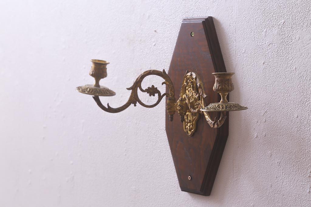 アンティーク雑貨 真鍮 ブラケットライトをリメイクした壁掛けキャンドルホルダー(ろうそく立て、燭台、キャンドルスタンド)(R-042346)