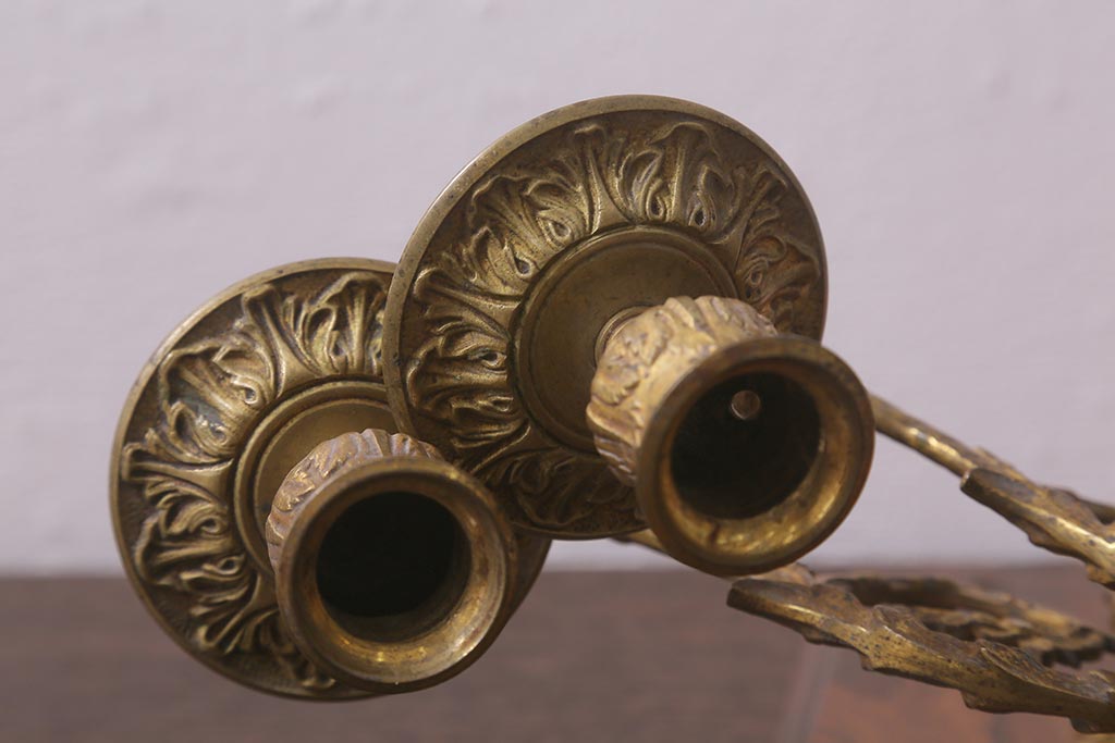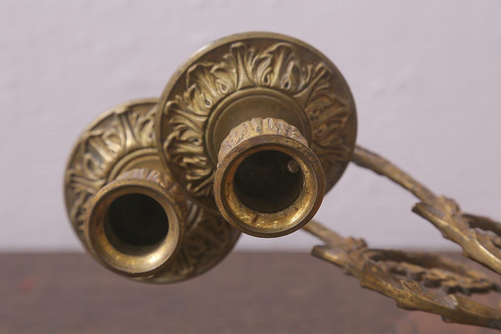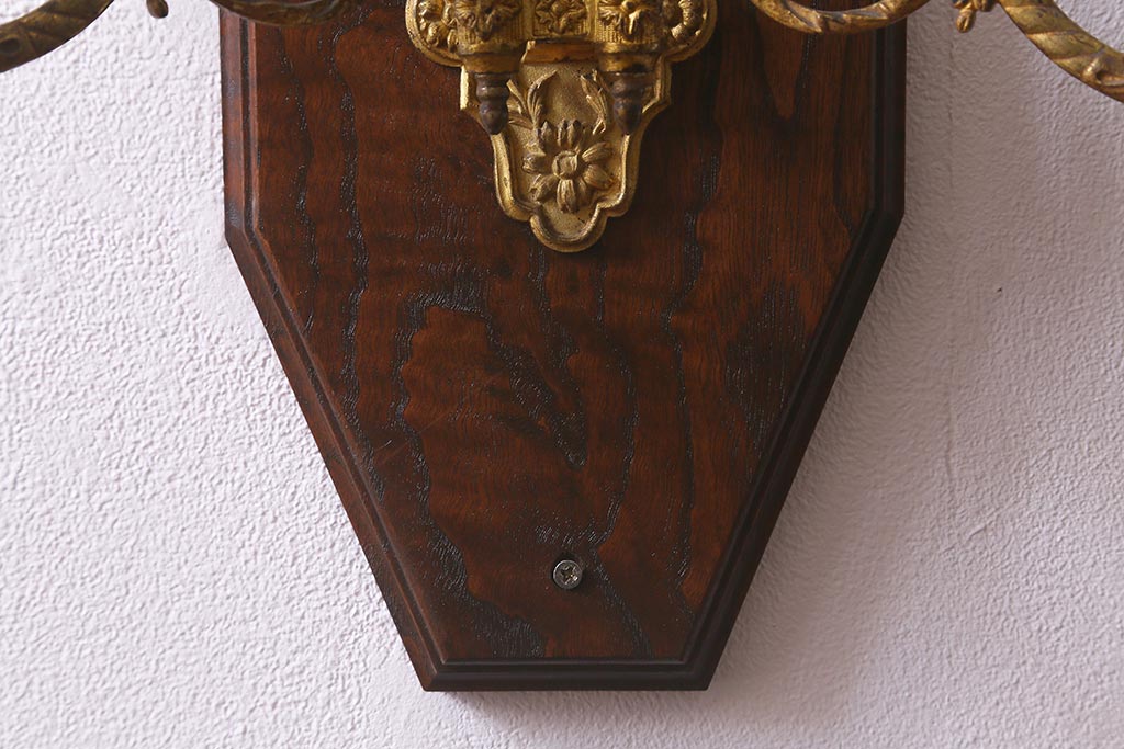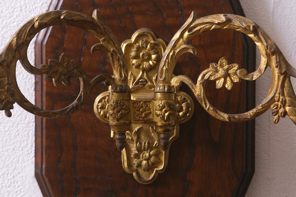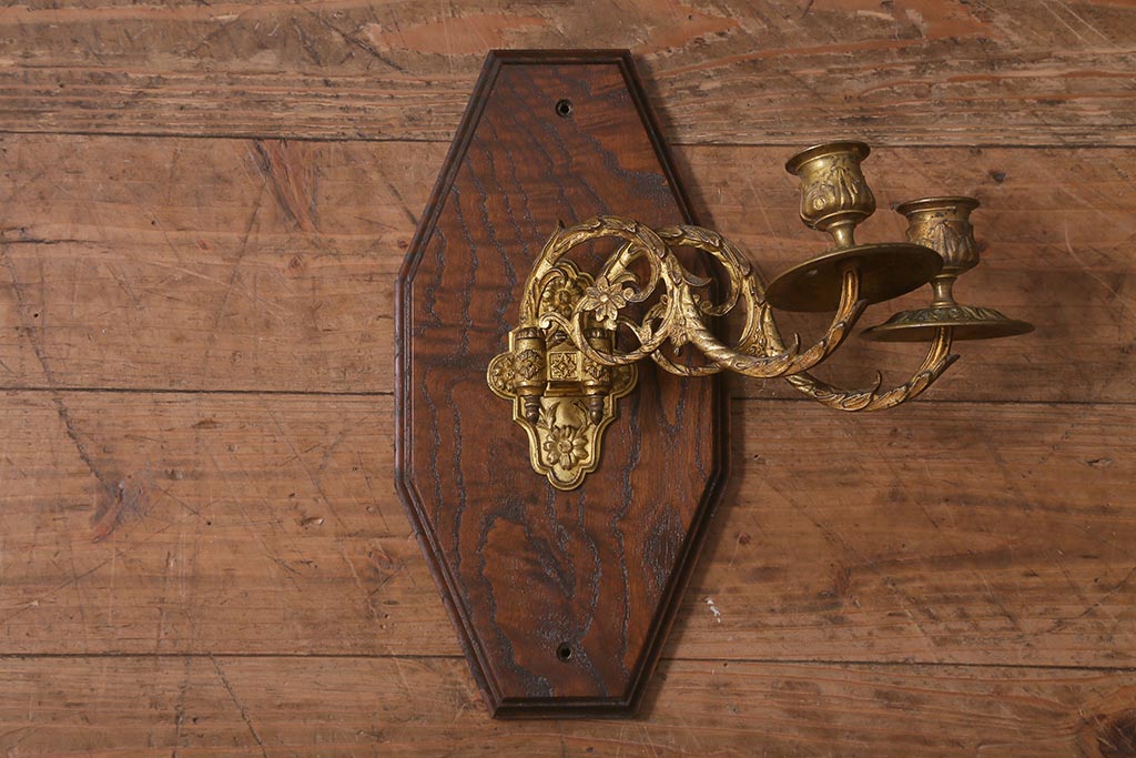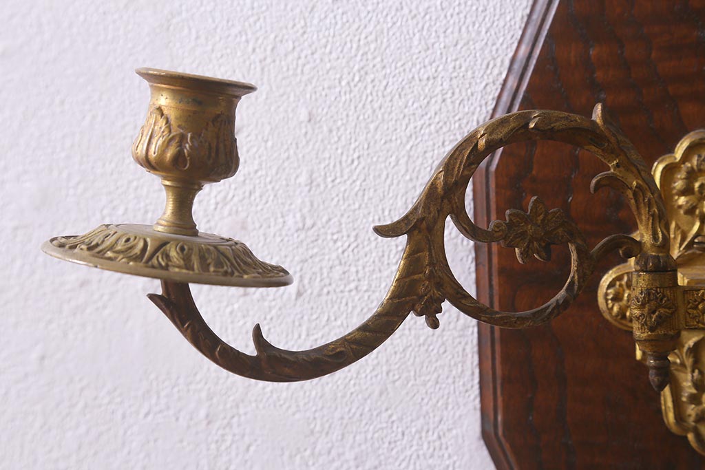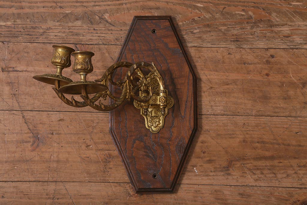 アンティーク雑貨 真鍮 ブラケットライトをリメイクした壁掛けキャンドルホルダー(ろうそく立て、燭台、キャンドルスタンド)(R-042346)