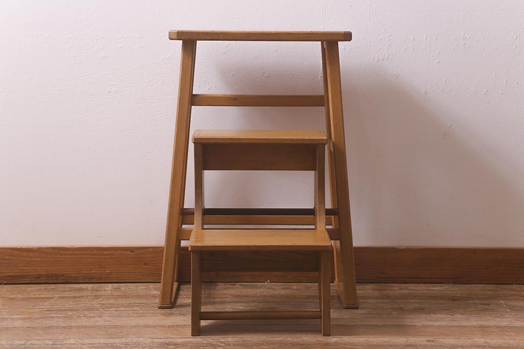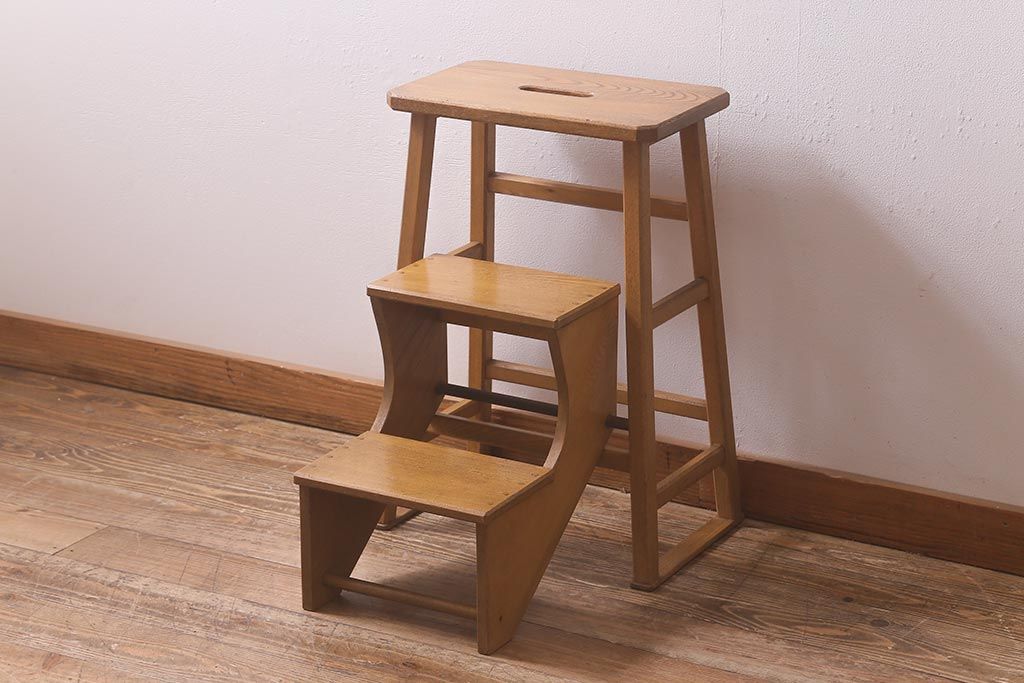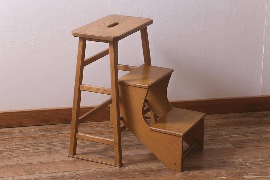 ヴィンテージ家具 昭和中期 タモ材 レア!ナチュラルインテリアにおすすめの踏み台(3段、飾り台、ステップ)(R-042936)です。