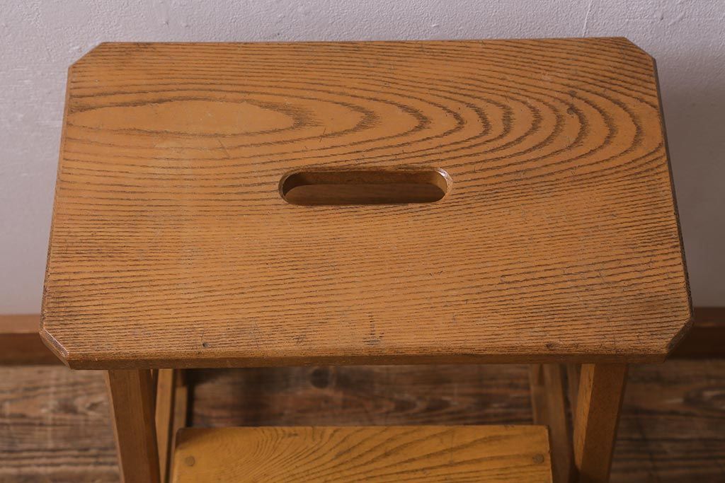 古道具・古民具> 踏み台 > ヴィンテージ家具 昭和中期 タモ材 レア!ナチュラルインテリアにおすすめの踏み台(3段、飾り台、ステップ、ビンテージ)(R-042936)