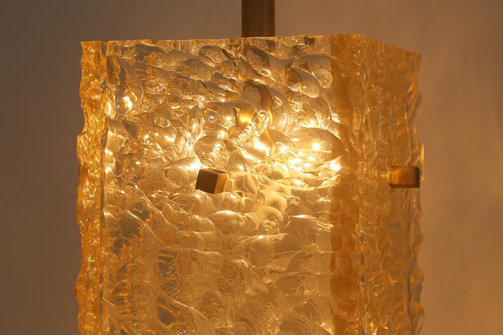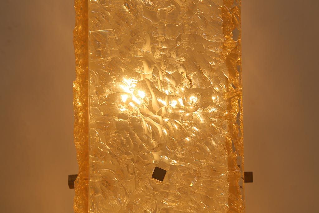 凹凸のあるシェードに明りを灯すと、