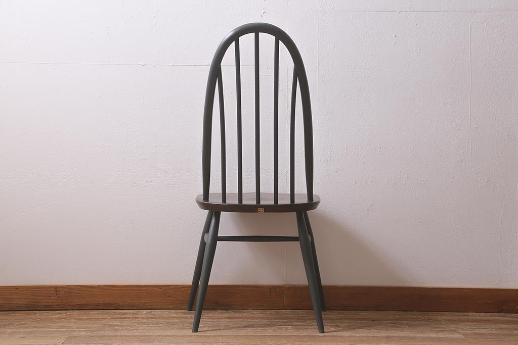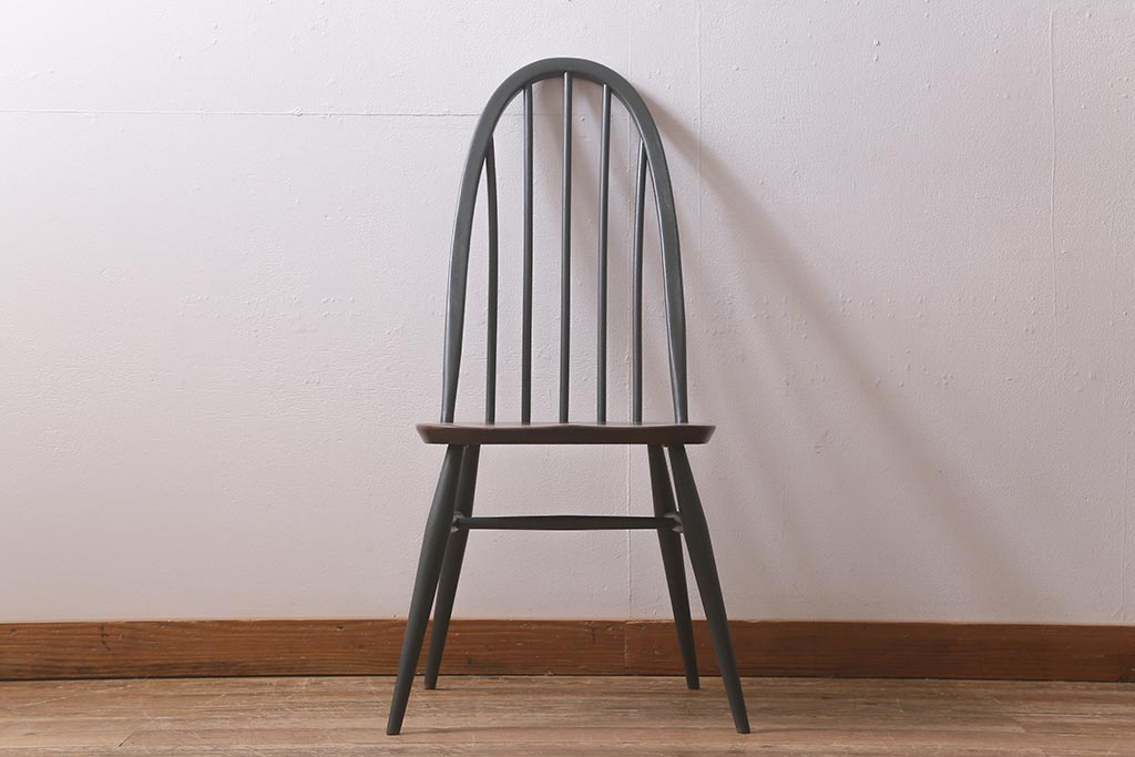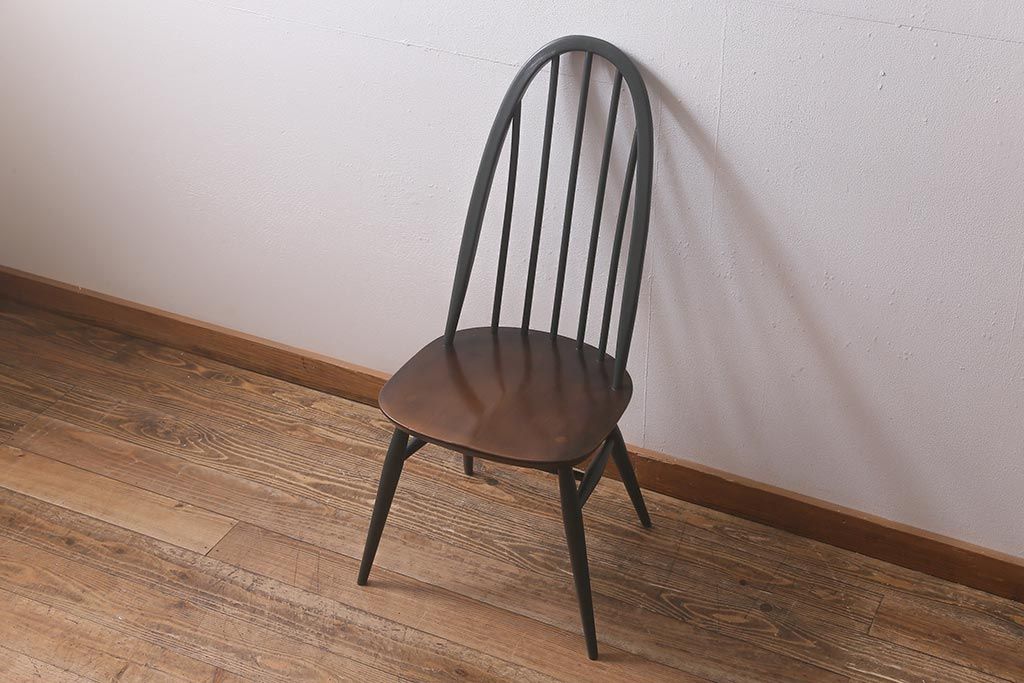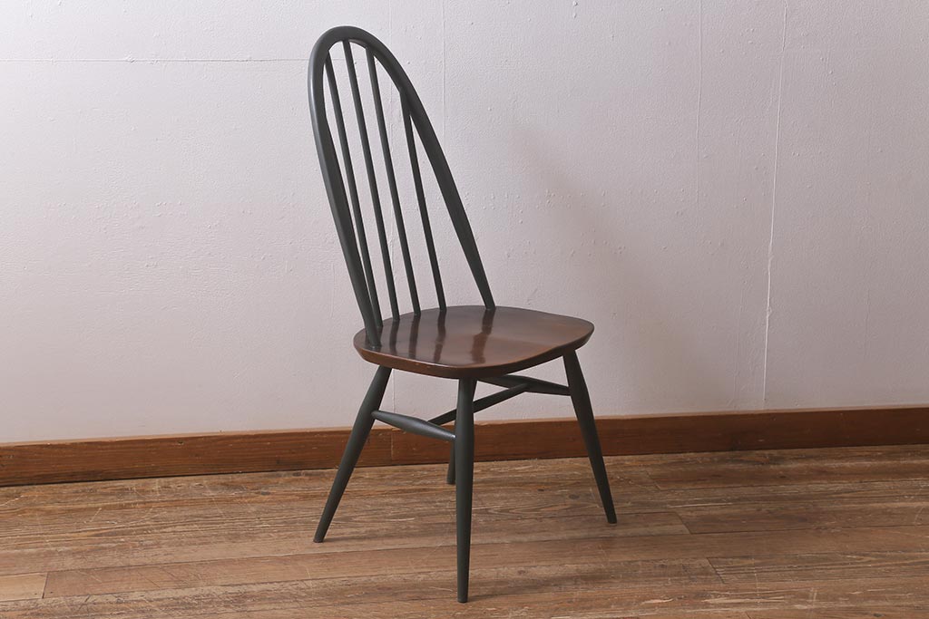 ヴィンテージ家具 ERCOL(アーコール) ペイント ダークグリーンがおしゃれなバイカラーのクエーカーチェア(ダイニングチェア、椅子、ビンテージ)(R-042942)