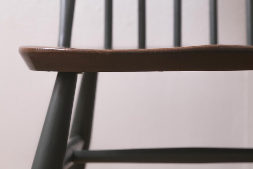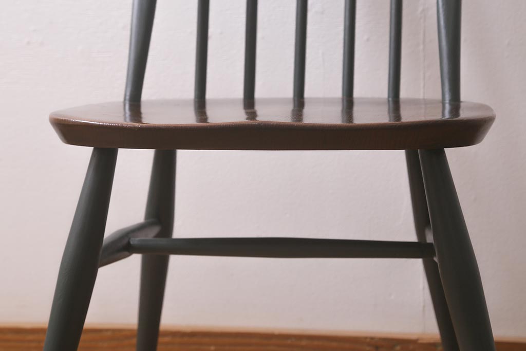 椅子・ベンチ> ダイニングチェア > ヴィンテージ家具 ERCOL(アーコール) ペイント ダークグリーンがおしゃれなバイカラーのクエーカーチェア(ダイニングチェア、椅子、ビンテージ)(R-042942)